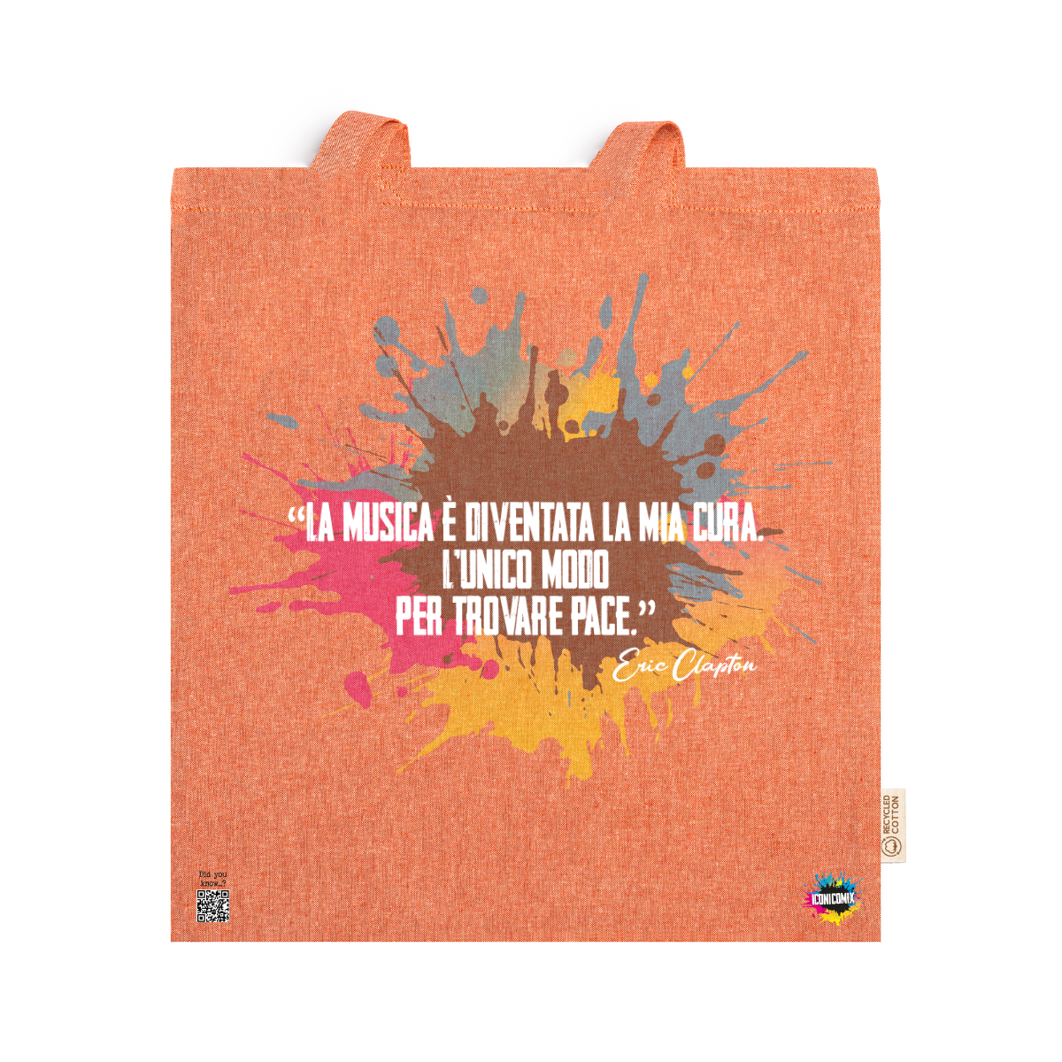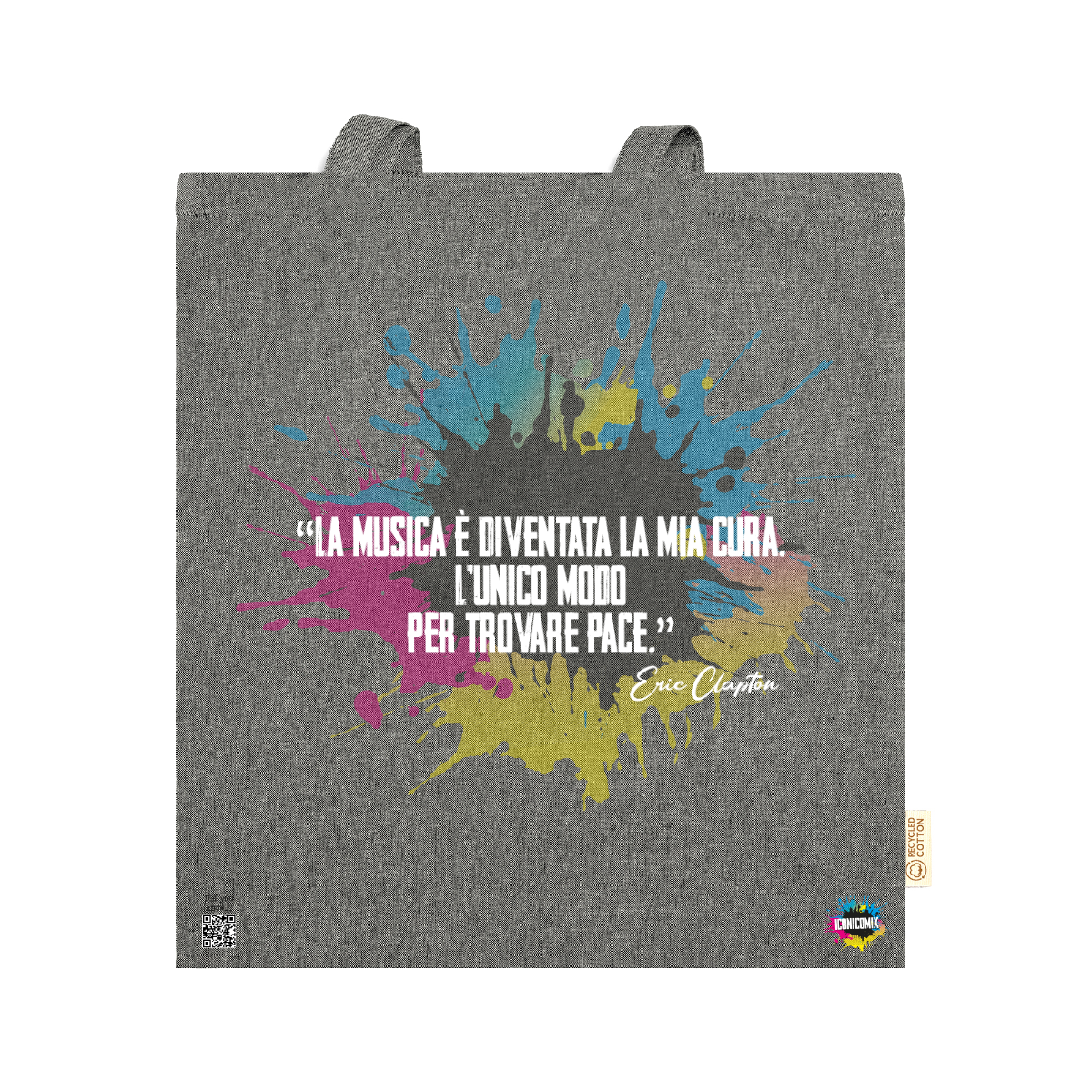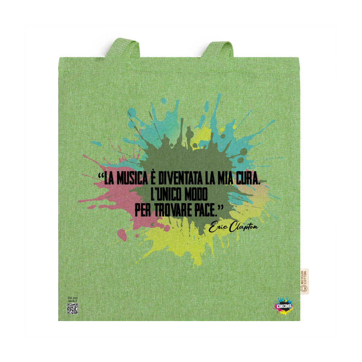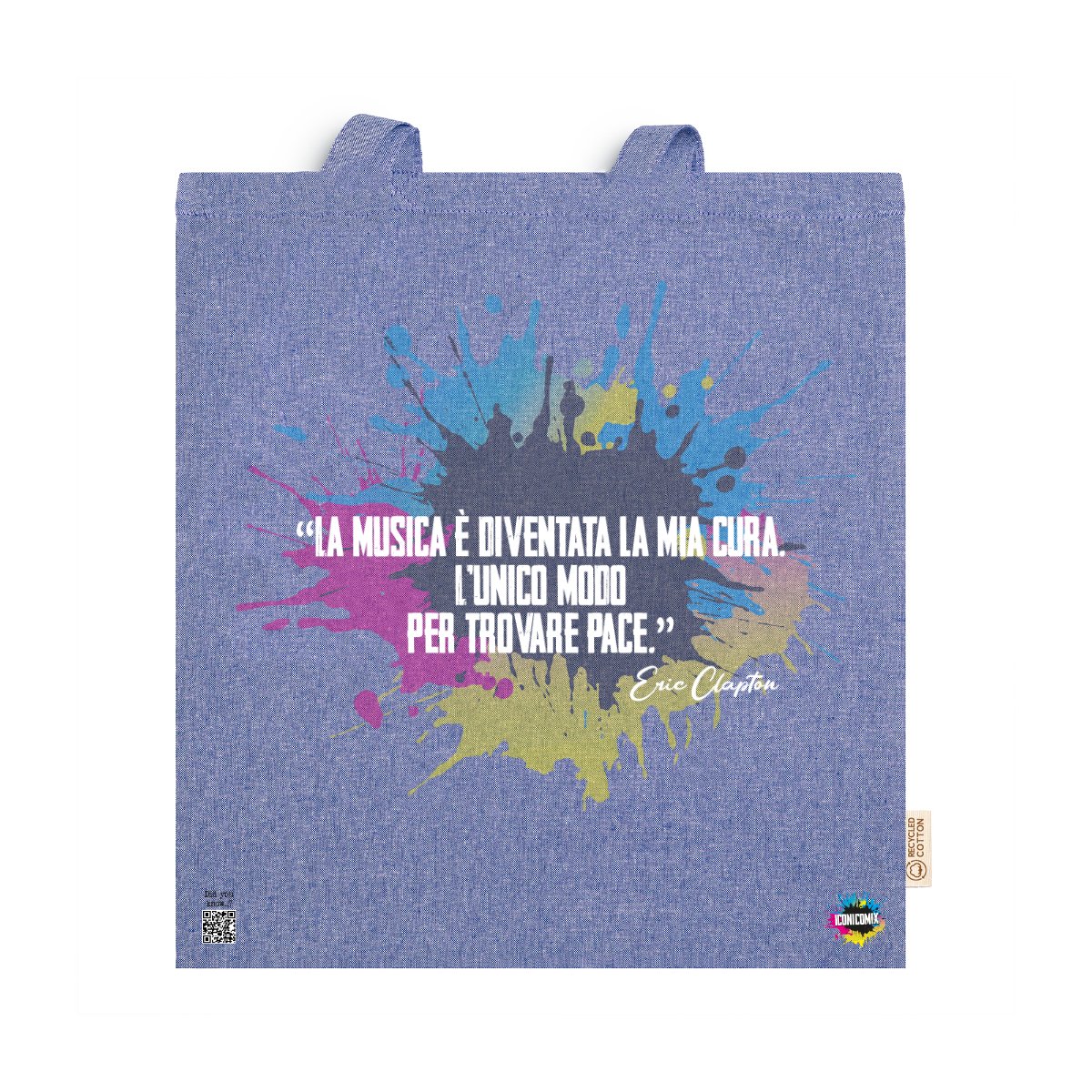 In ogni nostra grafica è presente anche un QR code che reindirizza al sito iconicomix.com, alla pagina ufficiale dell’icona che hai scelto. Una porta digitale che racconta la sua storia, le sue frasi e il suo mondo.