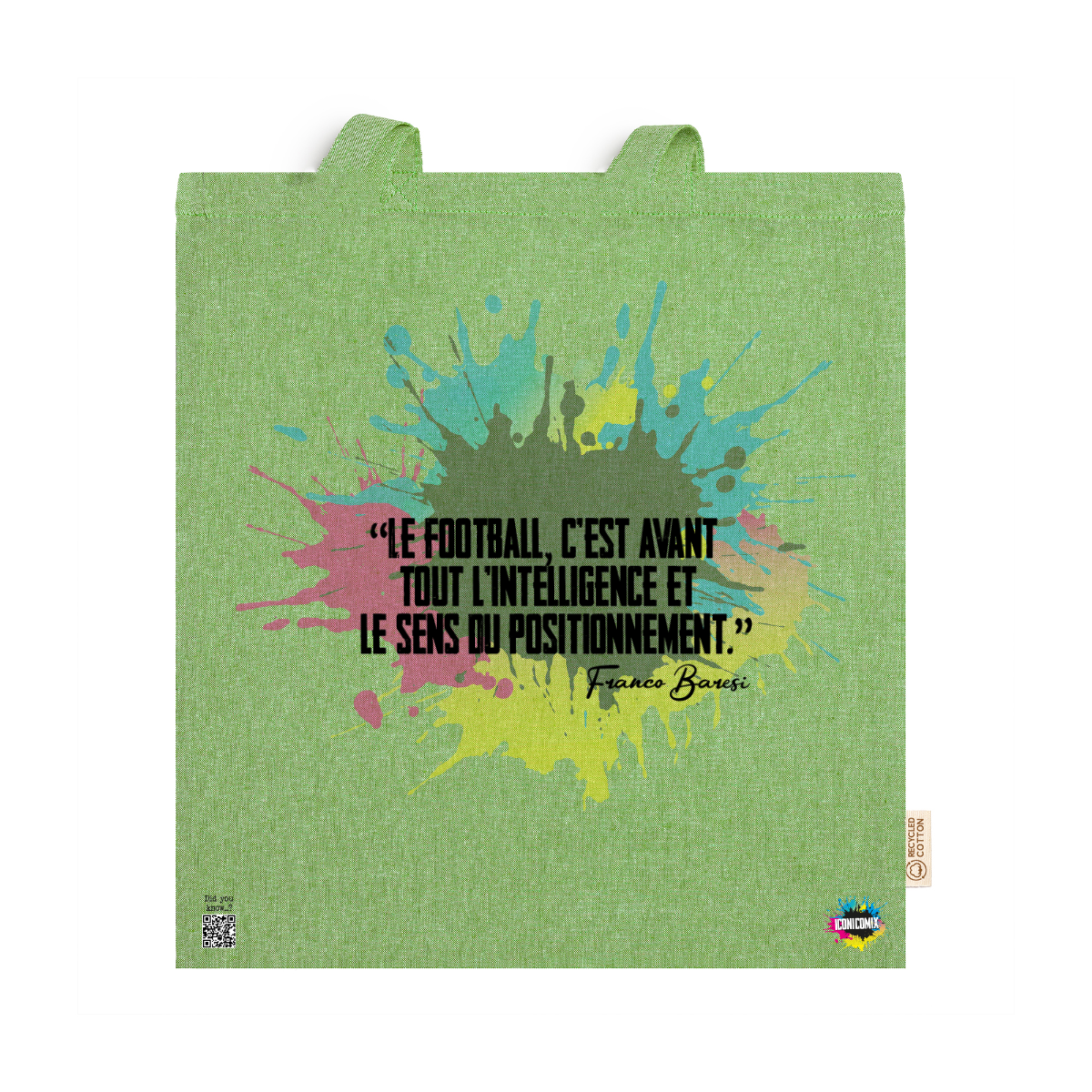In ogni nostra grafica è presente anche un QR code che reindirizza al sito iconicomix.com, alla pagina ufficiale dell’icona che hai scelto. Una porta digitale che racconta la sua storia, le sue frasi e il suo mondo.