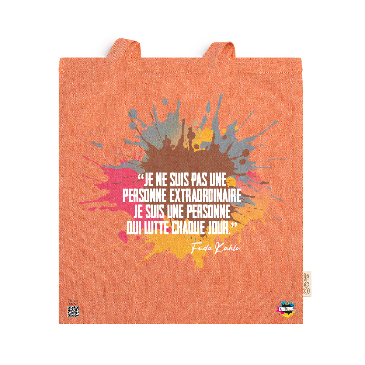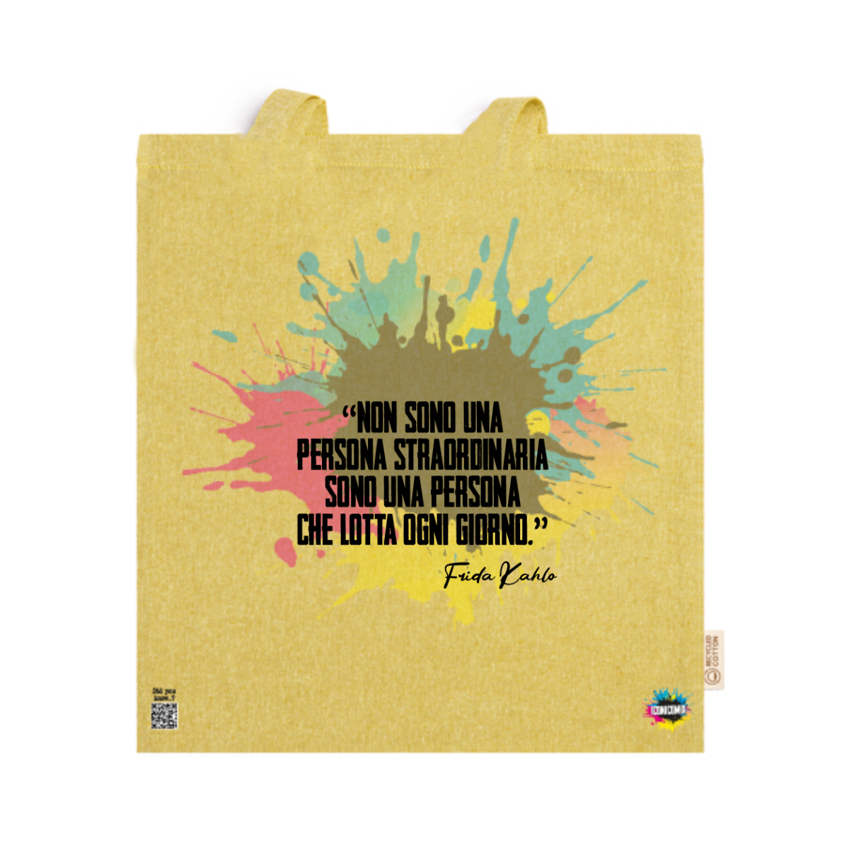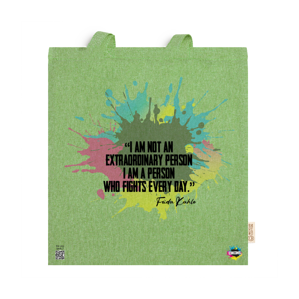 In ogni nostra grafica è presente anche un QR code che reindirizza al sito iconicomix.com, alla pagina ufficiale dell’icona che hai scelto. Una porta digitale che racconta la sua storia, le sue frasi e il suo mondo.