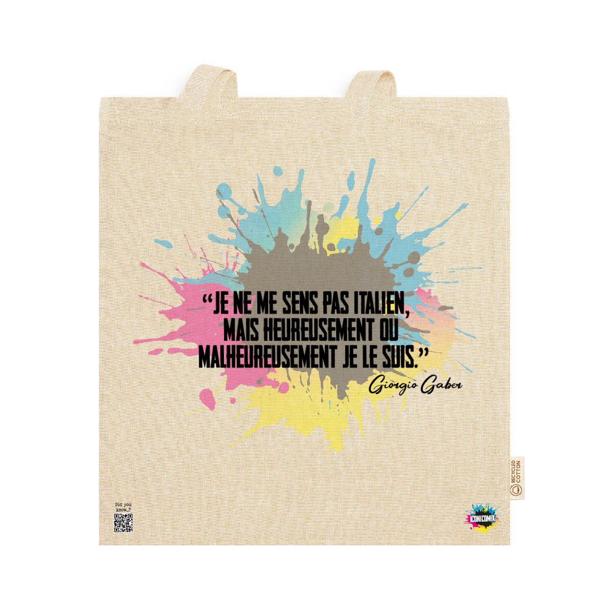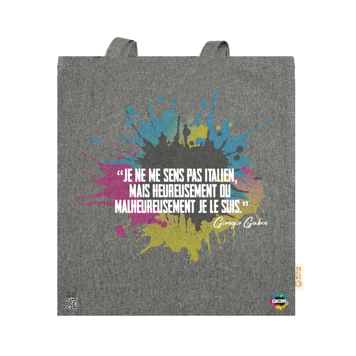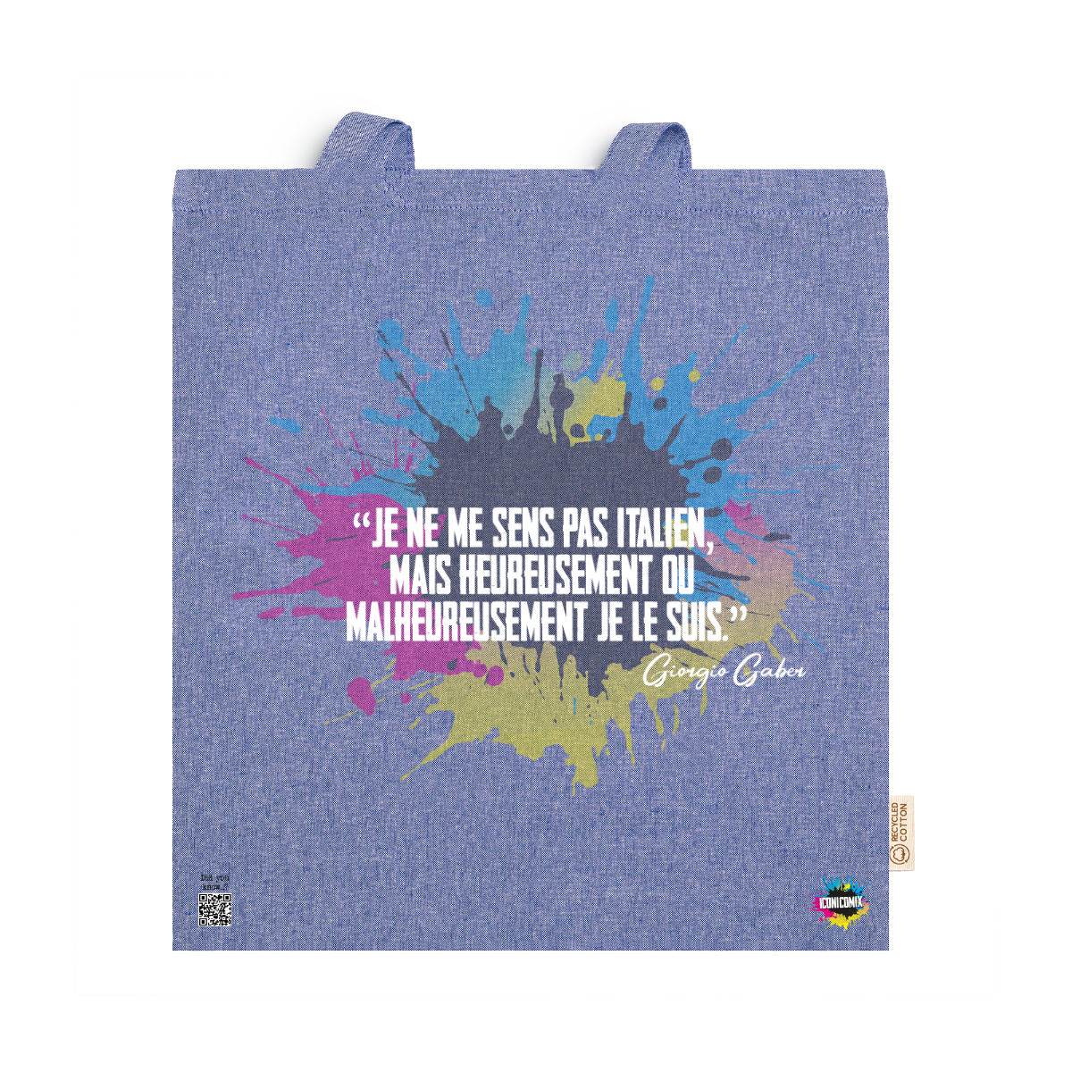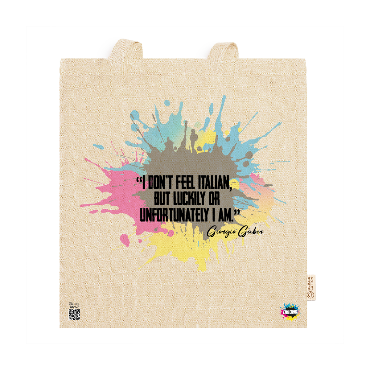 In ogni nostra grafica è presente anche un QR code che reindirizza al sito iconicomix.com, alla pagina ufficiale dell’icona che hai scelto. Una porta digitale che racconta la sua storia, le sue frasi e il suo mondo.