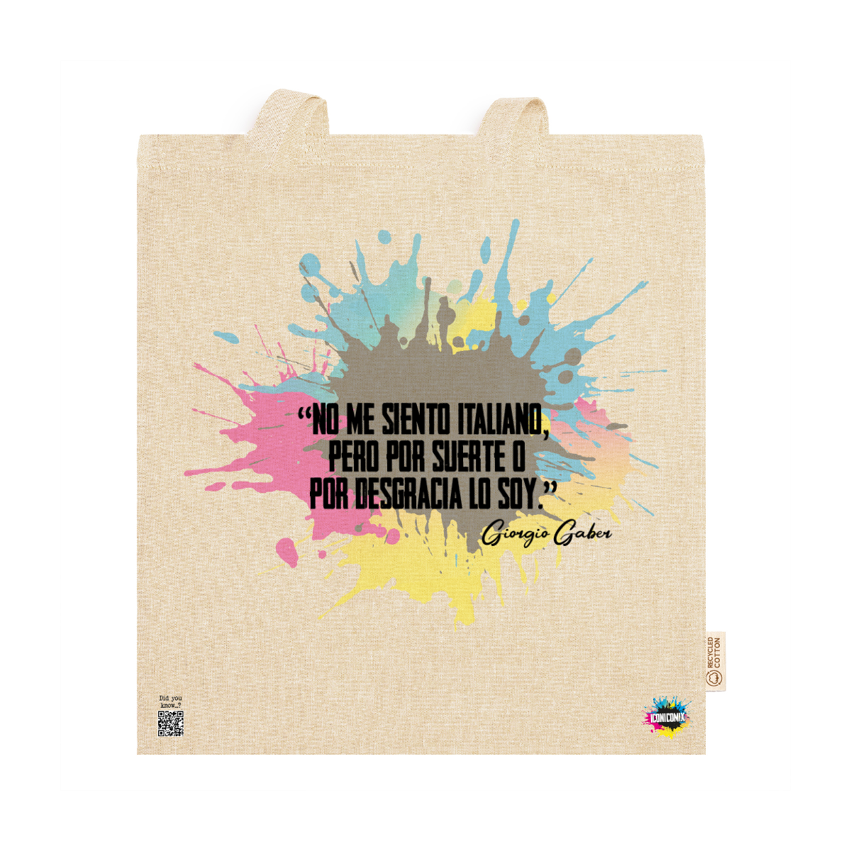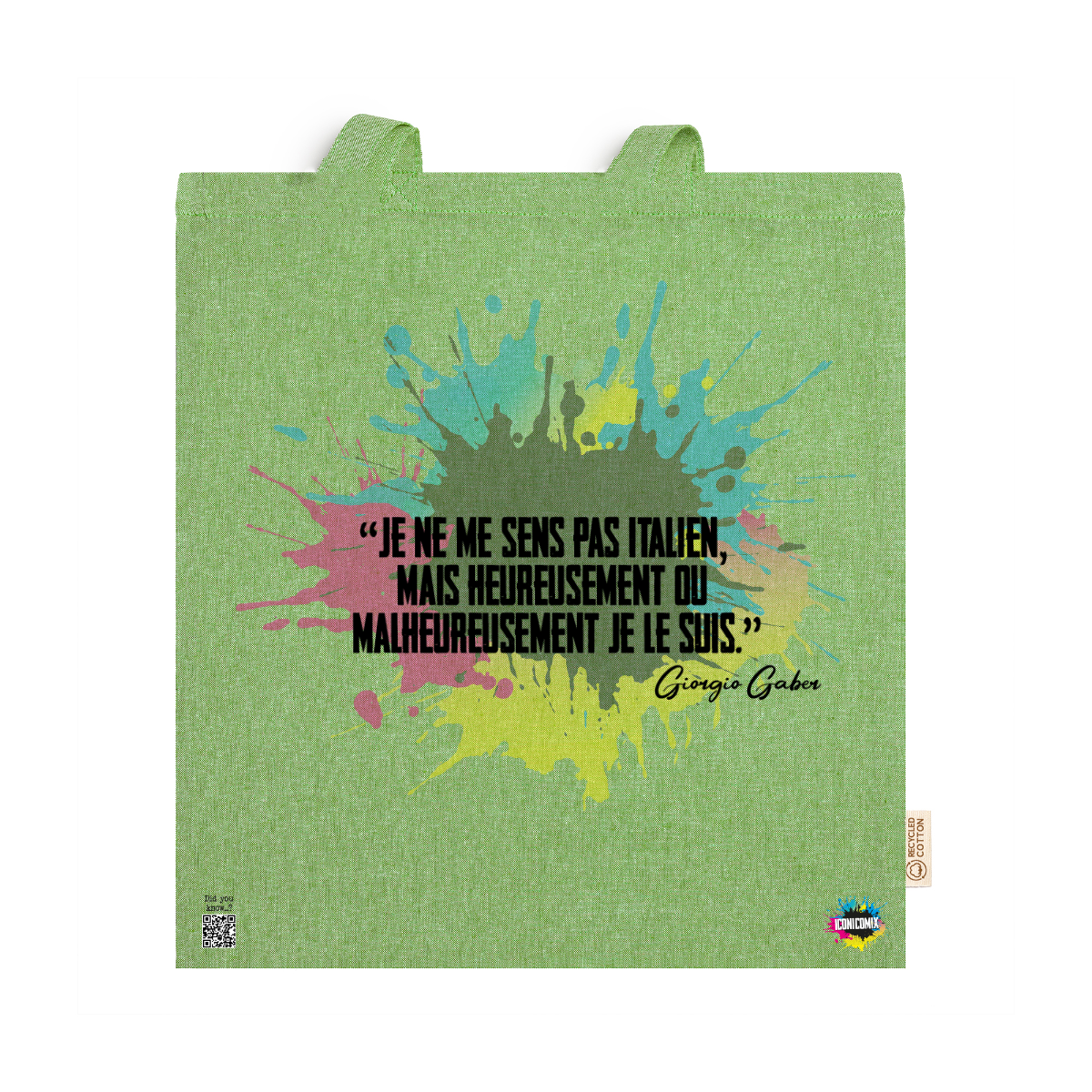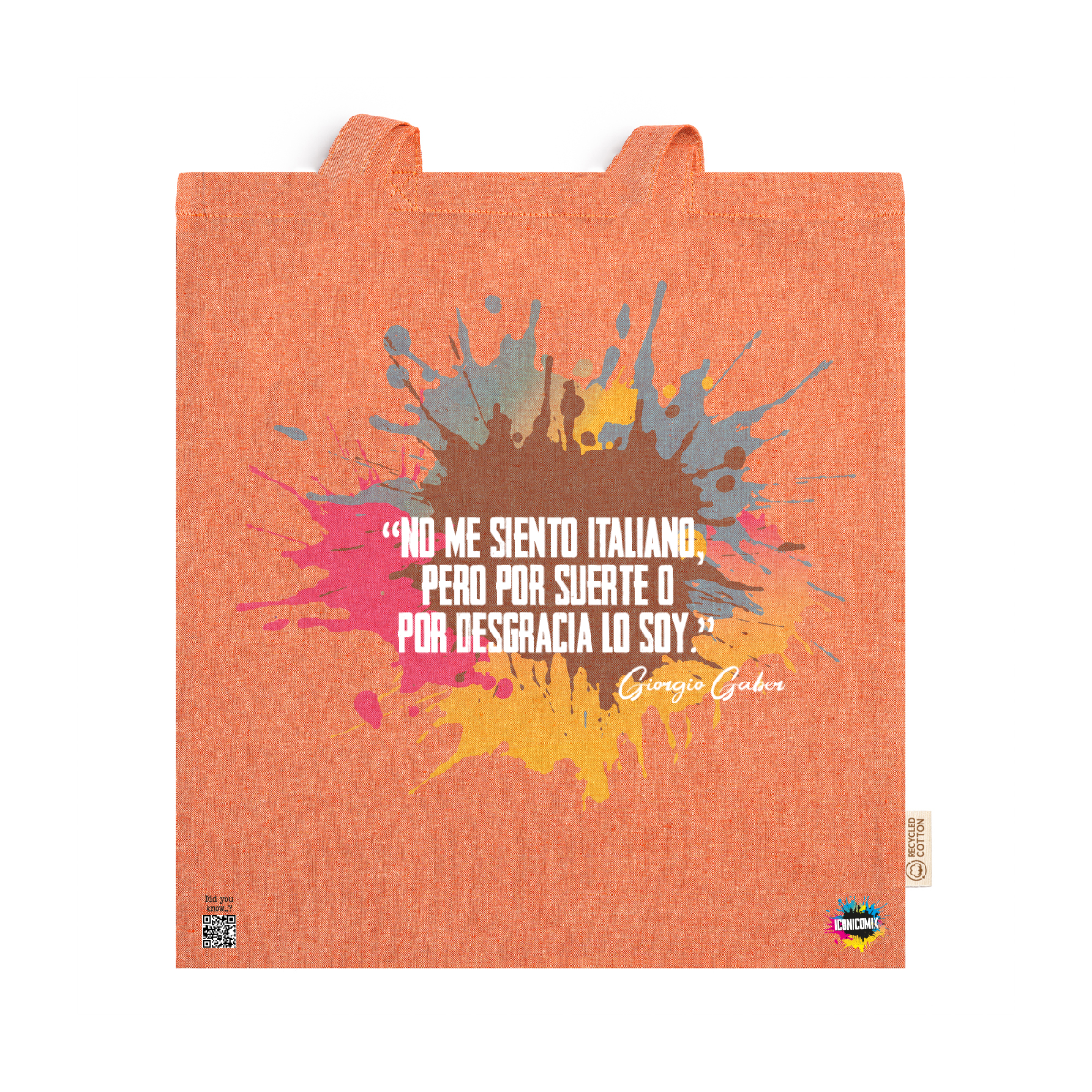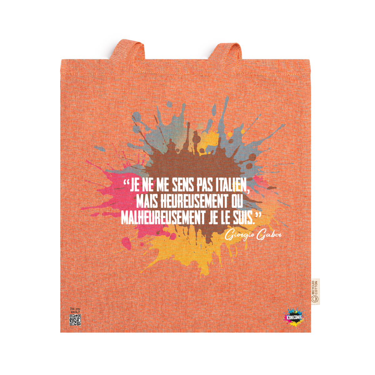 In ogni nostra grafica è presente anche un QR code che reindirizza al sito iconicomix.com, alla pagina ufficiale dell’icona che hai scelto. Una porta digitale che racconta la sua storia, le sue frasi e il suo mondo.