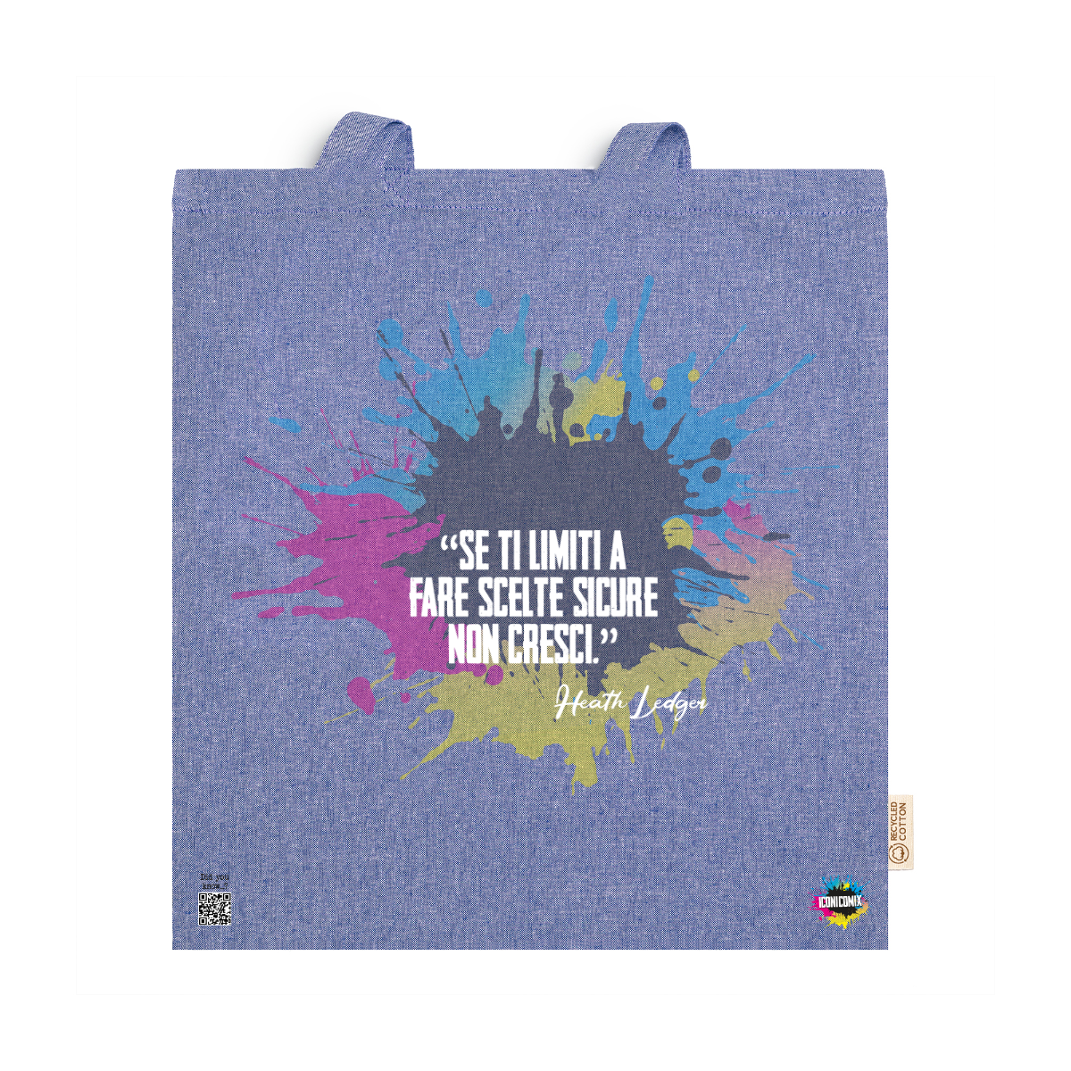 In ogni nostra grafica è presente anche un QR code che reindirizza al sito iconicomix.com, alla pagina ufficiale dell’icona che hai scelto. Una porta digitale che racconta la sua storia, le sue frasi e il suo mondo.