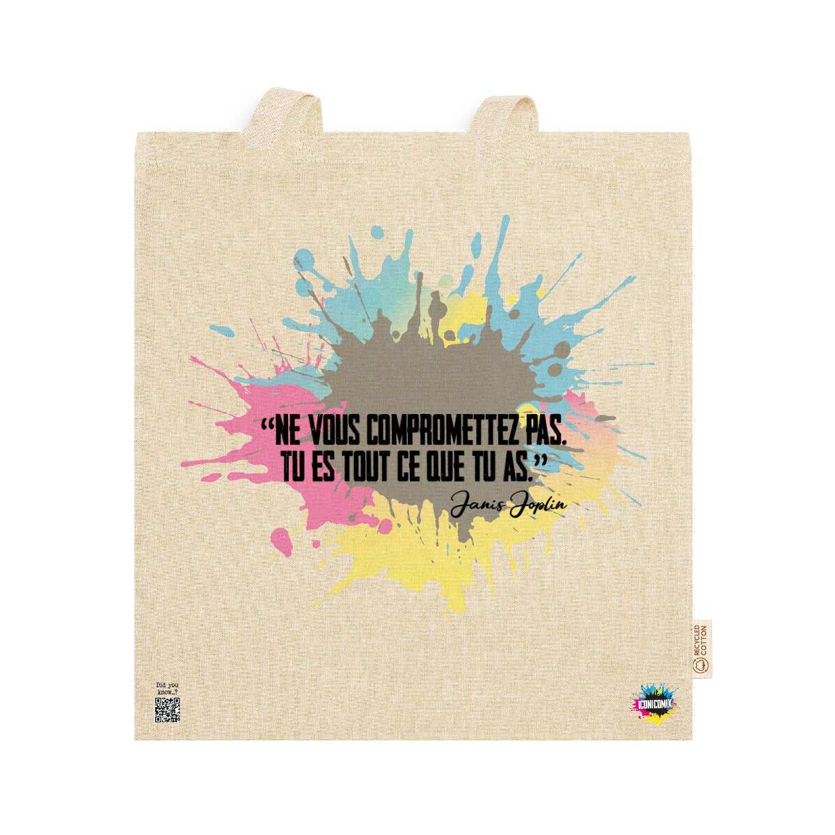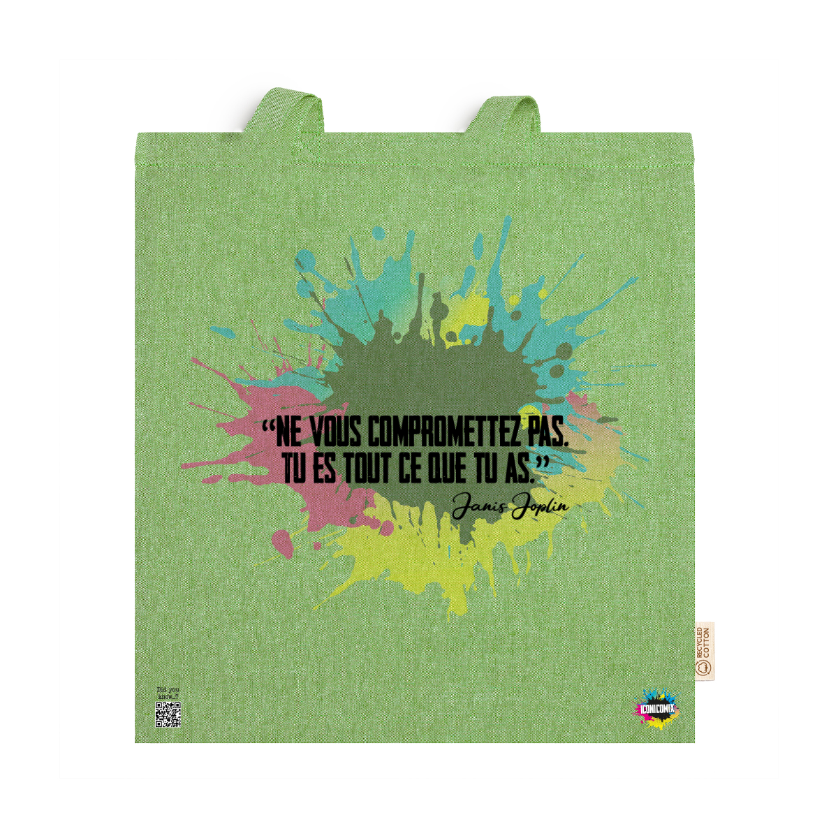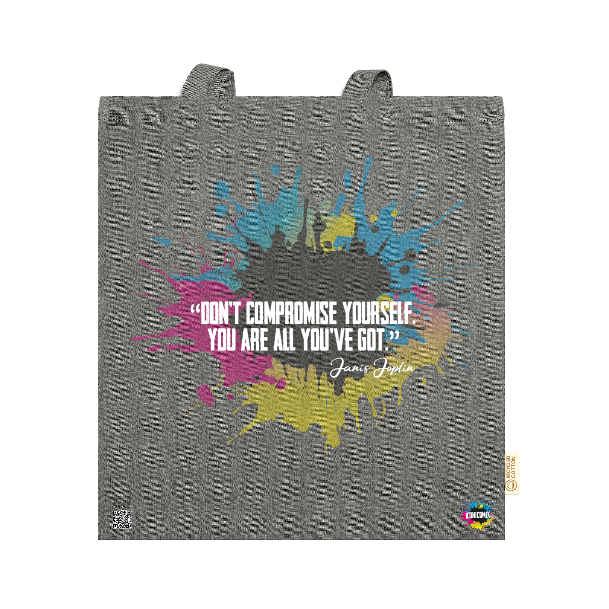 In ogni nostra grafica è presente anche un QR code che reindirizza al sito iconicomix.com, alla pagina ufficiale dell’icona che hai scelto. Una porta digitale che racconta la sua storia, le sue frasi e il suo mondo.