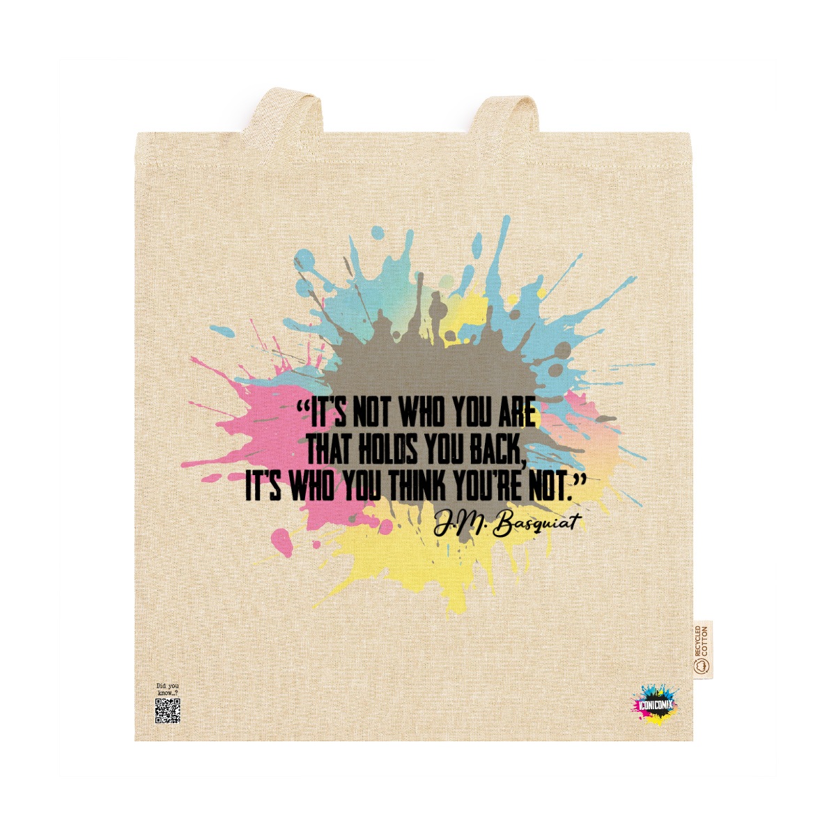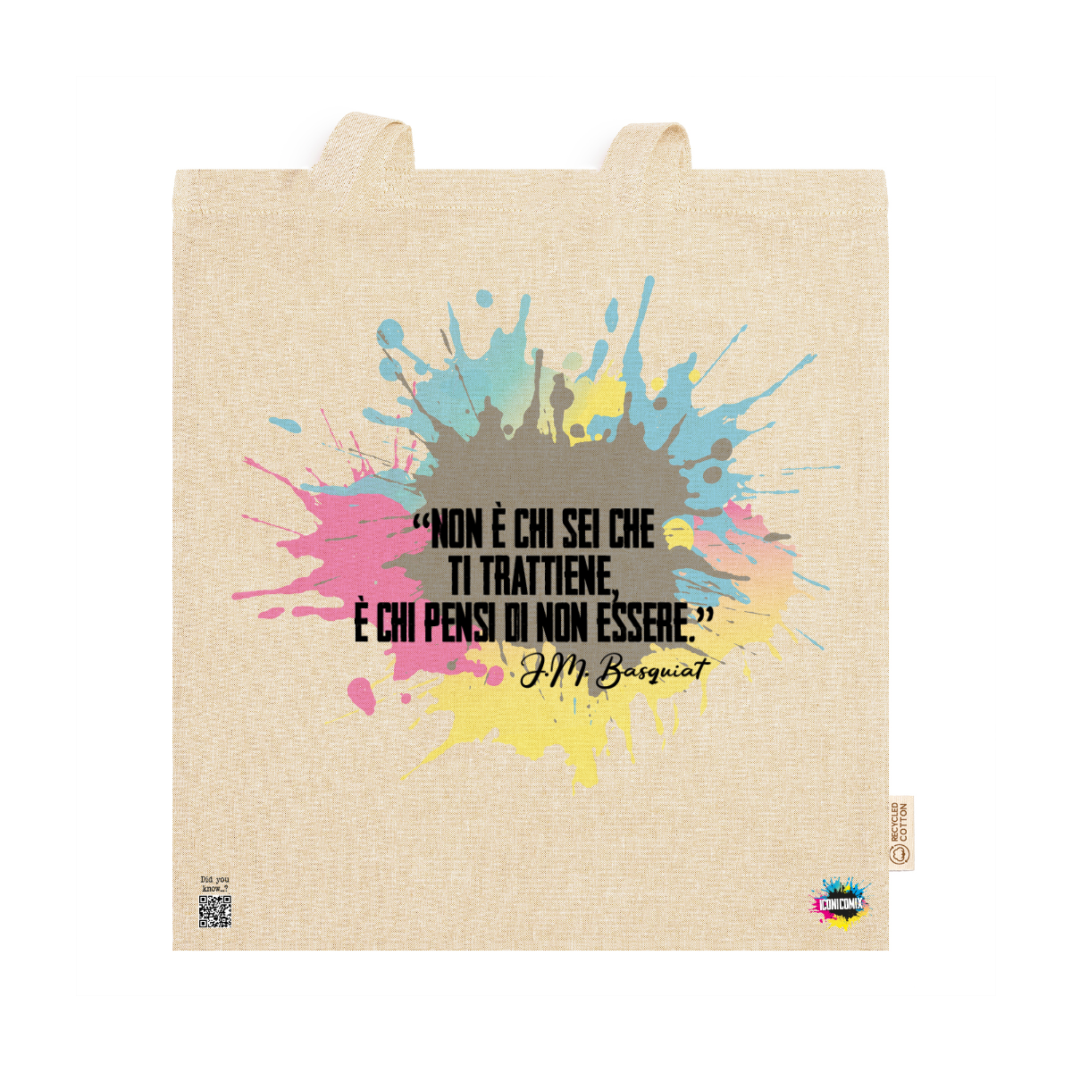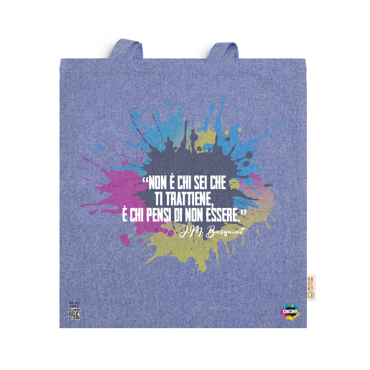 In ogni nostra grafica è presente anche un QR code che reindirizza al sito iconicomix.com, alla pagina ufficiale dell’icona che hai scelto. Una porta digitale che racconta la sua storia, le sue frasi e il suo mondo.
