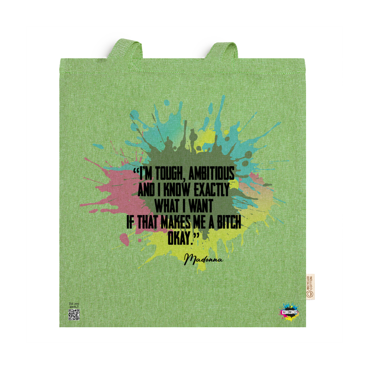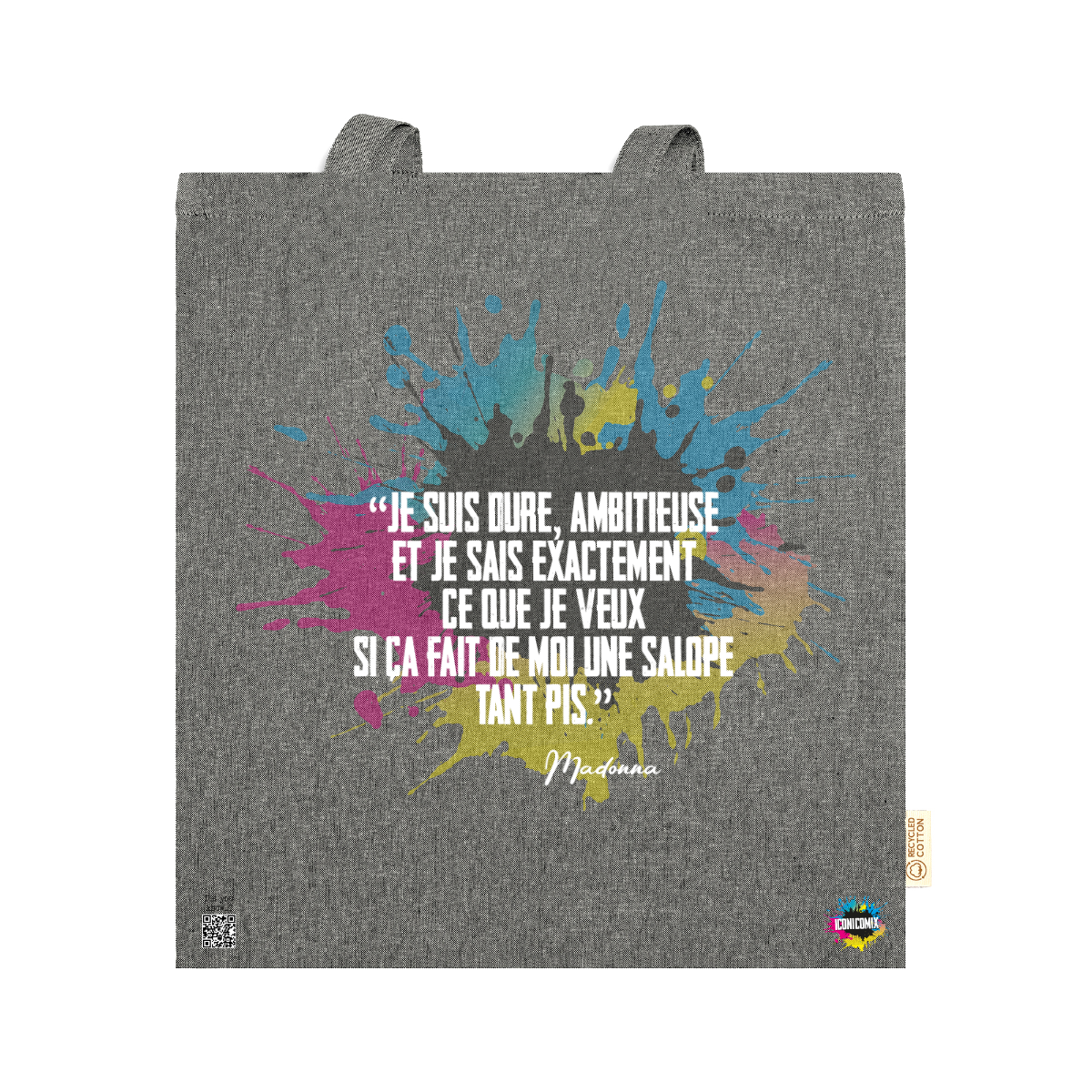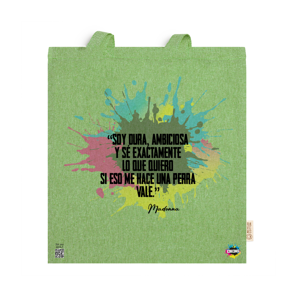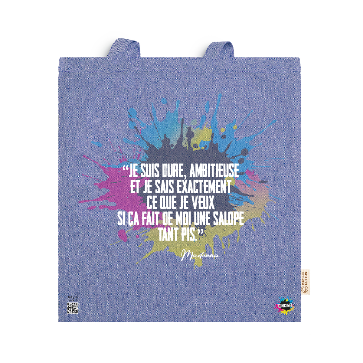 In ogni nostra grafica è presente anche un QR code che reindirizza al sito iconicomix.com, alla pagina ufficiale dell’icona che hai scelto. Una porta digitale che racconta la sua storia, le sue frasi e il suo mondo.