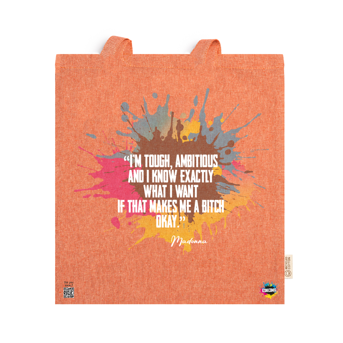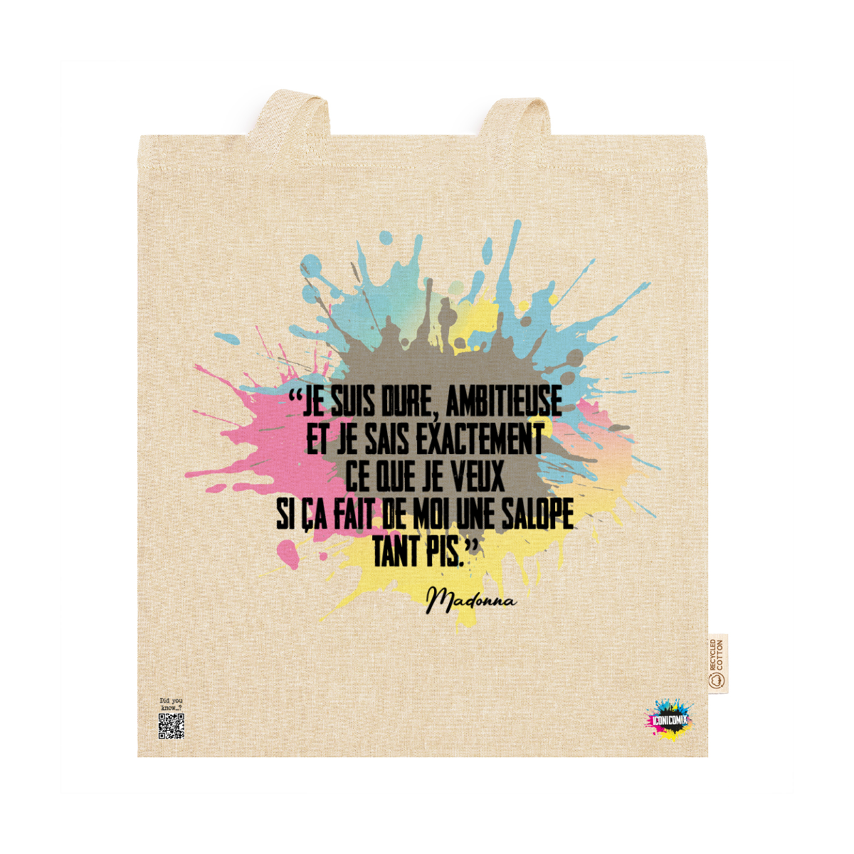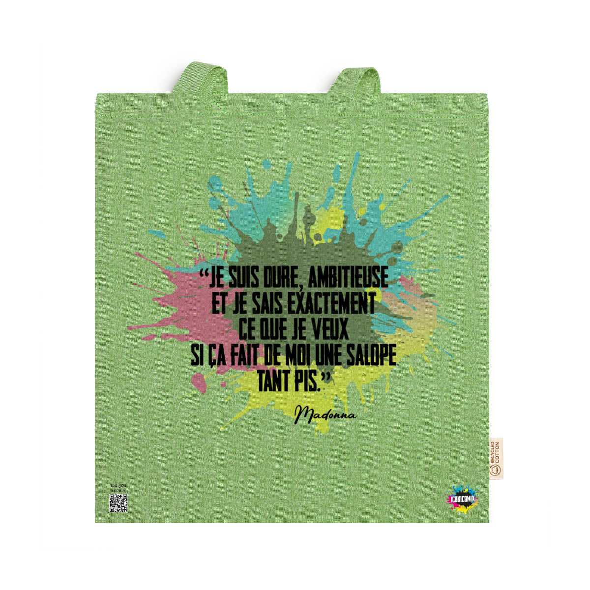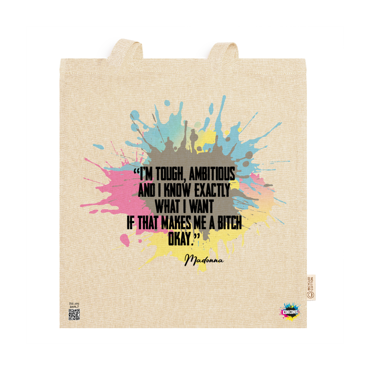 In ogni nostra grafica è presente anche un QR code che reindirizza al sito iconicomix.com, alla pagina ufficiale dell’icona che hai scelto. Una porta digitale che racconta la sua storia, le sue frasi e il suo mondo.