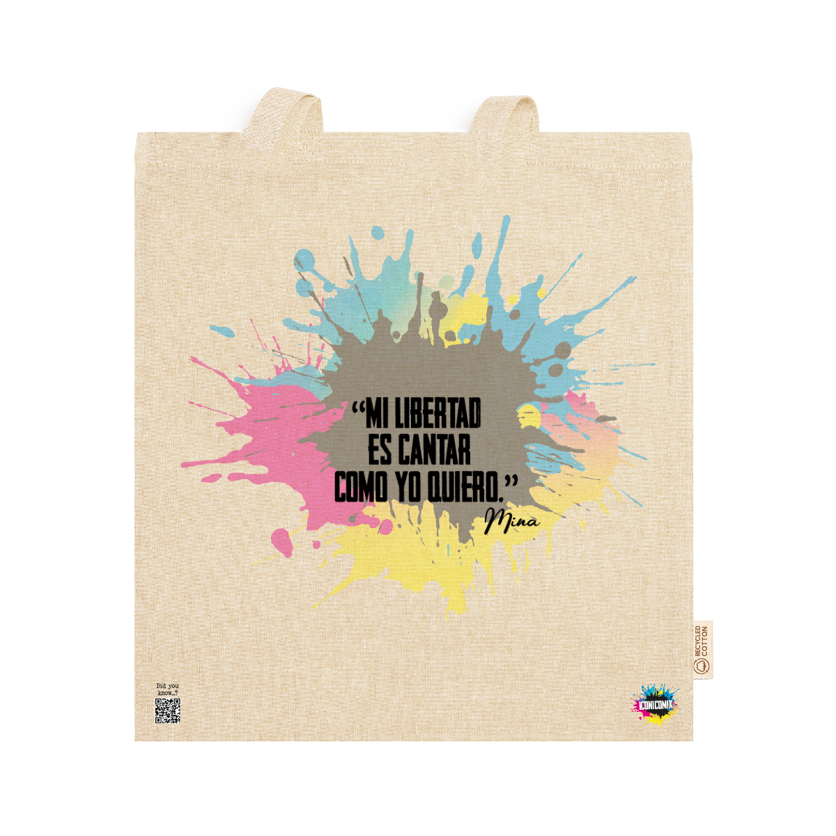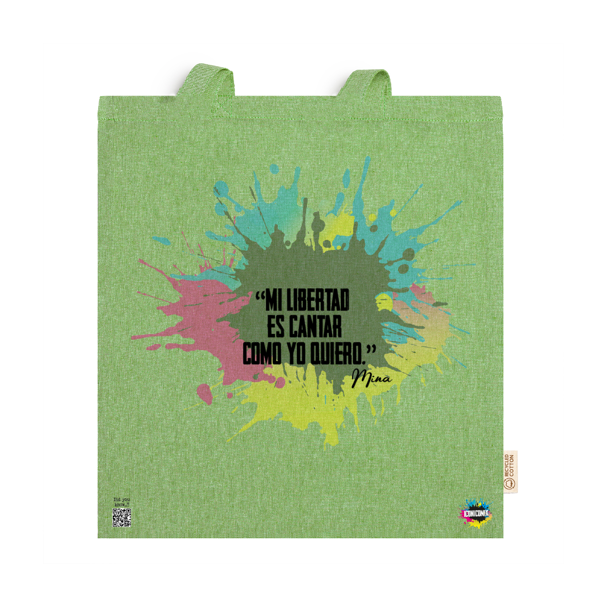 In ogni nostra grafica è presente anche un QR code che reindirizza al sito iconicomix.com, alla pagina ufficiale dell’icona che hai scelto. Una porta digitale che racconta la sua storia, le sue frasi e il suo mondo.