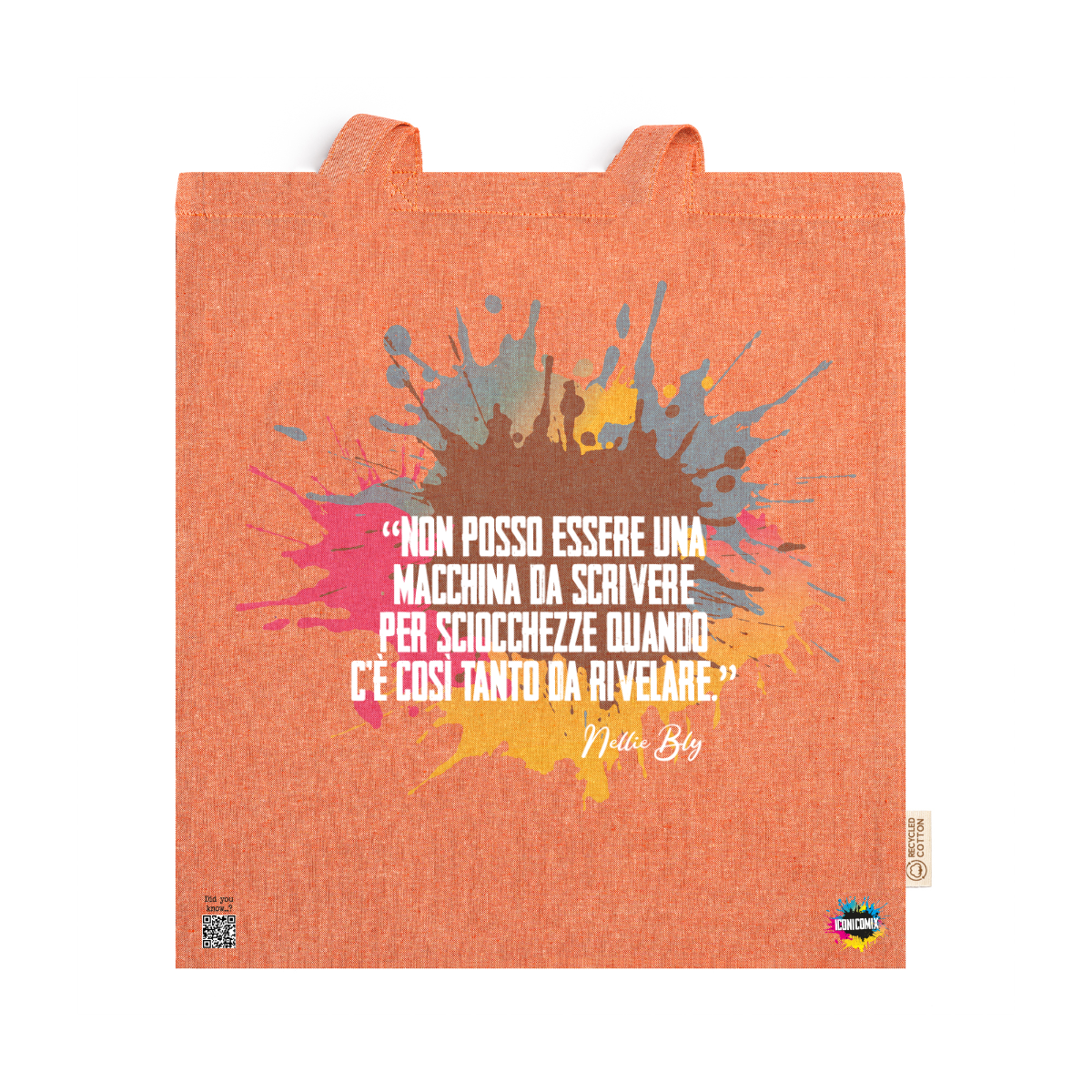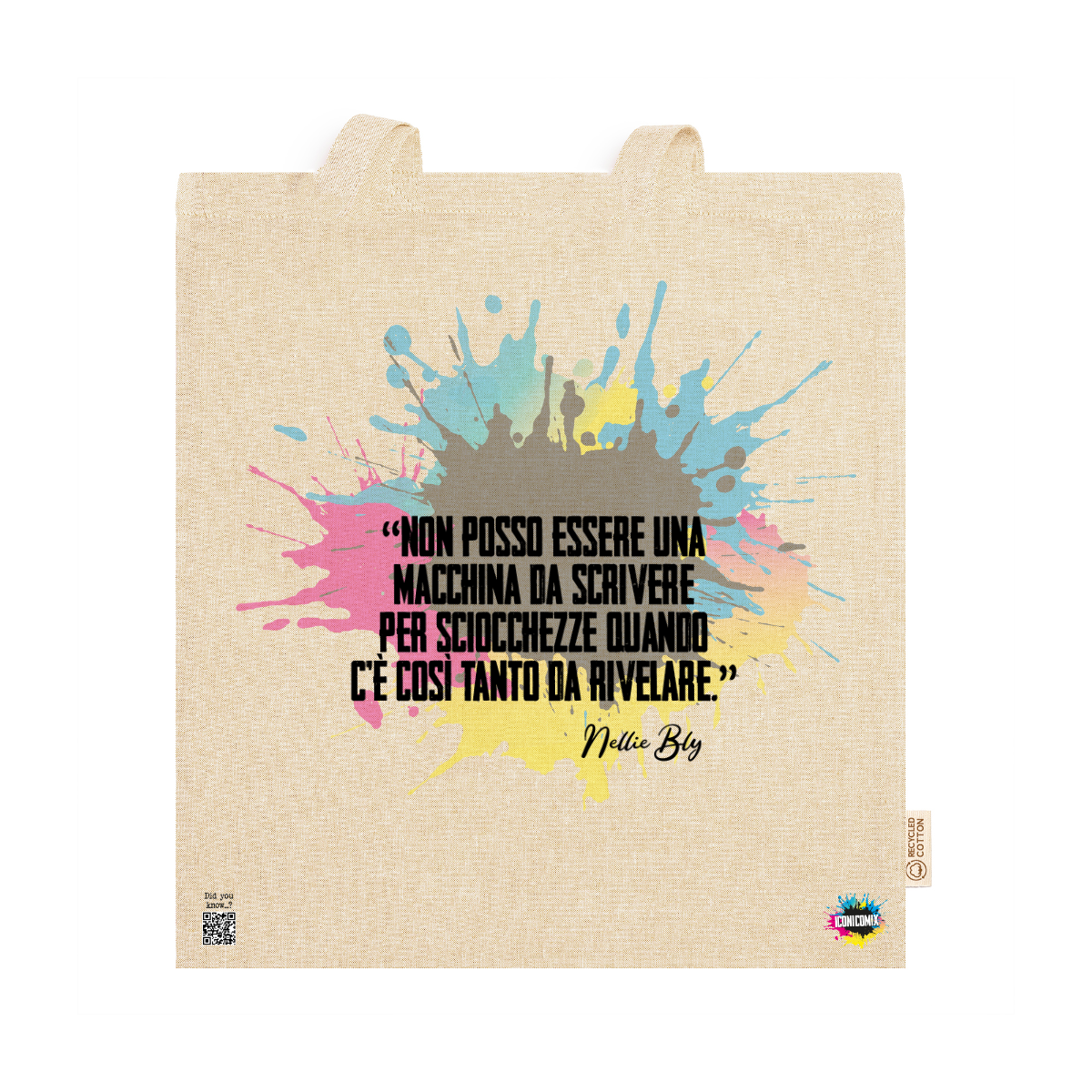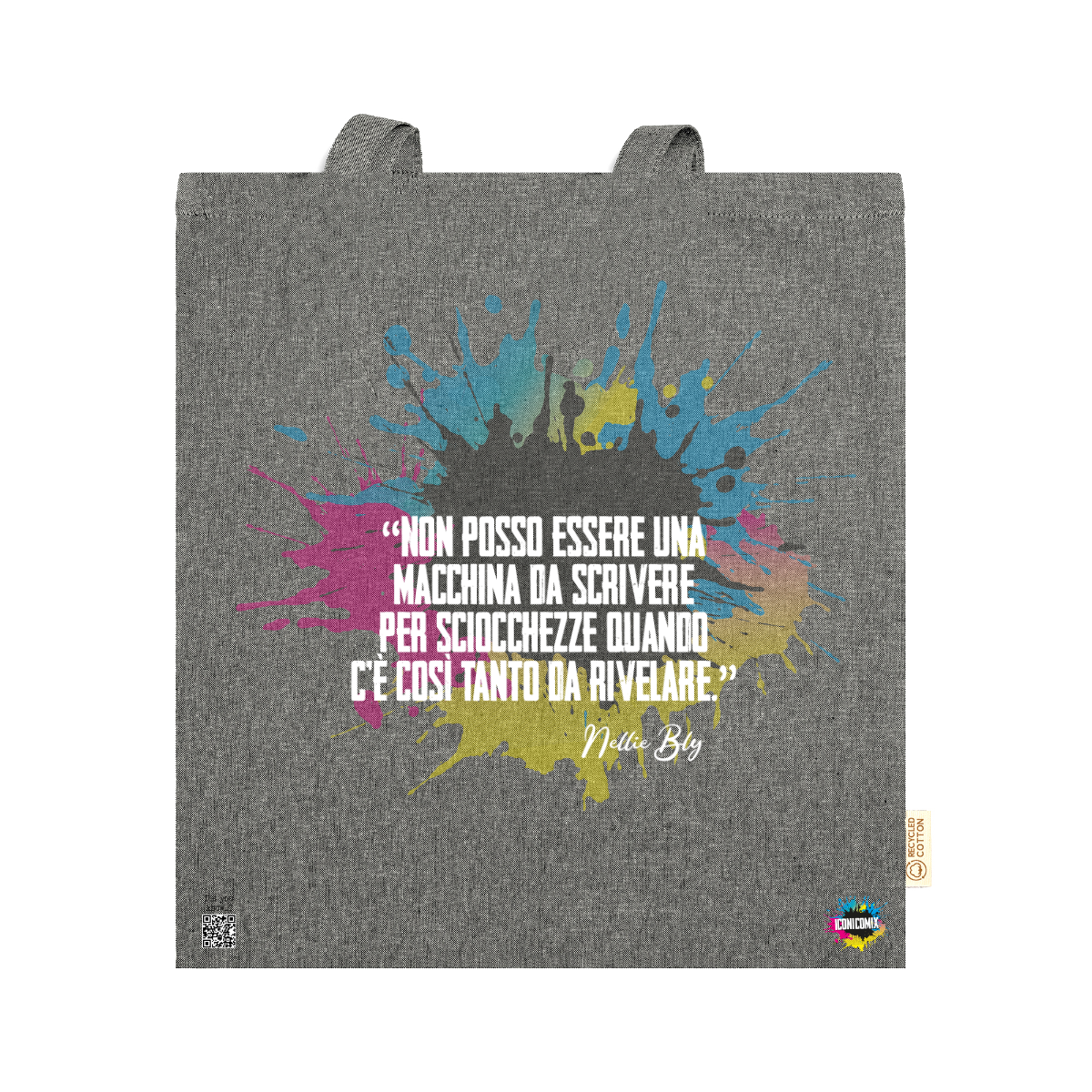 In ogni nostra grafica è presente anche un QR code che reindirizza al sito iconicomix.com, alla pagina ufficiale dell’icona che hai scelto. Una porta digitale che racconta la sua storia, le sue frasi e il suo mondo.