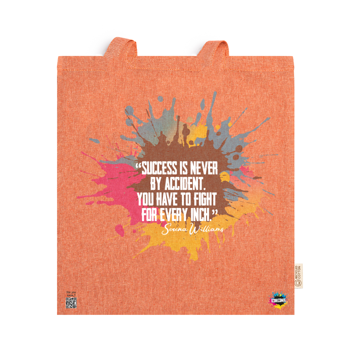 In ogni nostra grafica è presente anche un QR code che reindirizza al sito iconicomix.com, alla pagina ufficiale dell’icona che hai scelto. Una porta digitale che racconta la sua storia, le sue frasi e il suo mondo.