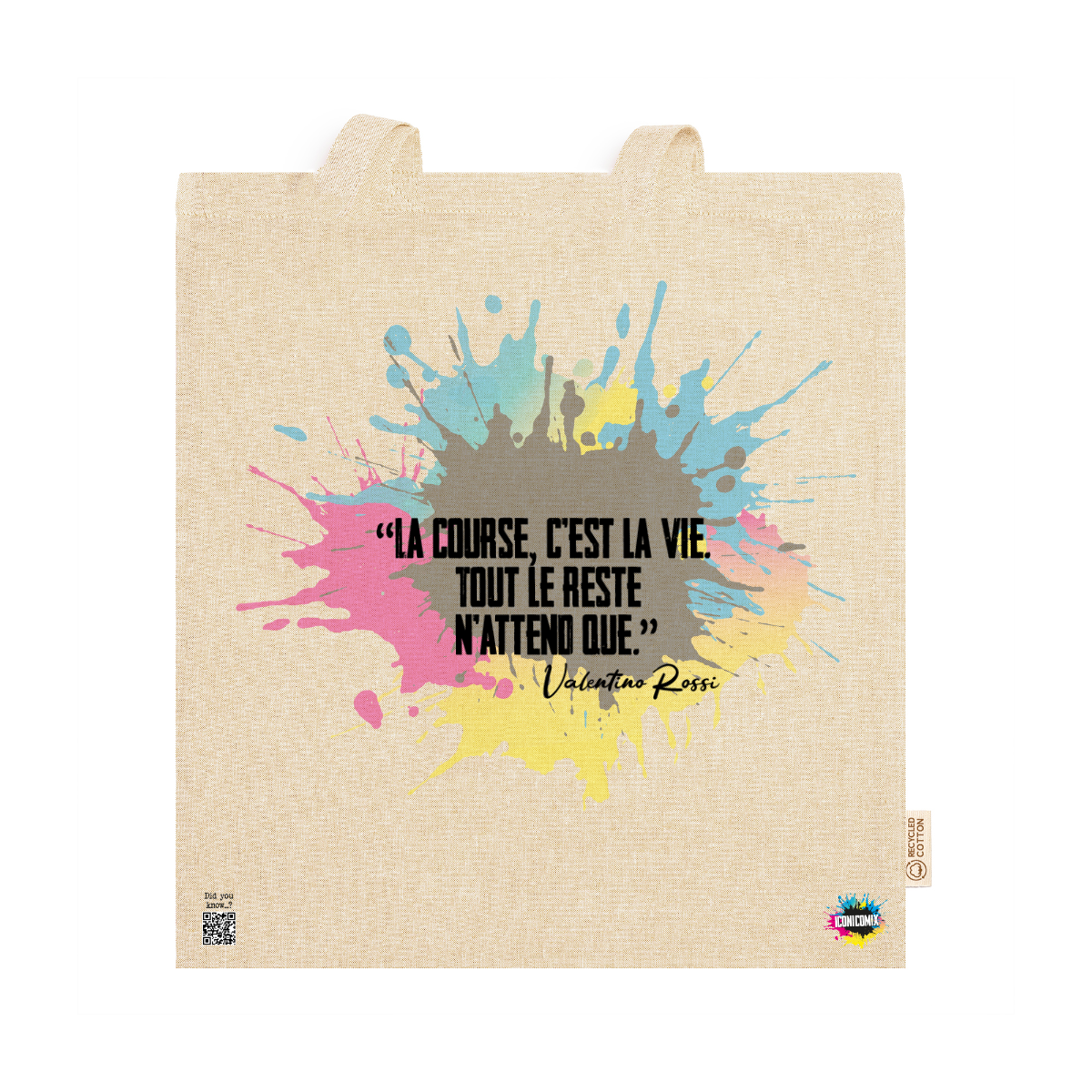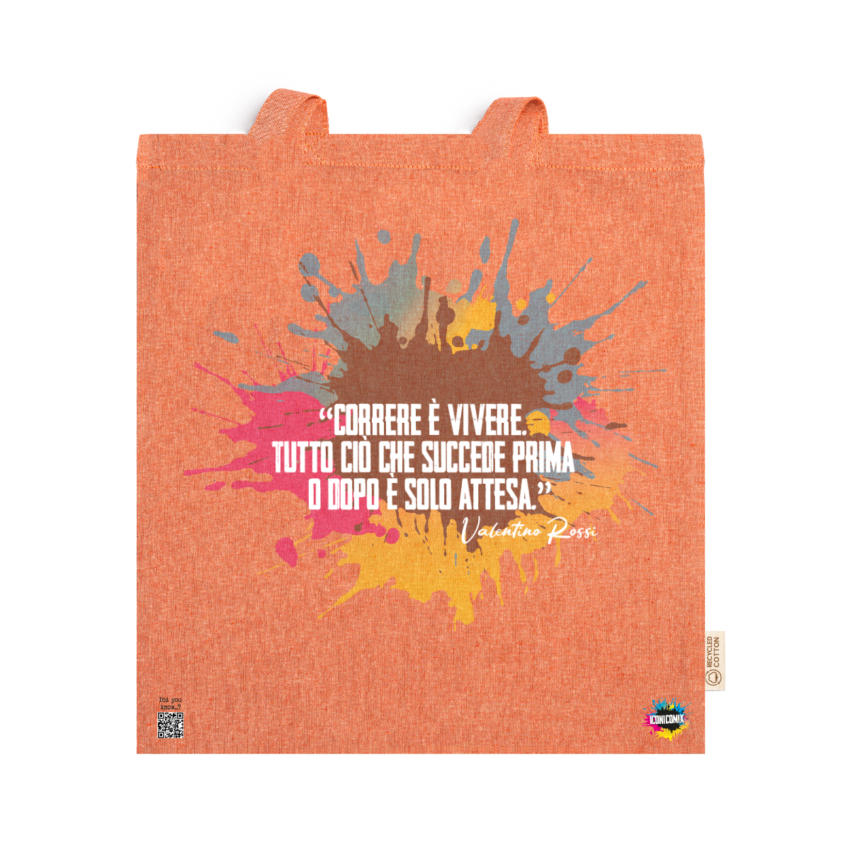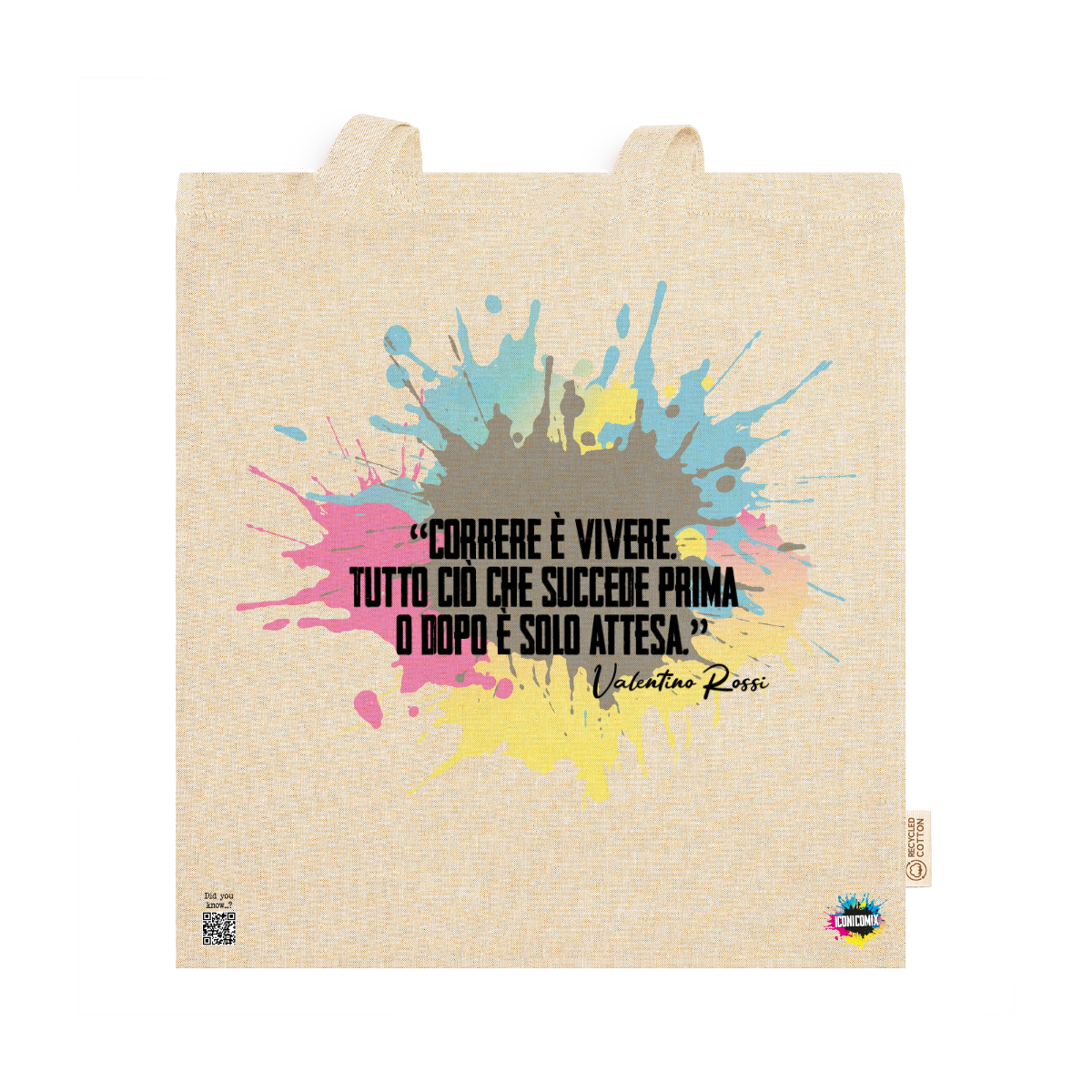 In ogni nostra grafica è presente anche un QR code che reindirizza al sito iconicomix.com, alla pagina ufficiale dell’icona che hai scelto. Una porta digitale che racconta la sua storia, le sue frasi e il suo mondo.