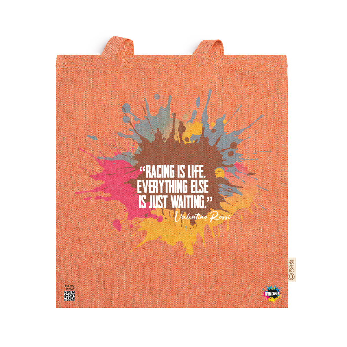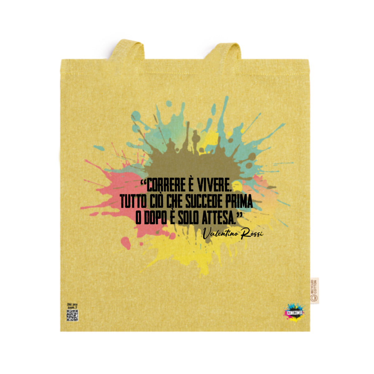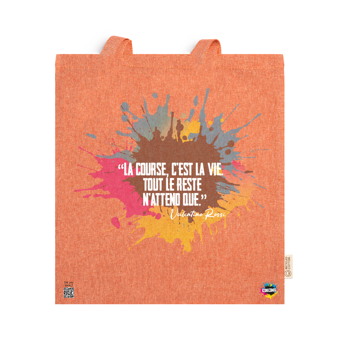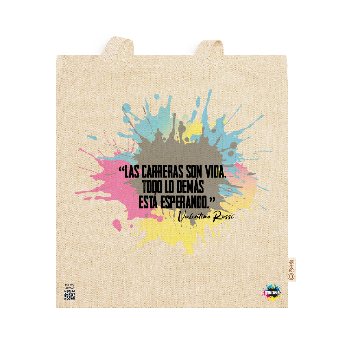 In ogni nostra grafica è presente anche un QR code che reindirizza al sito iconicomix.com, alla pagina ufficiale dell’icona che hai scelto. Una porta digitale che racconta la sua storia, le sue frasi e il suo mondo.
