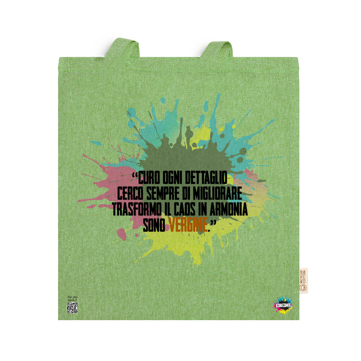 In ogni nostra grafica è presente anche un QR code che reindirizza al sito iconicomix.com, alla pagina ufficiale dell’icona che hai scelto. Una porta digitale che racconta la sua storia, le sue frasi e il suo mondo.