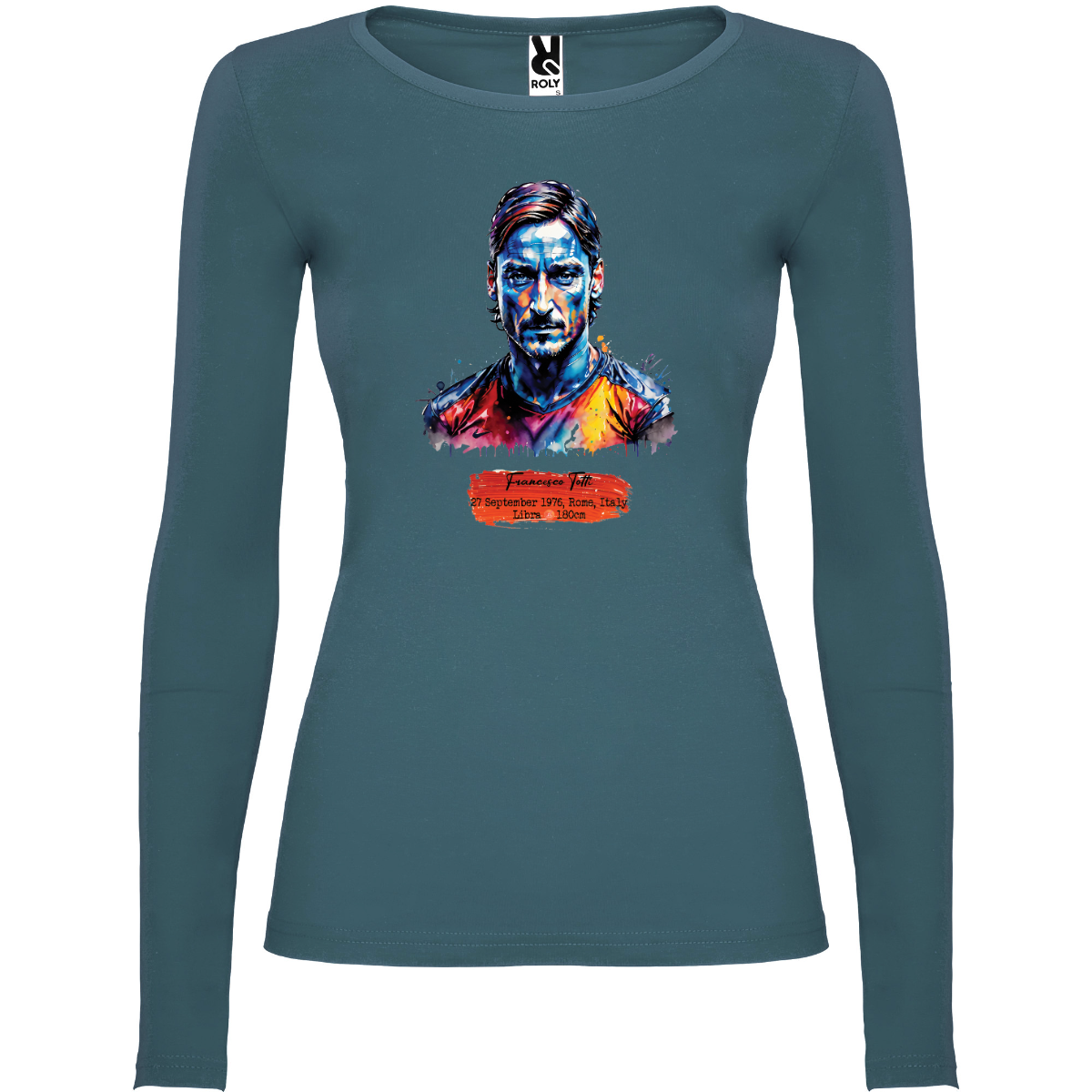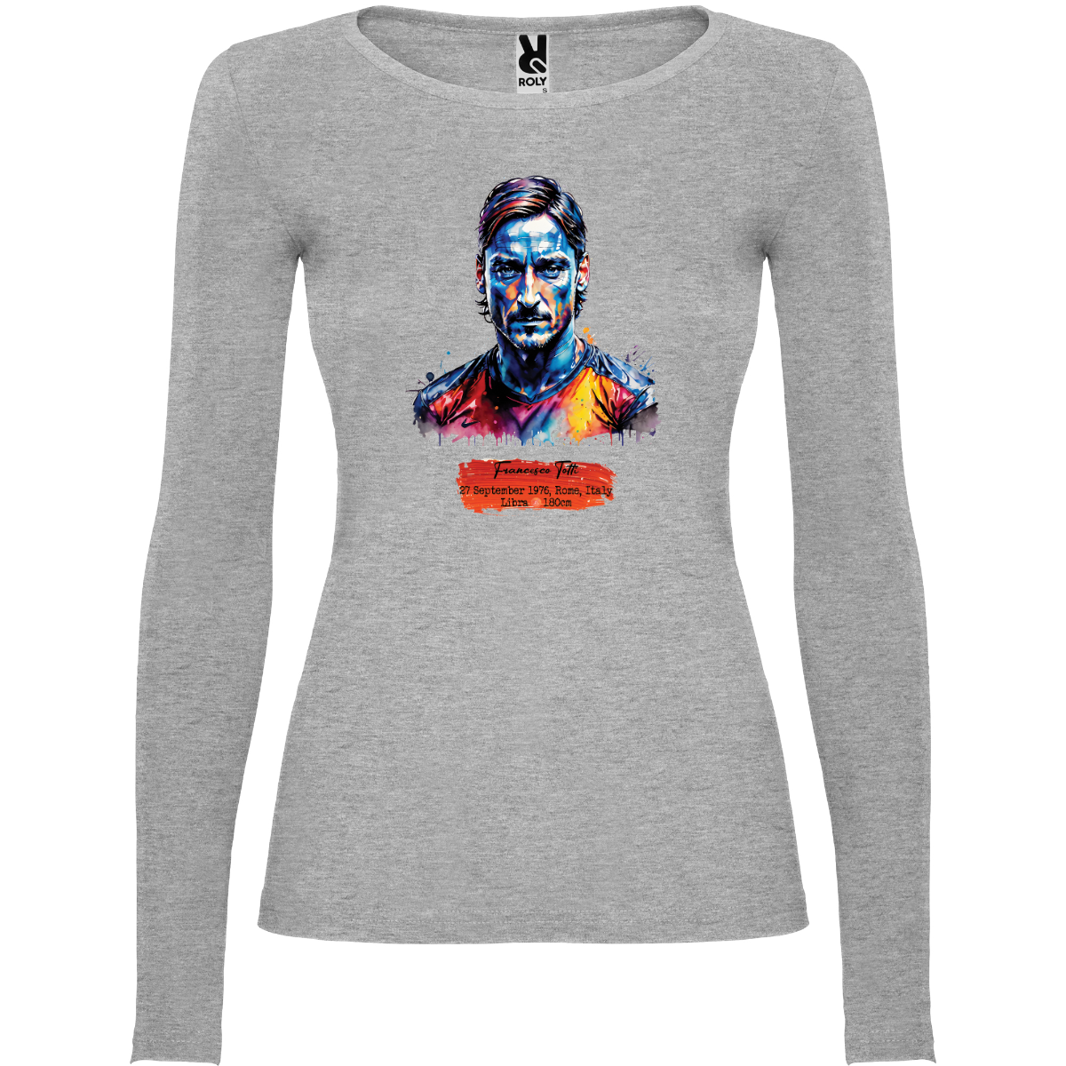T-shirt semi-aderente, manica lunga e colletto sottile. Senza polsini. Cuciture laterali. 100% cotone, single jersey, 160 g/m². Colore grigio: 85% cotone / 15% viscosa.