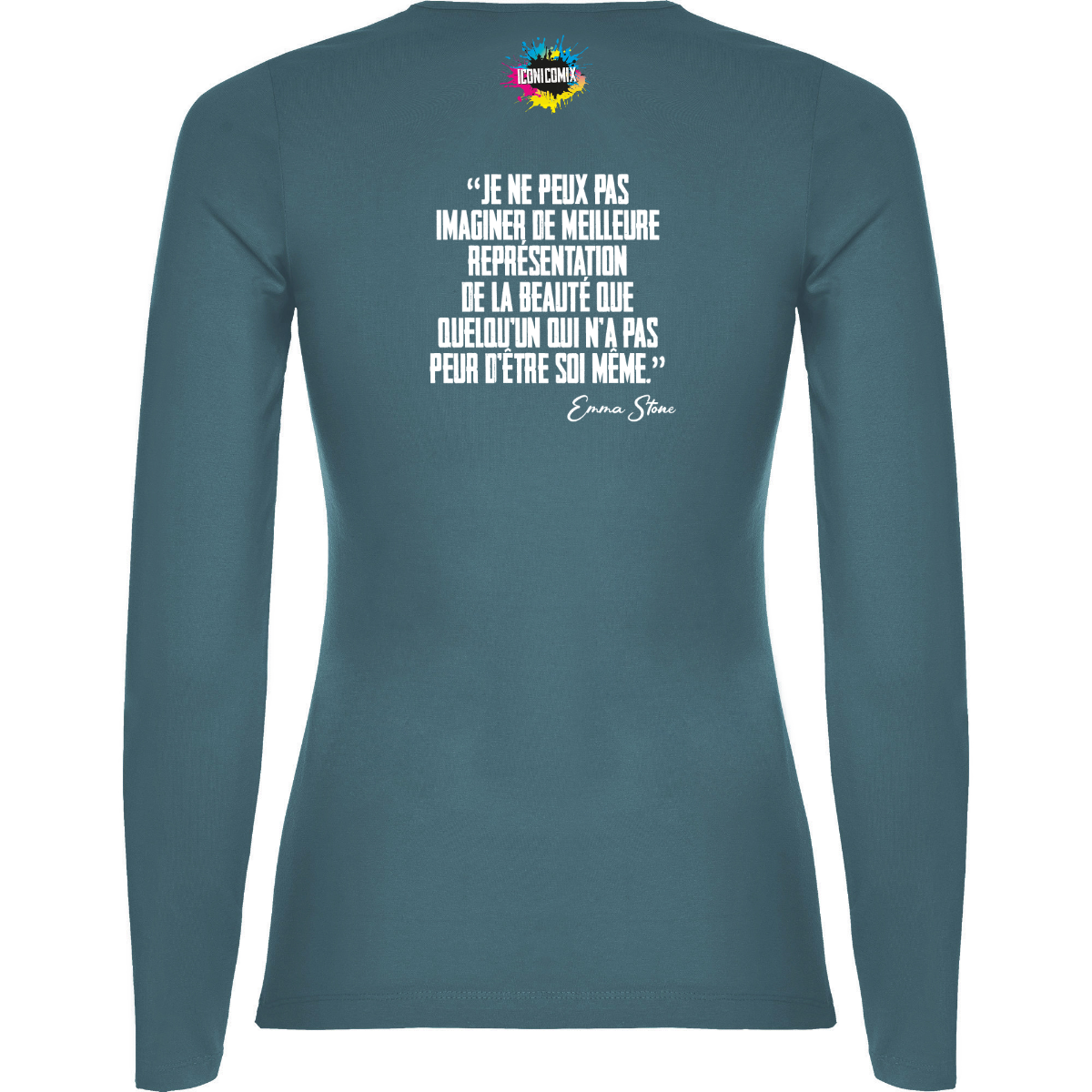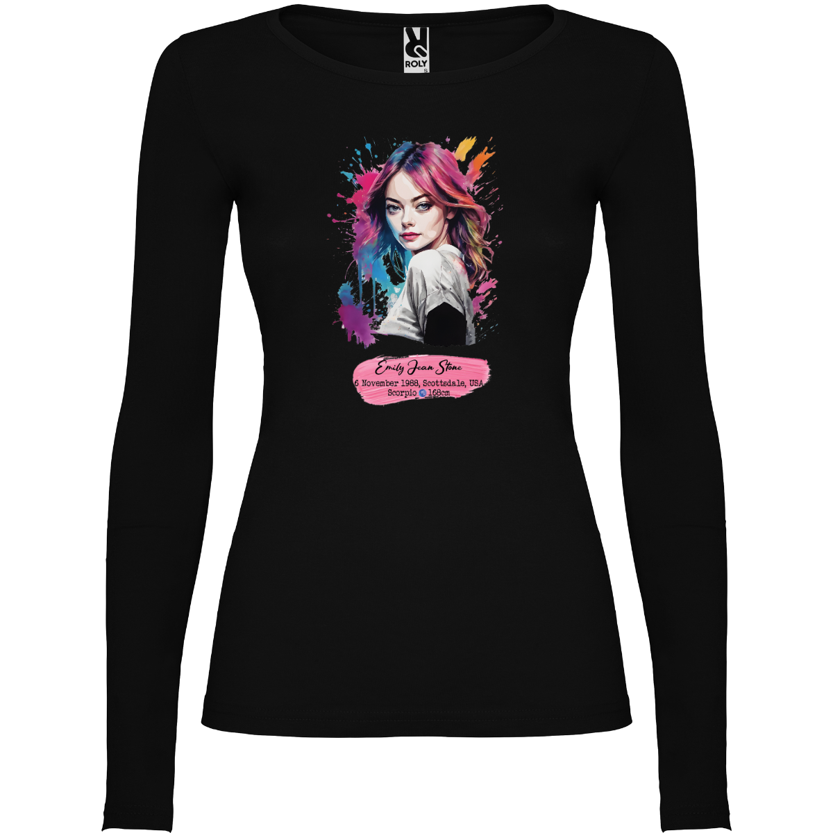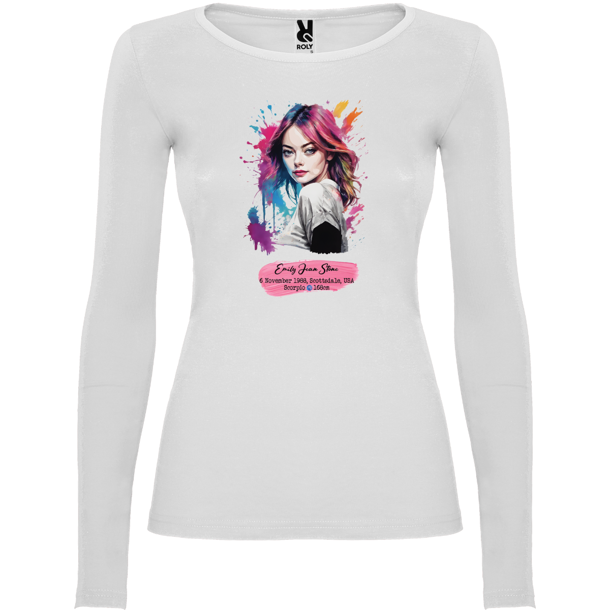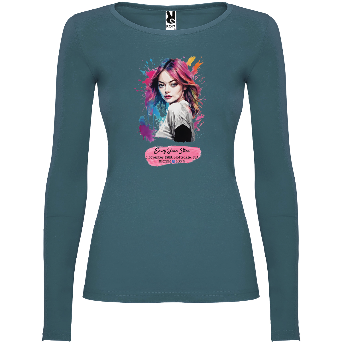 Camiseta semiajustada de manga larga y cuello estrecho. Sin puños. Costuras laterales. 100 % algodón, punto liso, 160 g/m². Gris: 85 % algodón / 15 % viscosa.