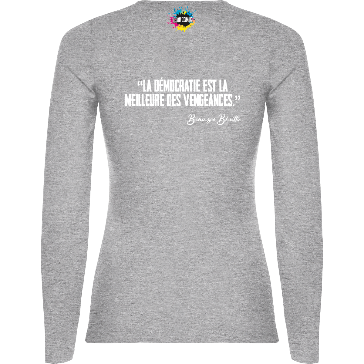 T-shirt semi-aderente, manica lunga e colletto sottile. Senza polsini. Cuciture laterali. 100% cotone, single jersey, 160 g/m². Colore grigio: 85% cotone / 15% viscosa.