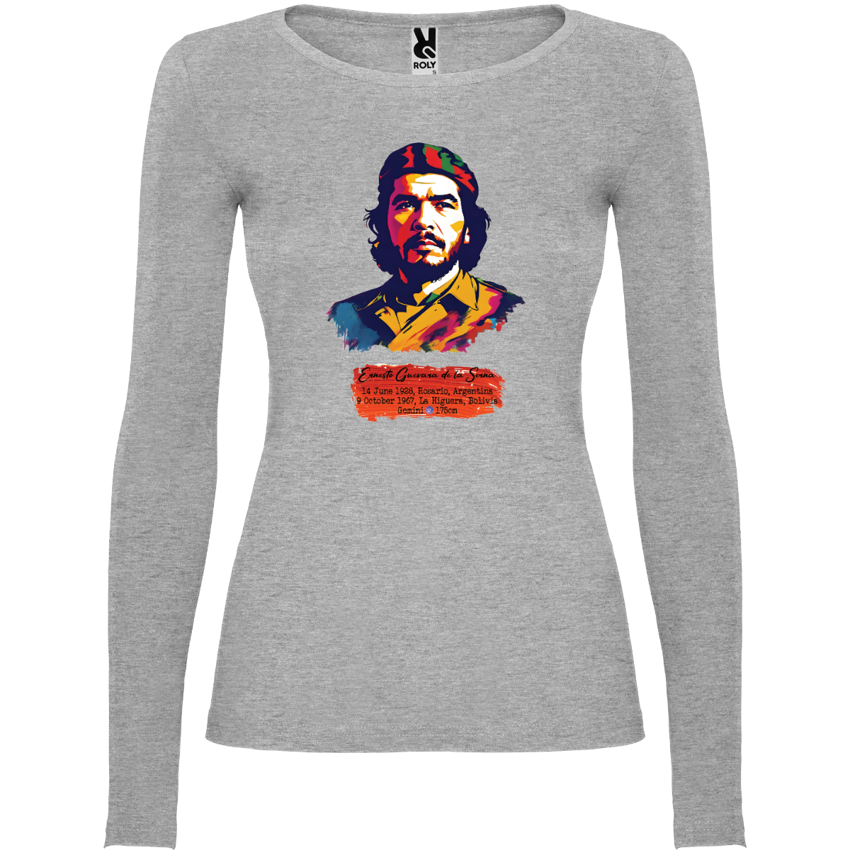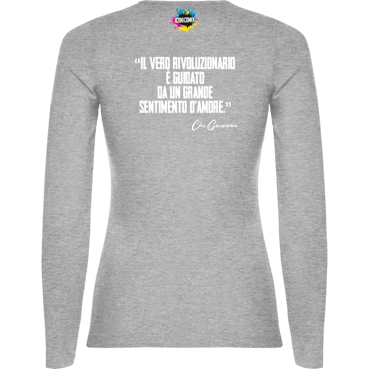 T-shirt semi-aderente, manica lunga e colletto sottile. Senza polsini. Cuciture laterali. 100% cotone, single jersey, 160 g/m². Colore grigio: 85% cotone / 15% viscosa.