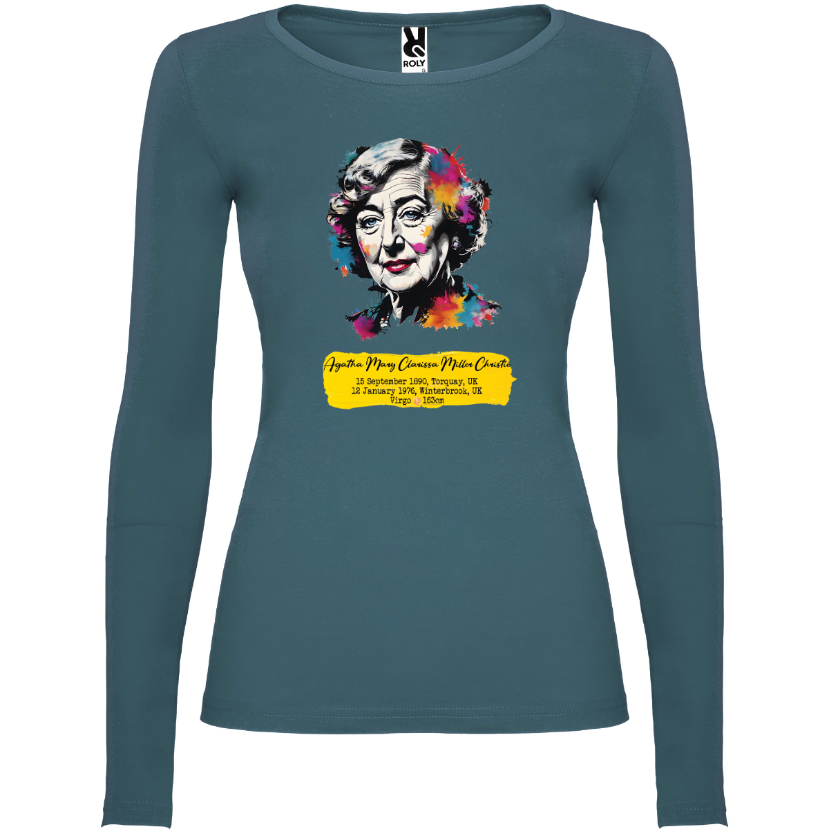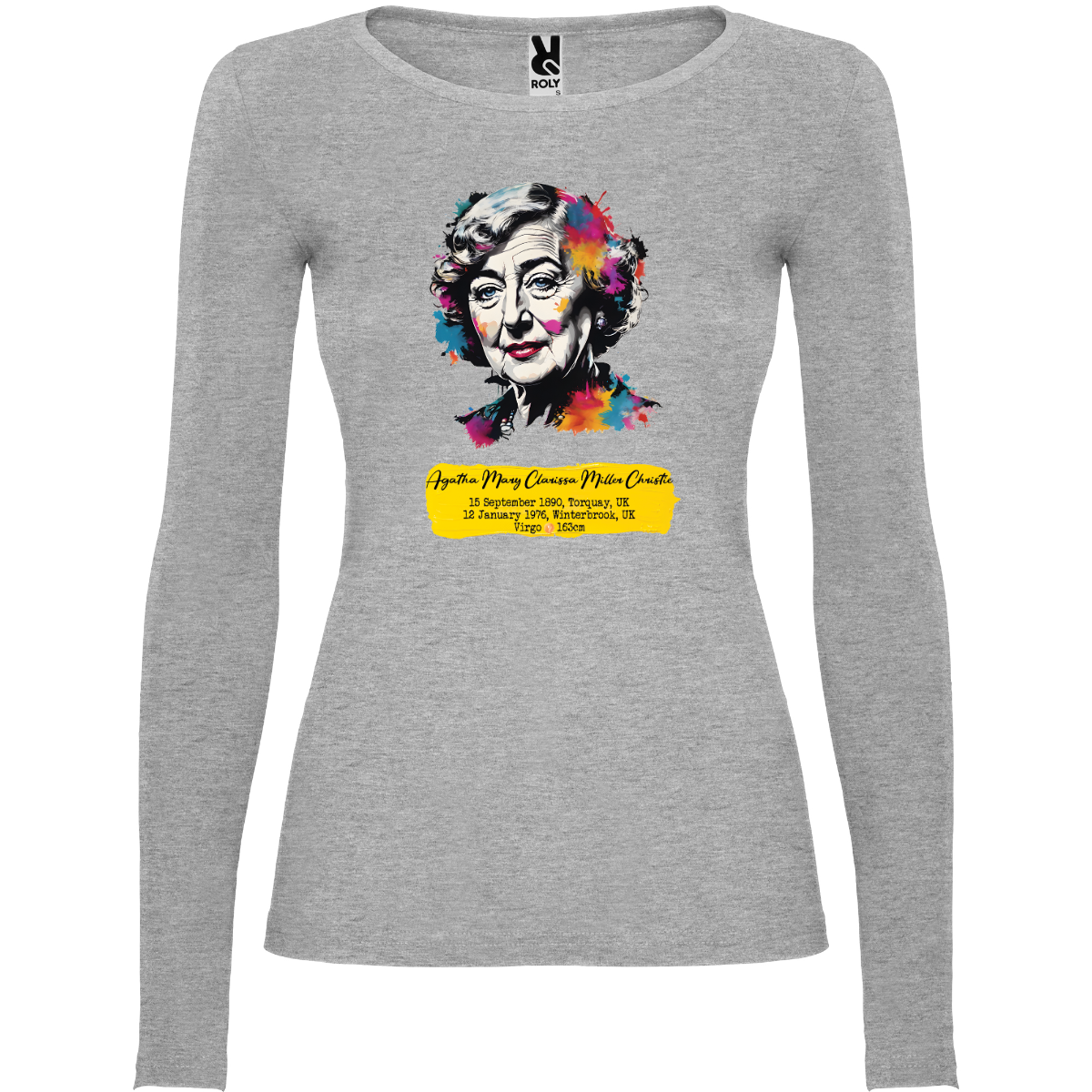 T-shirt semi-aderente, manica lunga e colletto sottile. Senza polsini. Cuciture laterali. 100% cotone, single jersey, 160 g/m². Colore grigio: 85% cotone / 15% viscosa.