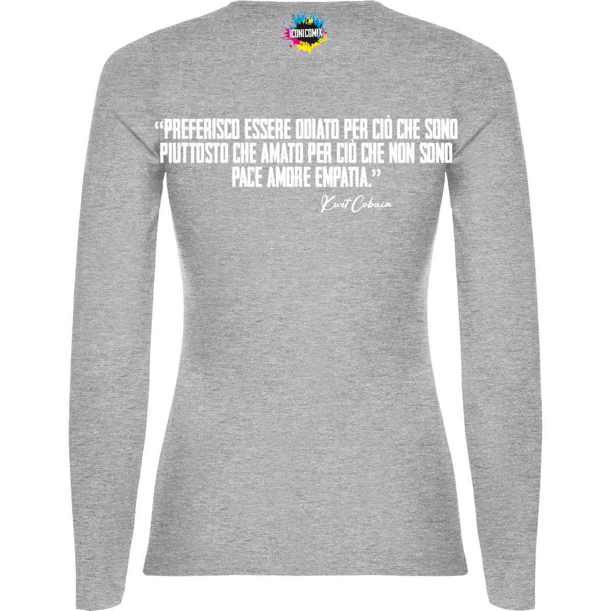 T-shirt semi-aderente, manica lunga e colletto sottile. Senza polsini. Cuciture laterali. 100% cotone, single jersey, 160 g/m². Colore grigio: 85% cotone / 15% viscosa.