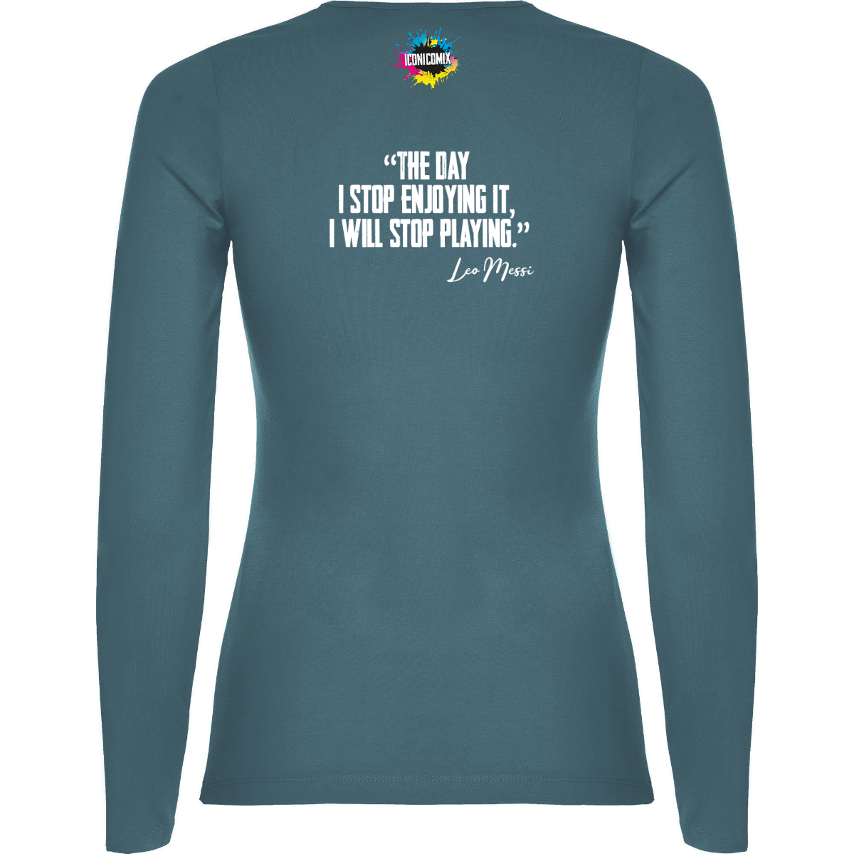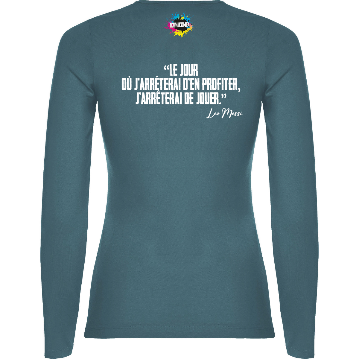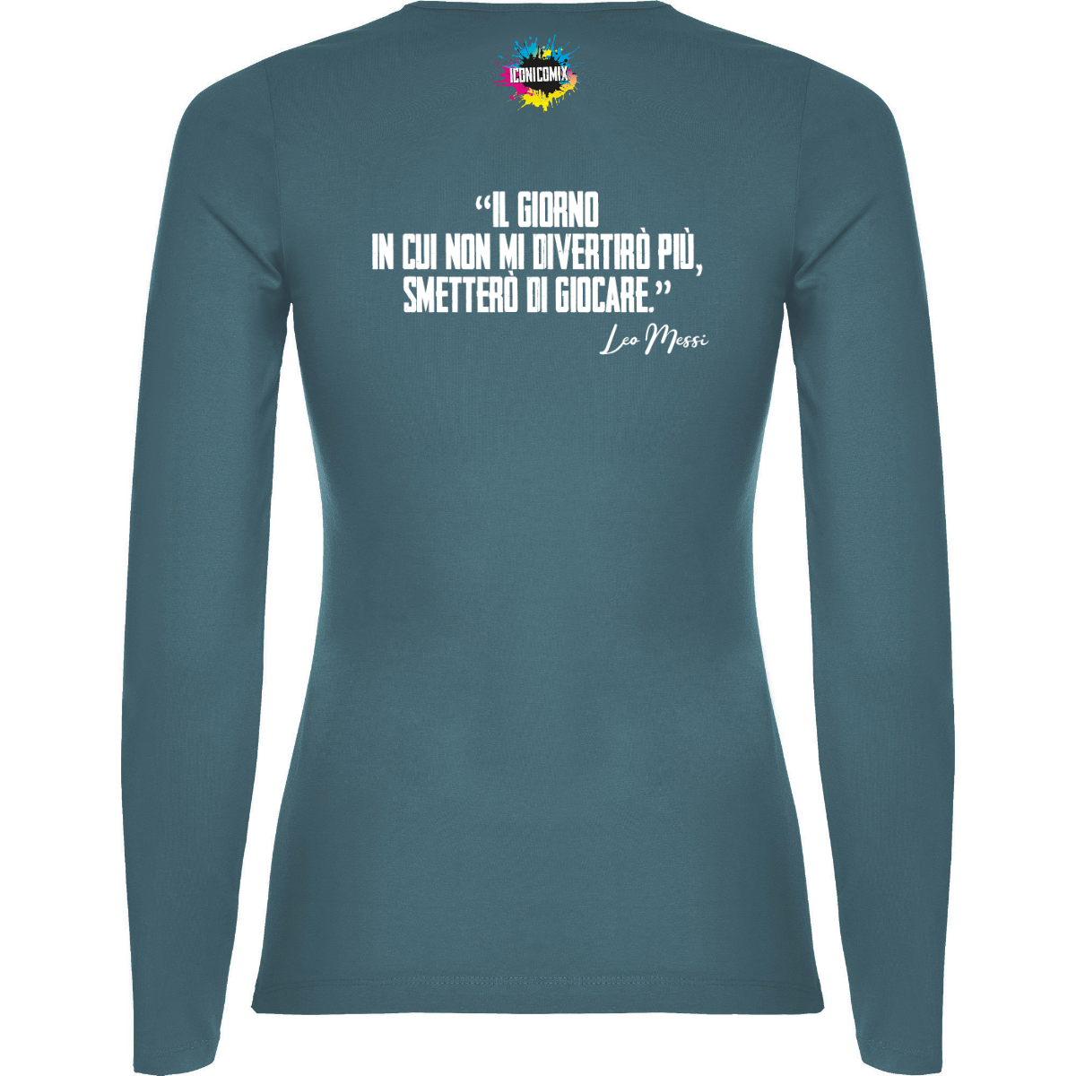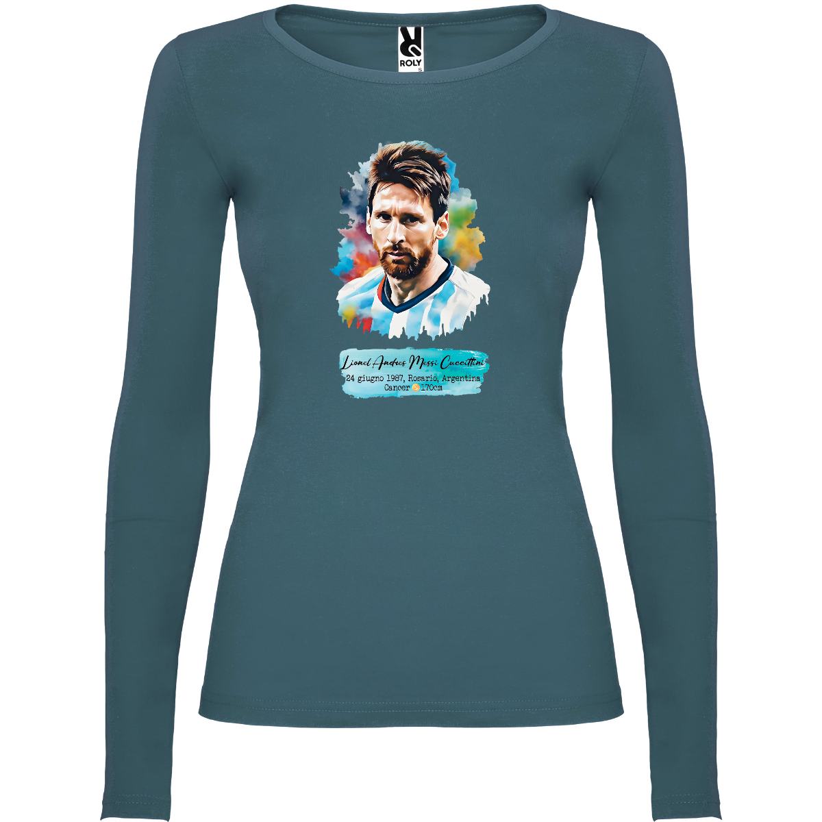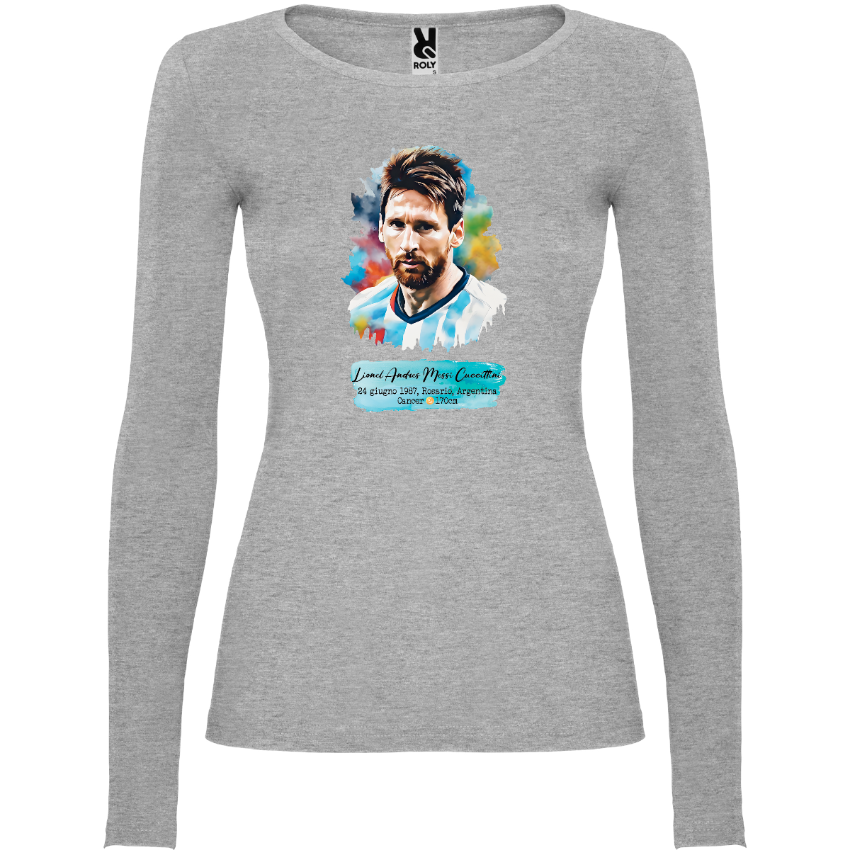 T-shirt semi-aderente, manica lunga e colletto sottile. Senza polsini. Cuciture laterali. 100% cotone, single jersey, 160 g/m². Colore grigio: 85% cotone / 15% viscosa.