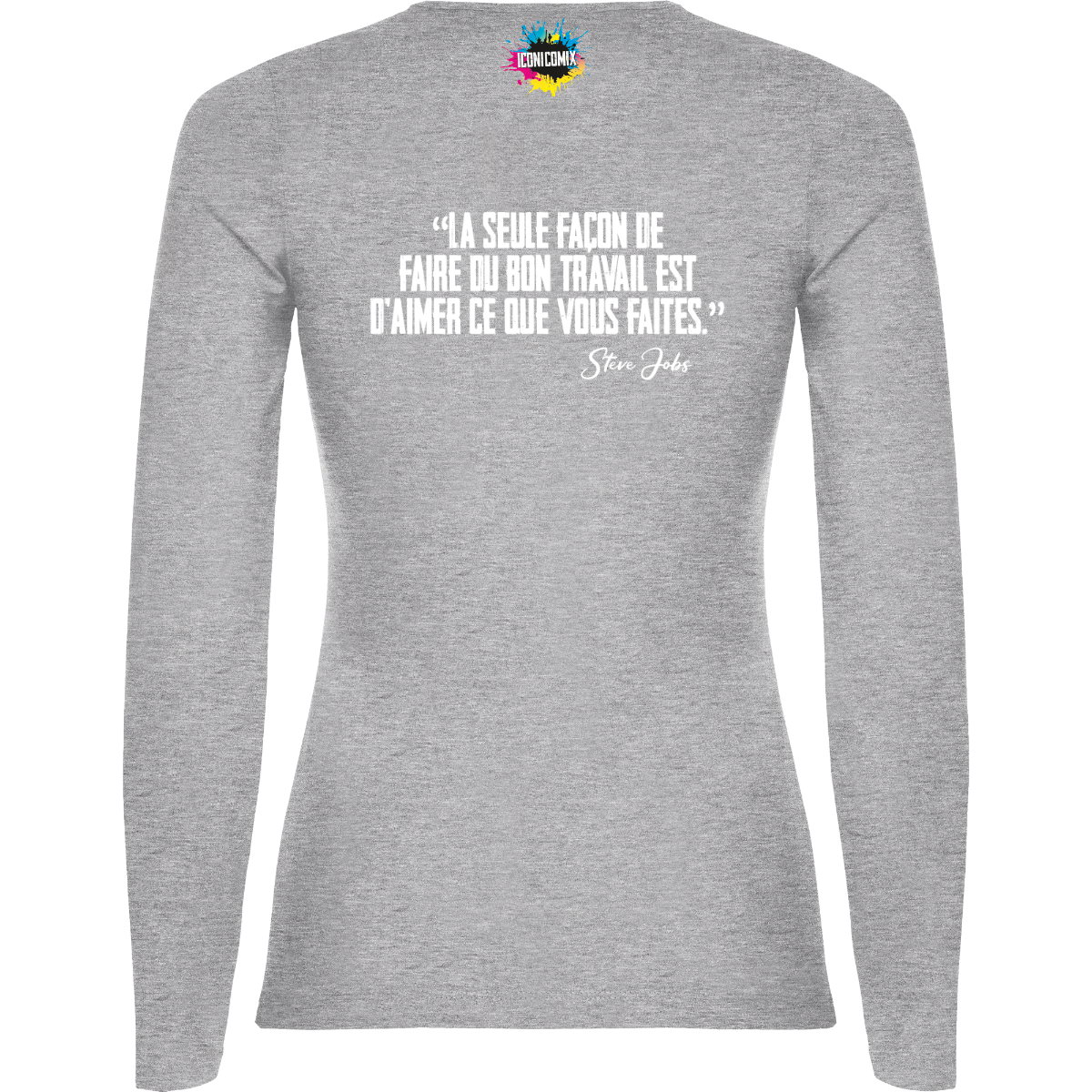 T-shirt semi-aderente, manica lunga e colletto sottile. Senza polsini. Cuciture laterali. 100% cotone, single jersey, 160 g/m². Colore grigio: 85% cotone / 15% viscosa.
