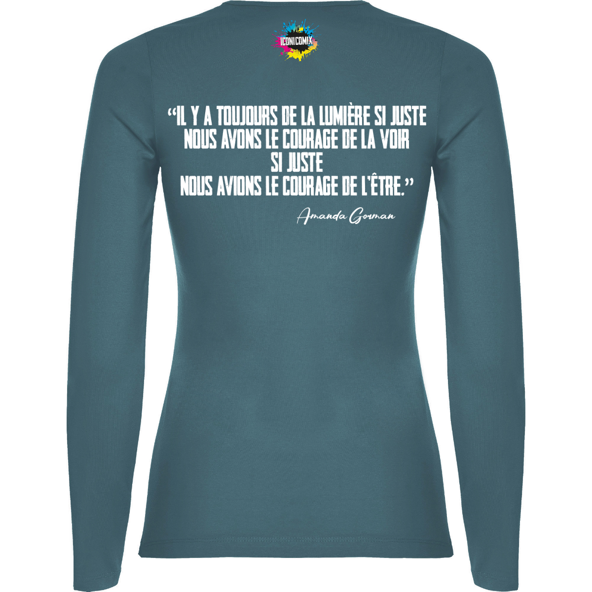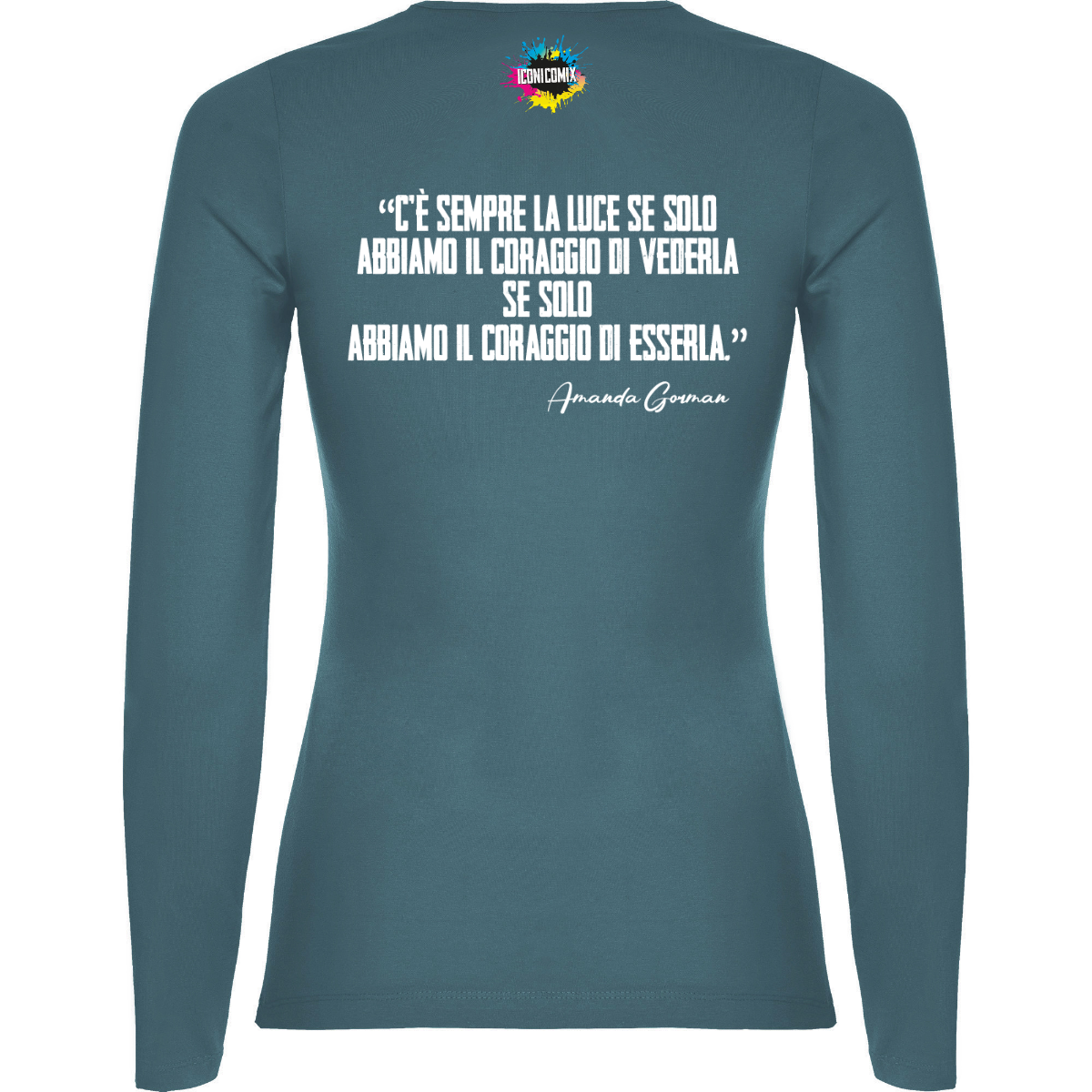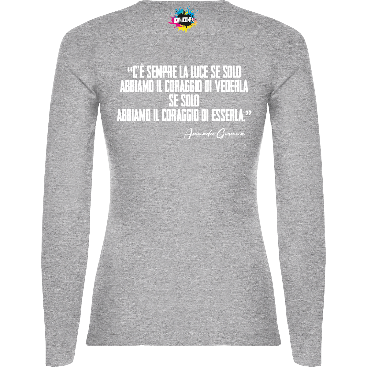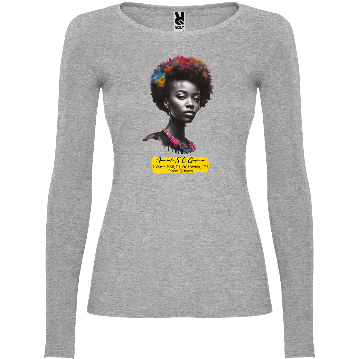 T-shirt semi-aderente, manica lunga e colletto sottile. Senza polsini. Cuciture laterali. 100% cotone, single jersey, 160 g/m². Colore grigio: 85% cotone / 15% viscosa.