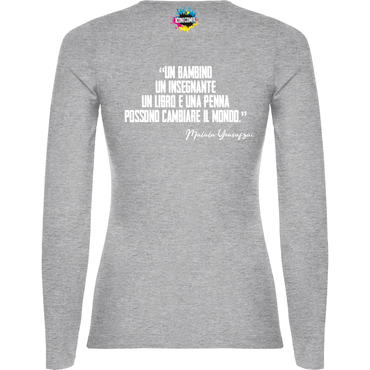 T-shirt semi-aderente, manica lunga e colletto sottile. Senza polsini. Cuciture laterali. 100% cotone, single jersey, 160 g/m². Colore grigio: 85% cotone / 15% viscosa.
