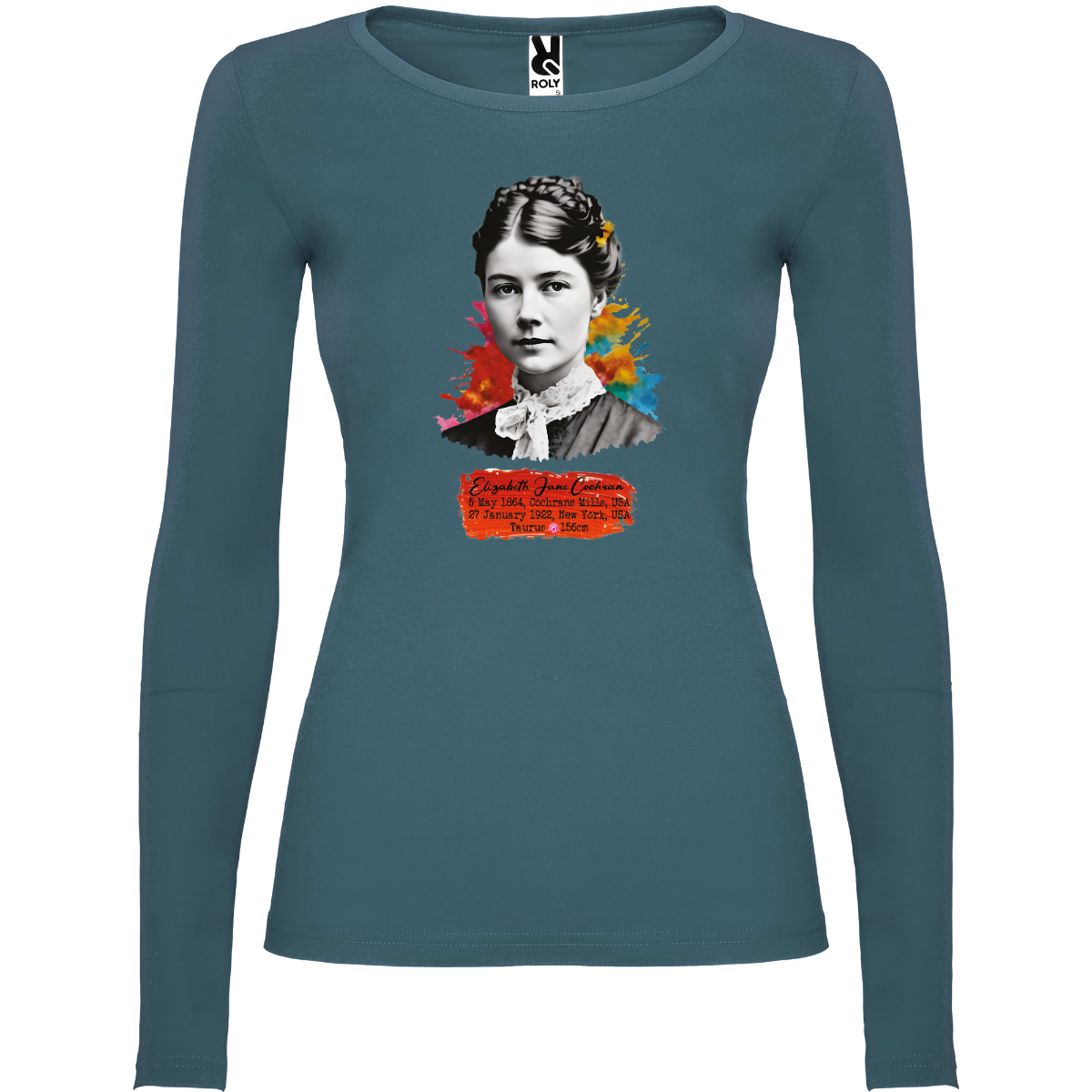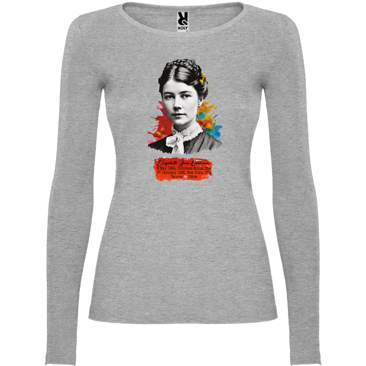 T-shirt semi-aderente, manica lunga e colletto sottile. Senza polsini. Cuciture laterali. 100% cotone, single jersey, 160 g/m². Colore grigio: 85% cotone / 15% viscosa.