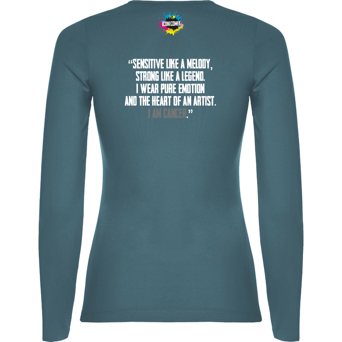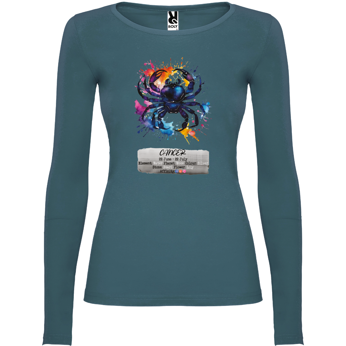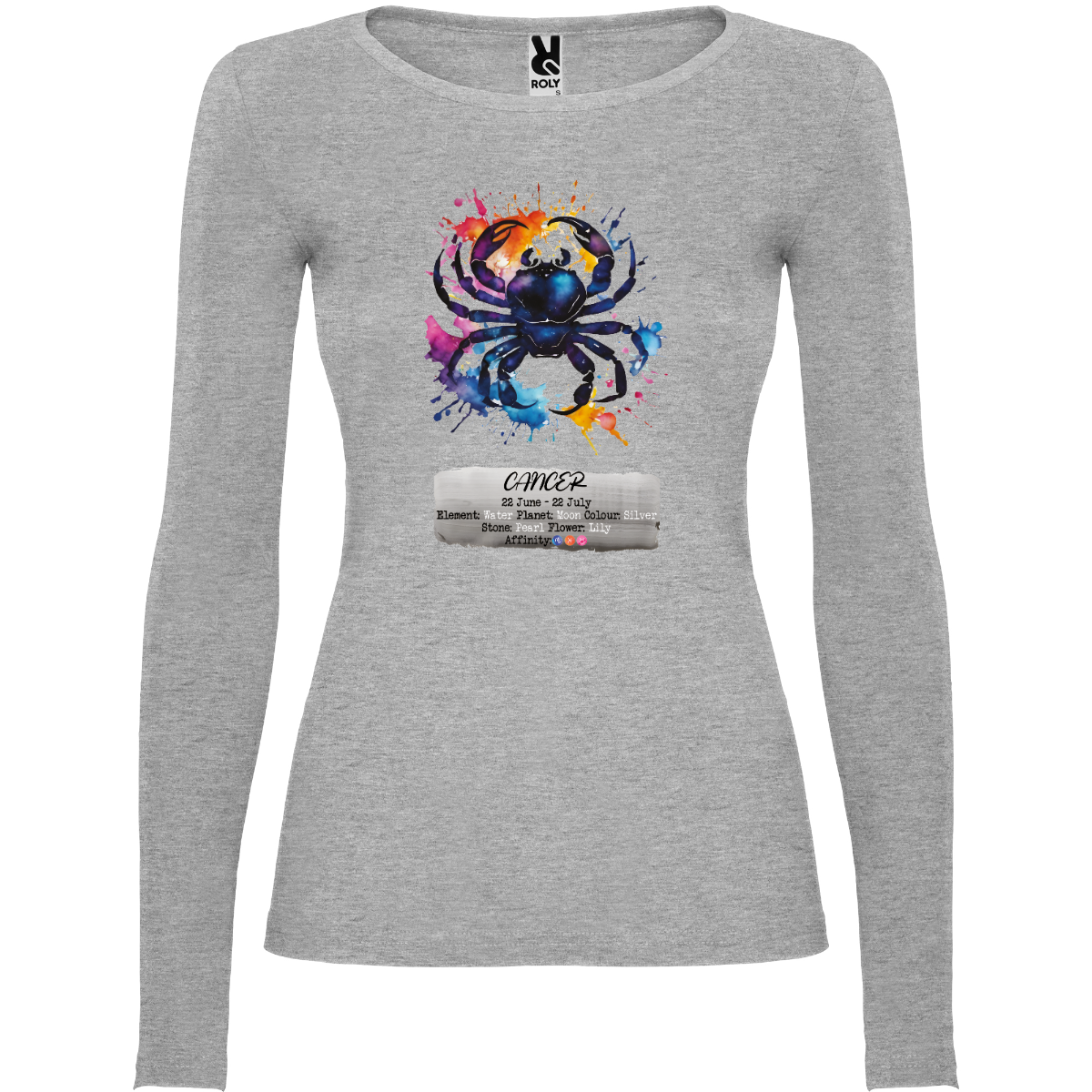 T-shirt semi-aderente, manica lunga e colletto sottile. Senza polsini. Cuciture laterali. 100% cotone, single jersey, 160 g/m². Colore grigio: 85% cotone / 15% viscosa.