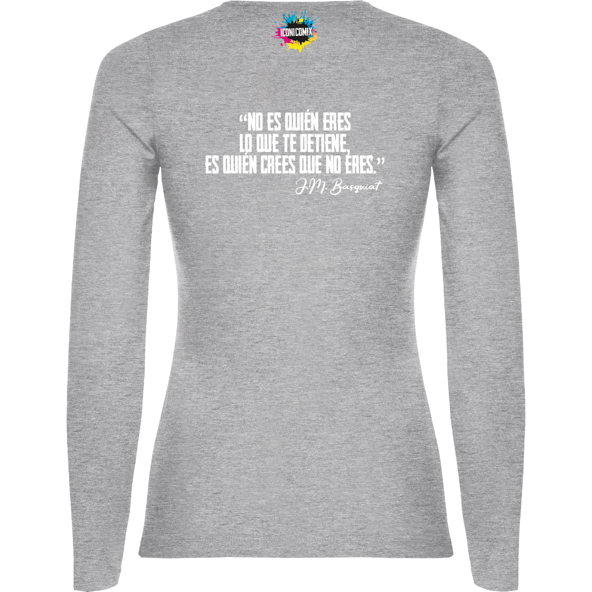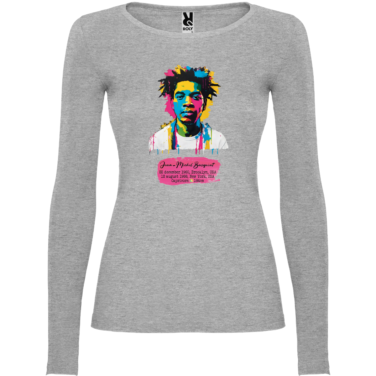 T-shirt semi-aderente, manica lunga e colletto sottile. Senza polsini. Cuciture laterali. 100% cotone, single jersey, 160 g/m². Colore grigio: 85% cotone / 15% viscosa.