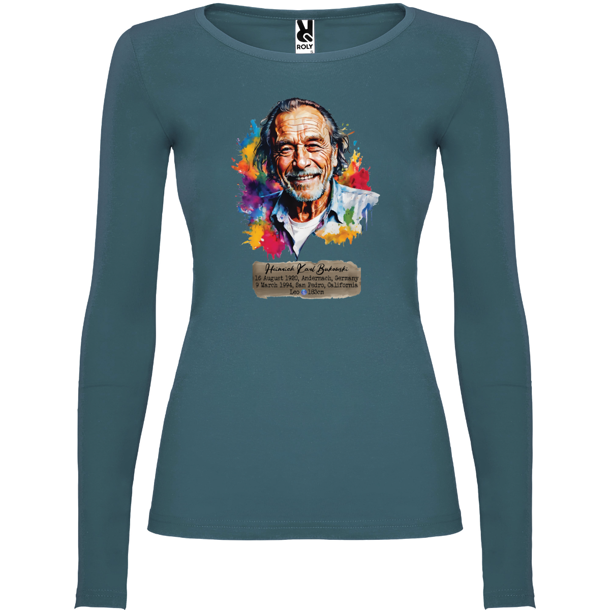 T-shirt semi-aderente, manica lunga e colletto sottile. Senza polsini. Cuciture laterali. 100% cotone, single jersey, 160 g/m². Colore grigio: 85% cotone / 15% viscosa.