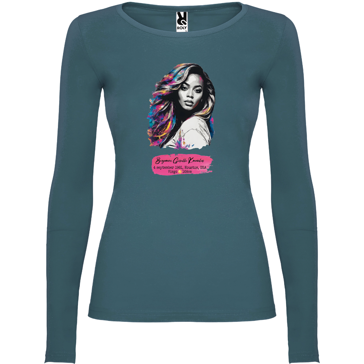 T-shirt semi-aderente, manica lunga e colletto sottile. Senza polsini. Cuciture laterali. 100% cotone, single jersey, 160 g/m². Colore grigio: 85% cotone / 15% viscosa.