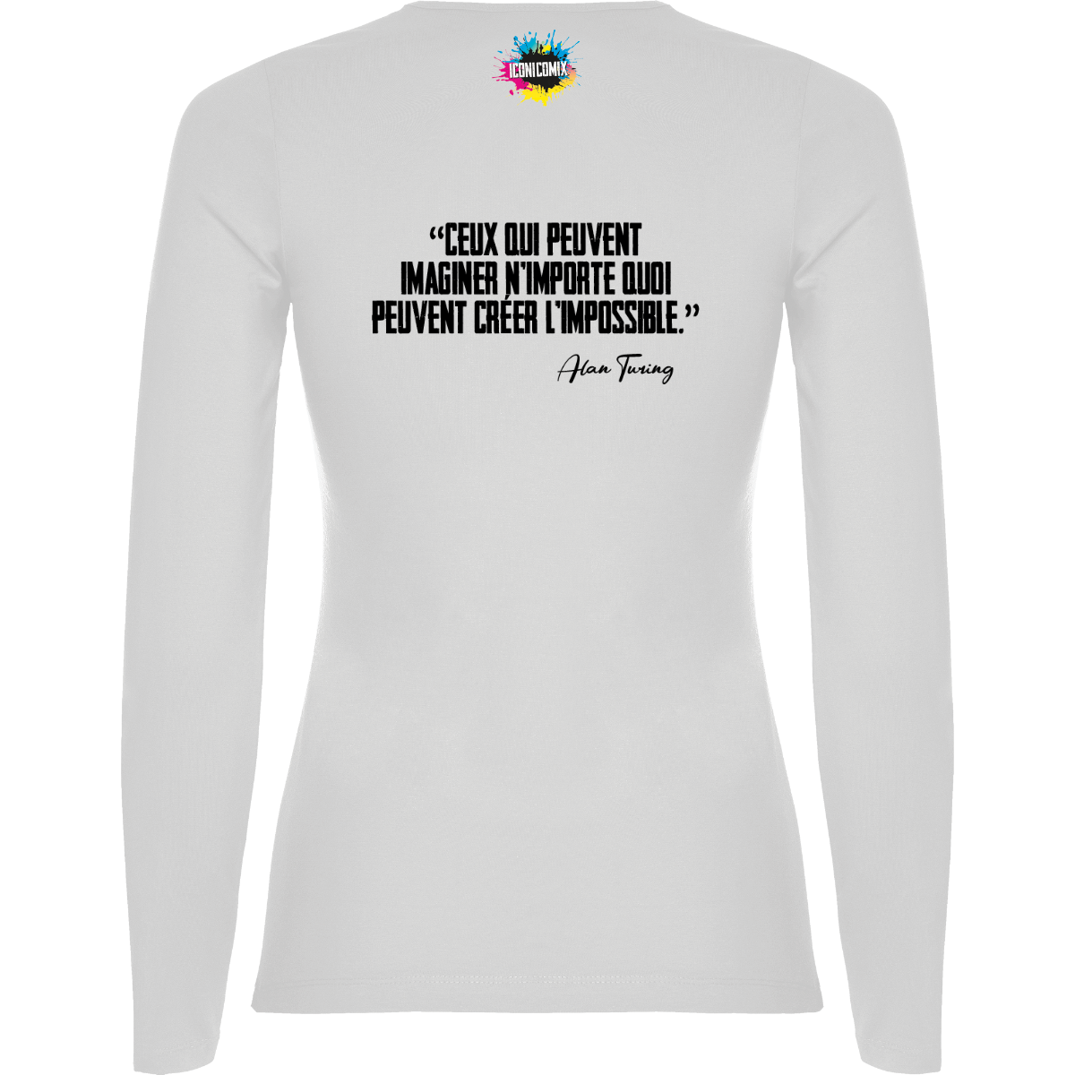 In ogni nostra grafica è presente anche un QR code che reindirizza al sito iconicomix.com, alla pagina ufficiale dell’icona che hai scelto. Una porta digitale che racconta la sua storia, le sue frasi e il suo mondo.