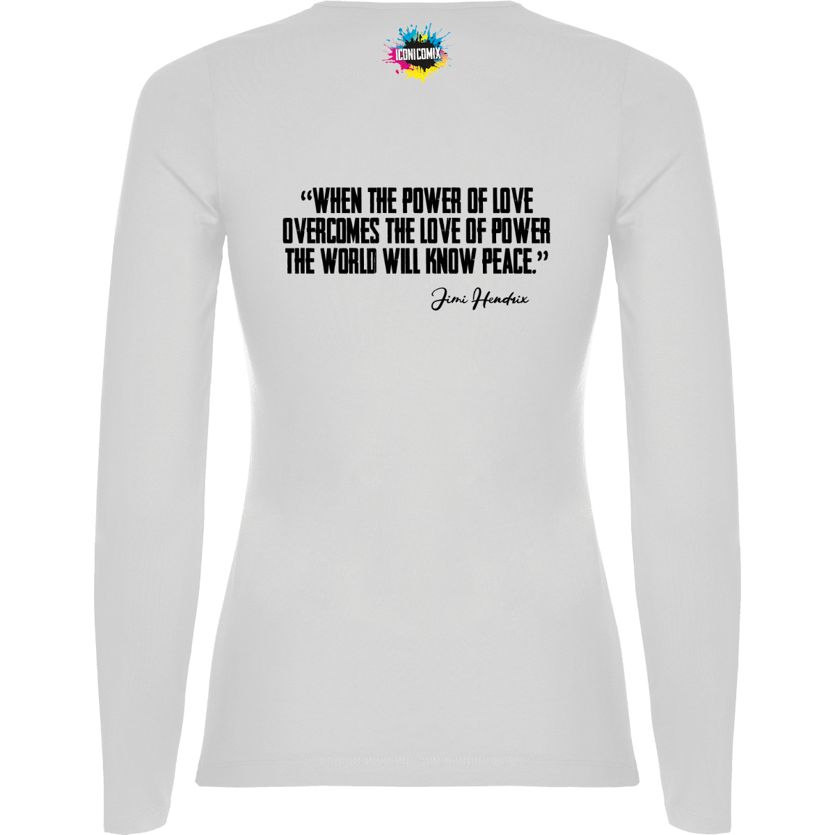 Cada uno de nuestros diseños incluye un código QR que te redirige a iconicomix.com, la página oficial del icono que has elegido. Un portal digital que narra su historia, sus frases y su universo.