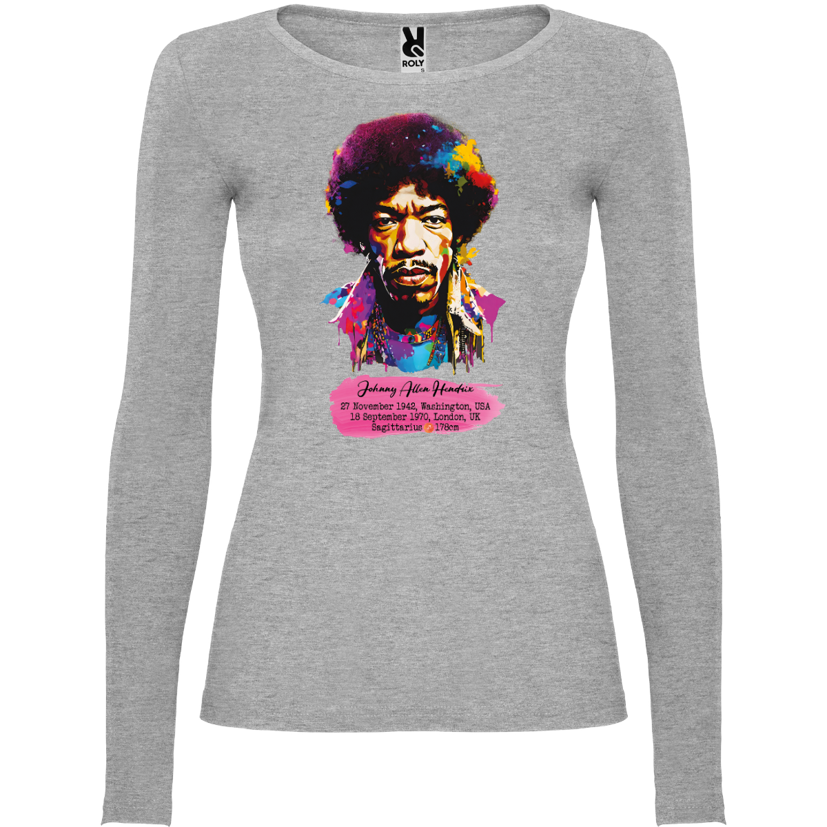 Camiseta semiajustada de manga larga y cuello estrecho. Sin puños. Costuras laterales. 100 % algodón, punto liso, 160 g/m². Gris: 85 % algodón / 15 % viscosa.
