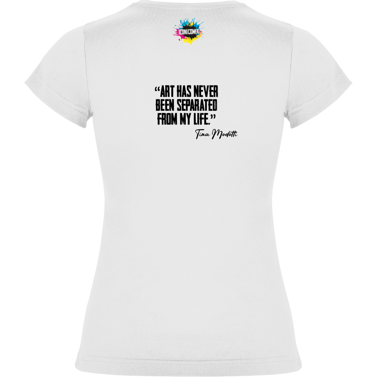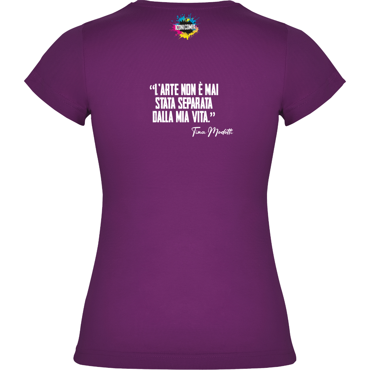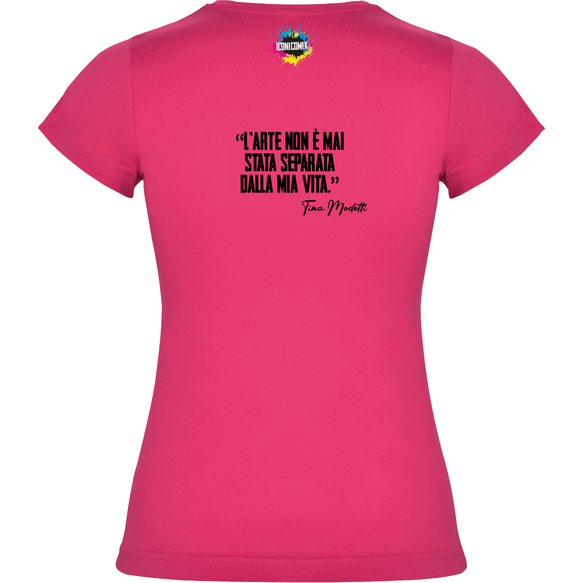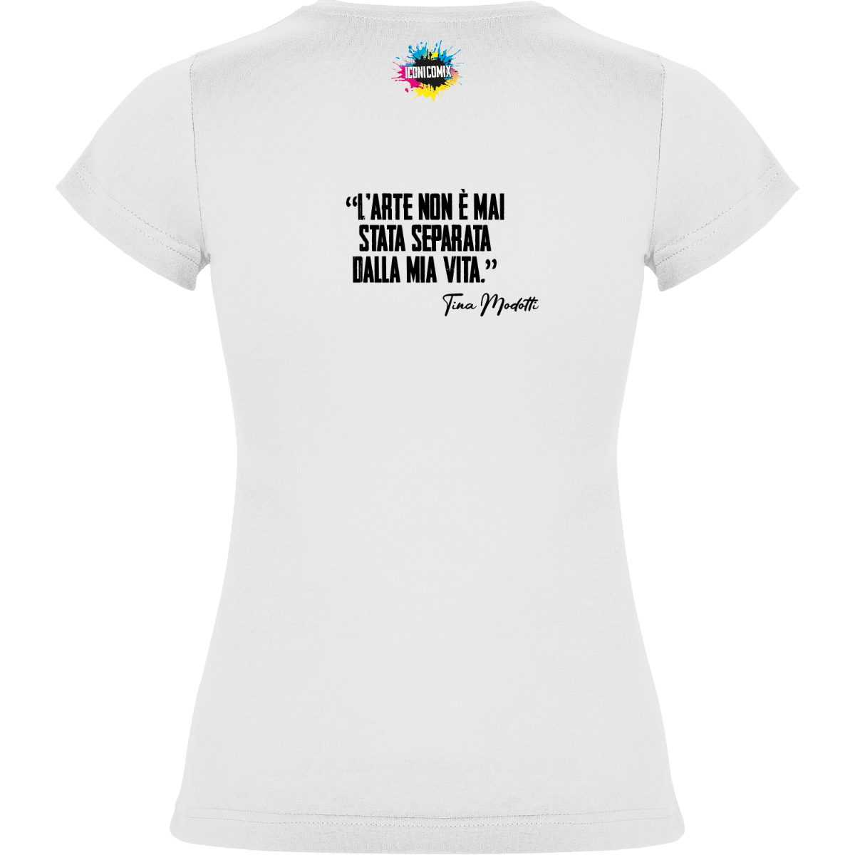In ogni nostra grafica è presente anche un QR code che reindirizza al sito iconicomix.com, alla pagina ufficiale dell’icona che hai scelto. Una porta digitale che racconta la sua storia, le sue frasi e il suo mondo.