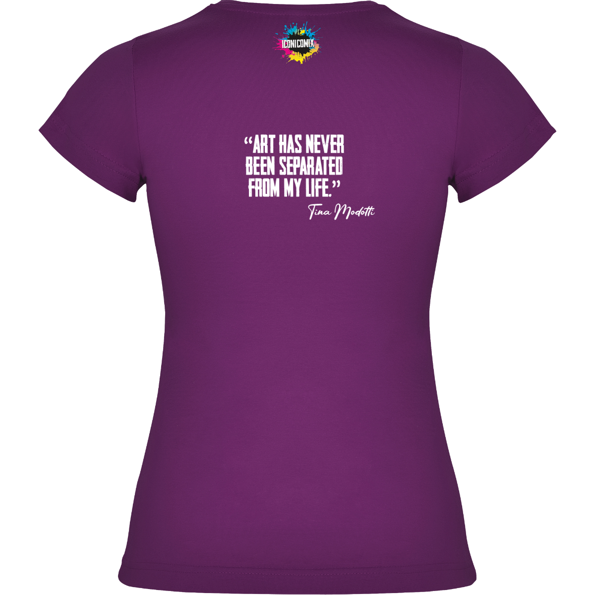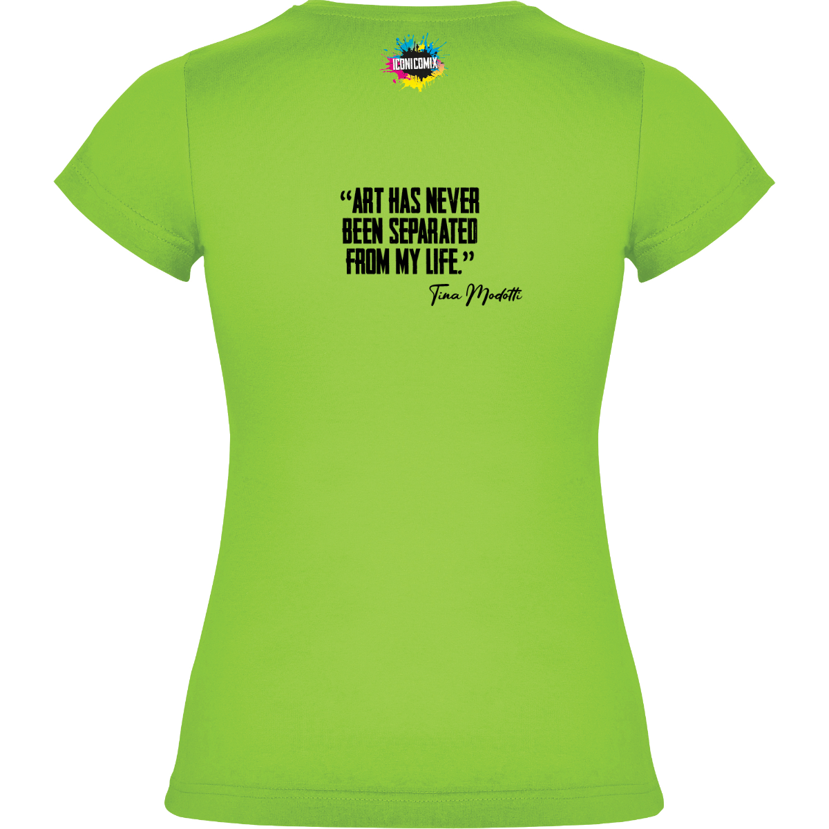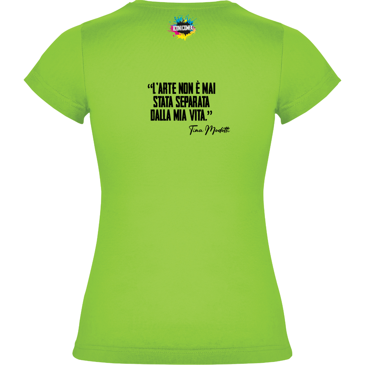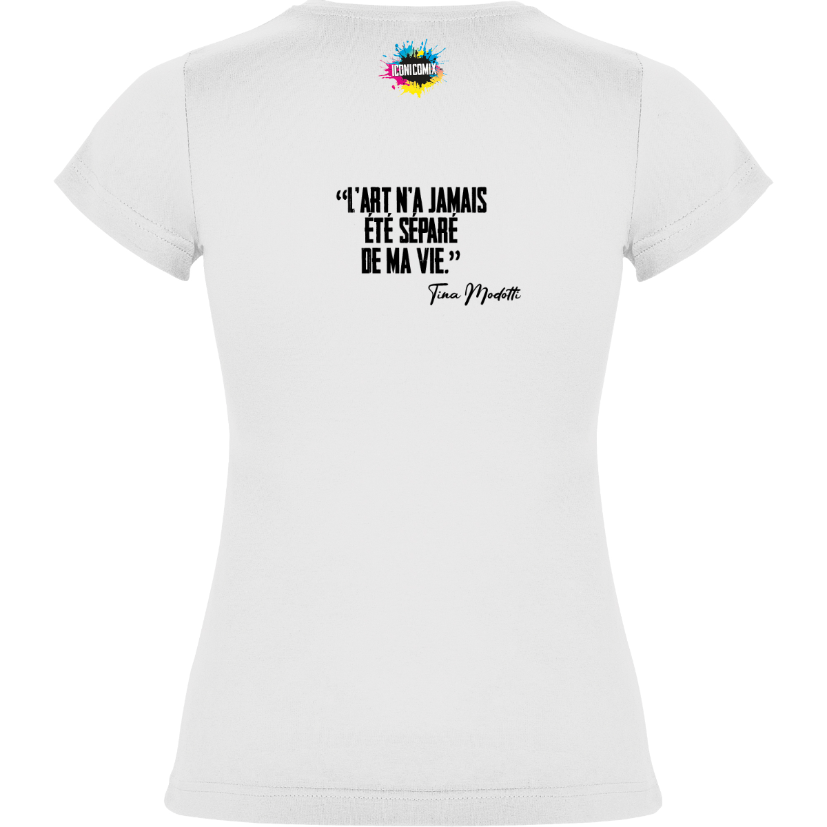 In ogni nostra grafica è presente anche un QR code che reindirizza al sito iconicomix.com, alla pagina ufficiale dell’icona che hai scelto. Una porta digitale che racconta la sua storia, le sue frasi e il suo mondo.