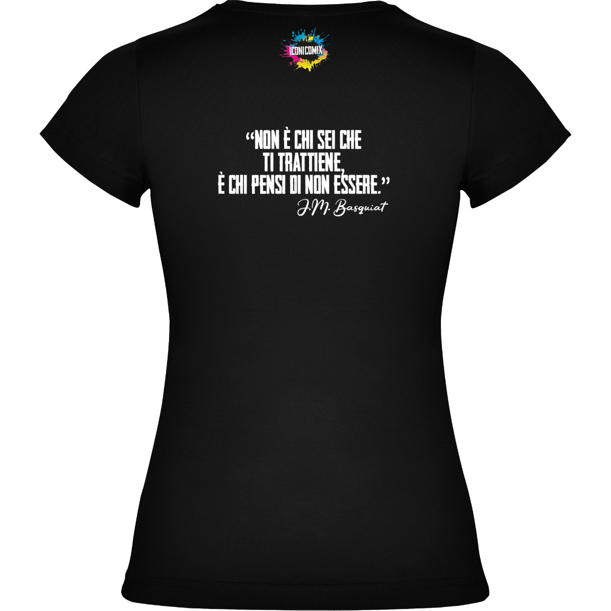 In ogni nostra grafica è presente anche un QR code che reindirizza al sito iconicomix.com, alla pagina ufficiale dell’icona che hai scelto. Una porta digitale che racconta la sua storia, le sue frasi e il suo mondo.