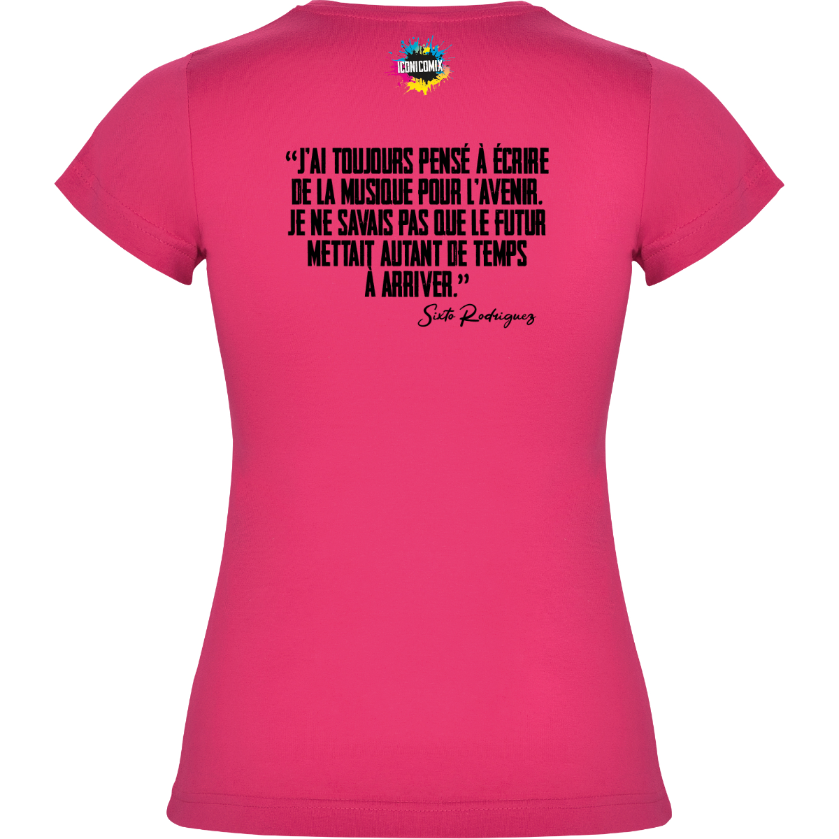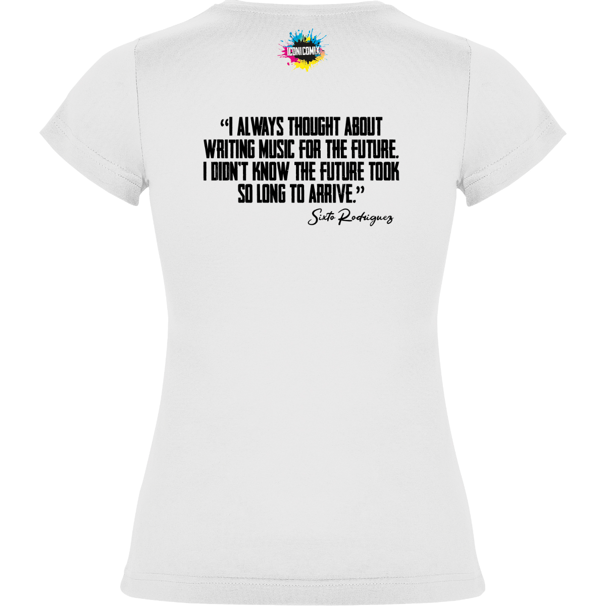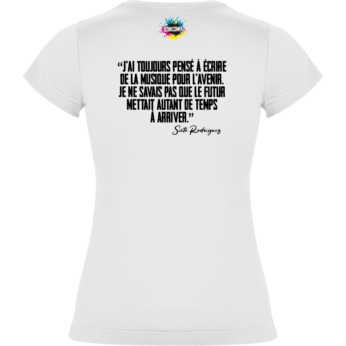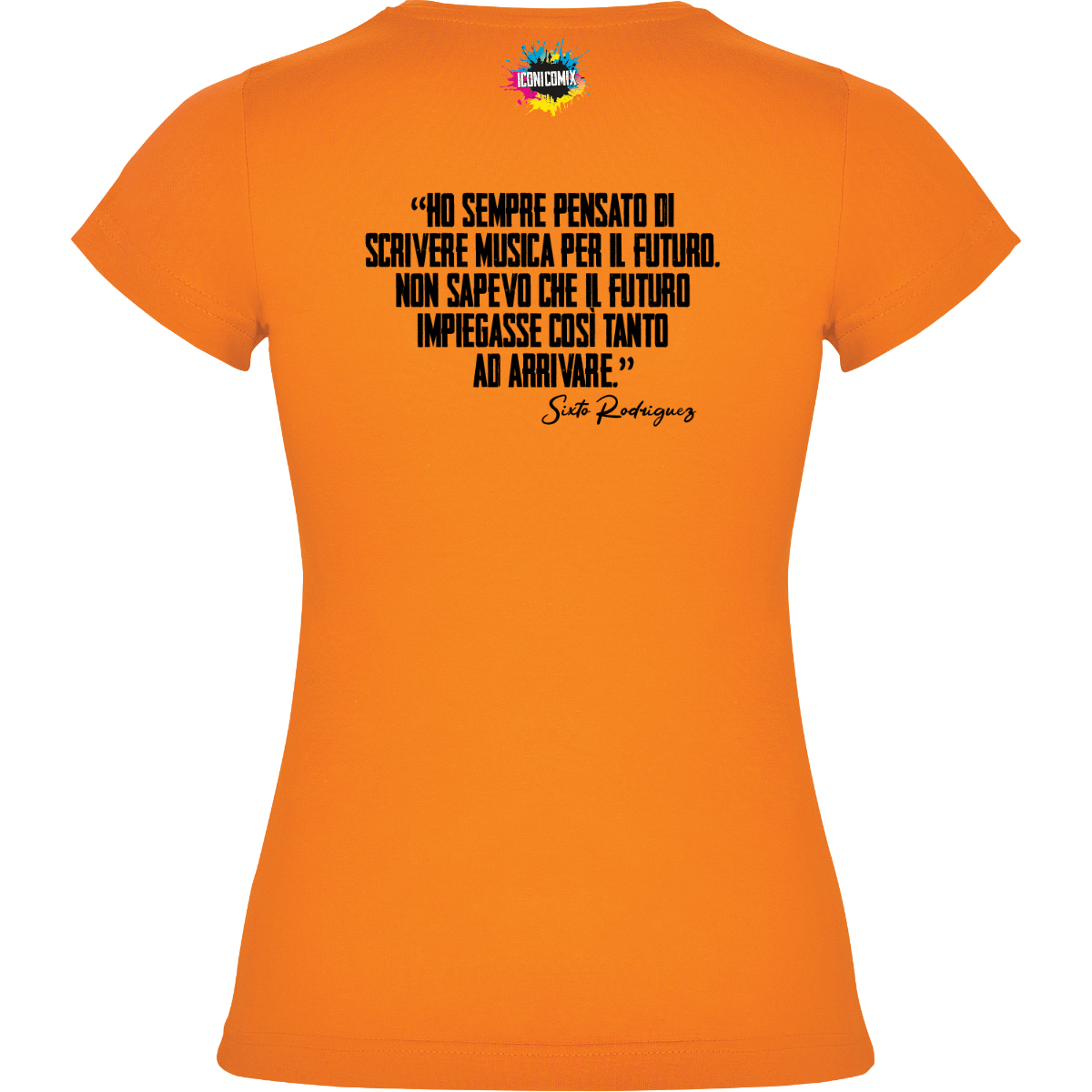 In ogni nostra grafica è presente anche un QR code che reindirizza al sito iconicomix.com, alla pagina ufficiale dell’icona che hai scelto. Una porta digitale che racconta la sua storia, le sue frasi e il suo mondo.