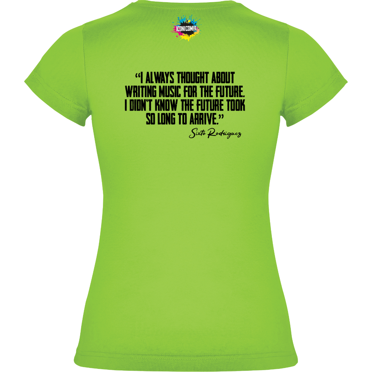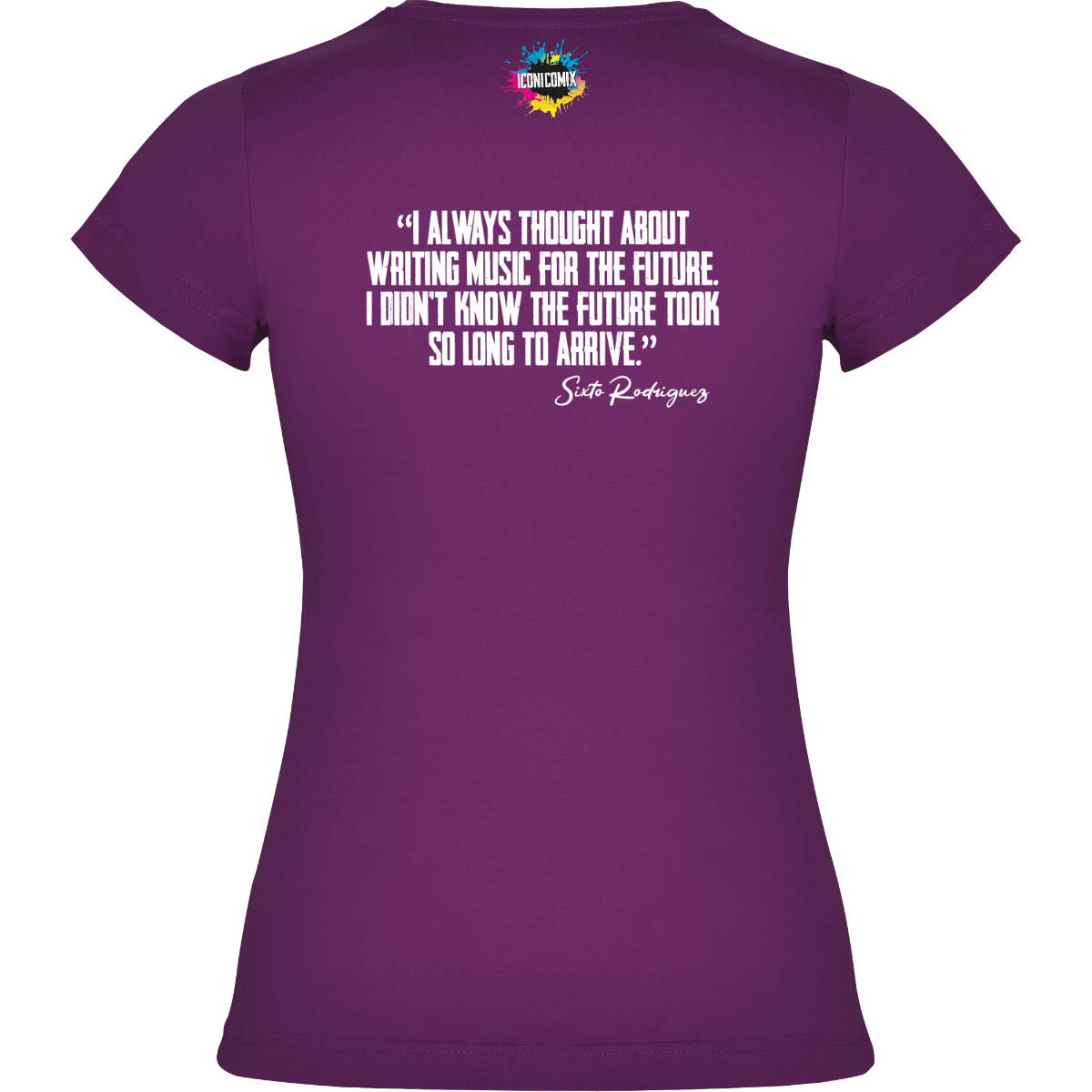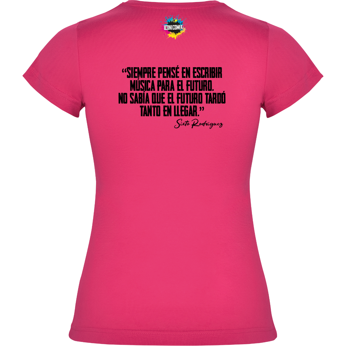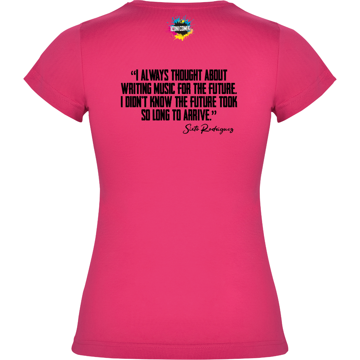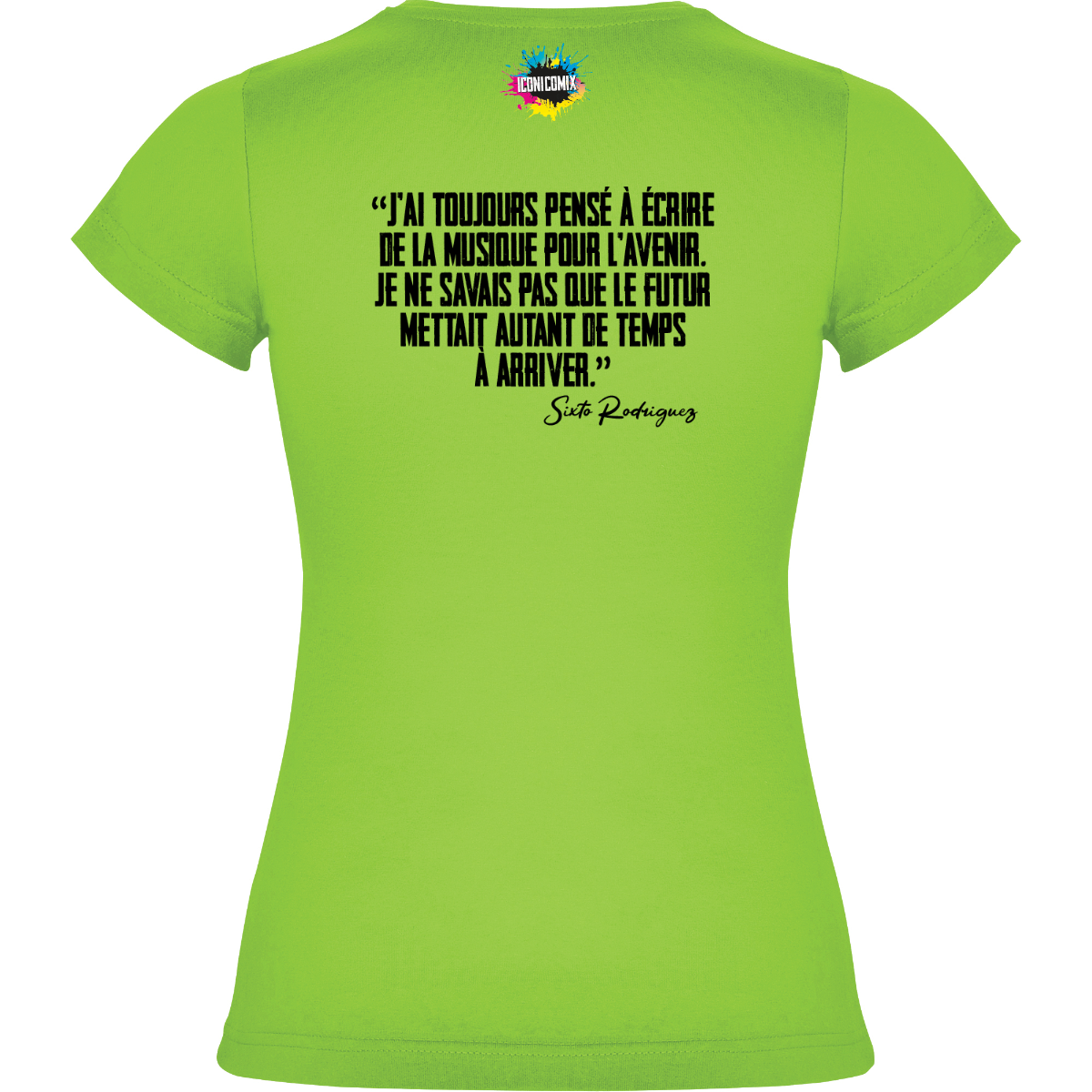 In ogni nostra grafica è presente anche un QR code che reindirizza al sito iconicomix.com, alla pagina ufficiale dell’icona che hai scelto. Una porta digitale che racconta la sua storia, le sue frasi e il suo mondo.