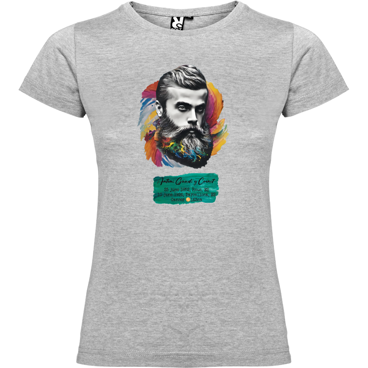Camiseta Aderente de manga corta con estampado de vida. Girocollo 1x1. Scollo nastrato en tejido a juego. 100 % algodón, jersey sencillo de 155 g/m². Gris: 85 % algodón / 15 % viscosa.
