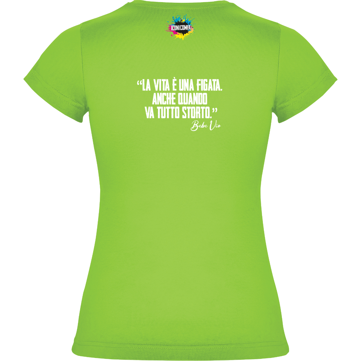 In ogni nostra grafica è presente anche un QR code che reindirizza al sito iconicomix.com, alla pagina ufficiale dell’icona che hai scelto. Una porta digitale che racconta la sua storia, le sue frasi e il suo mondo.