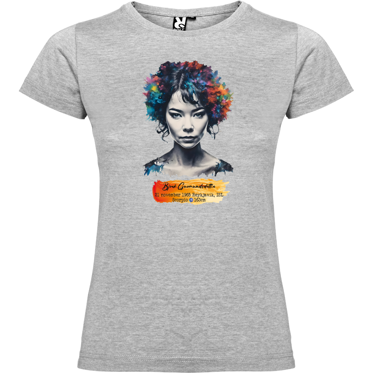 Camiseta Aderente de manga corta con estampado de vida. Girocollo 1x1. Scollo nastrato en tejido a juego. 100 % algodón, jersey sencillo de 155 g/m². Gris: 85 % algodón / 15 % viscosa.