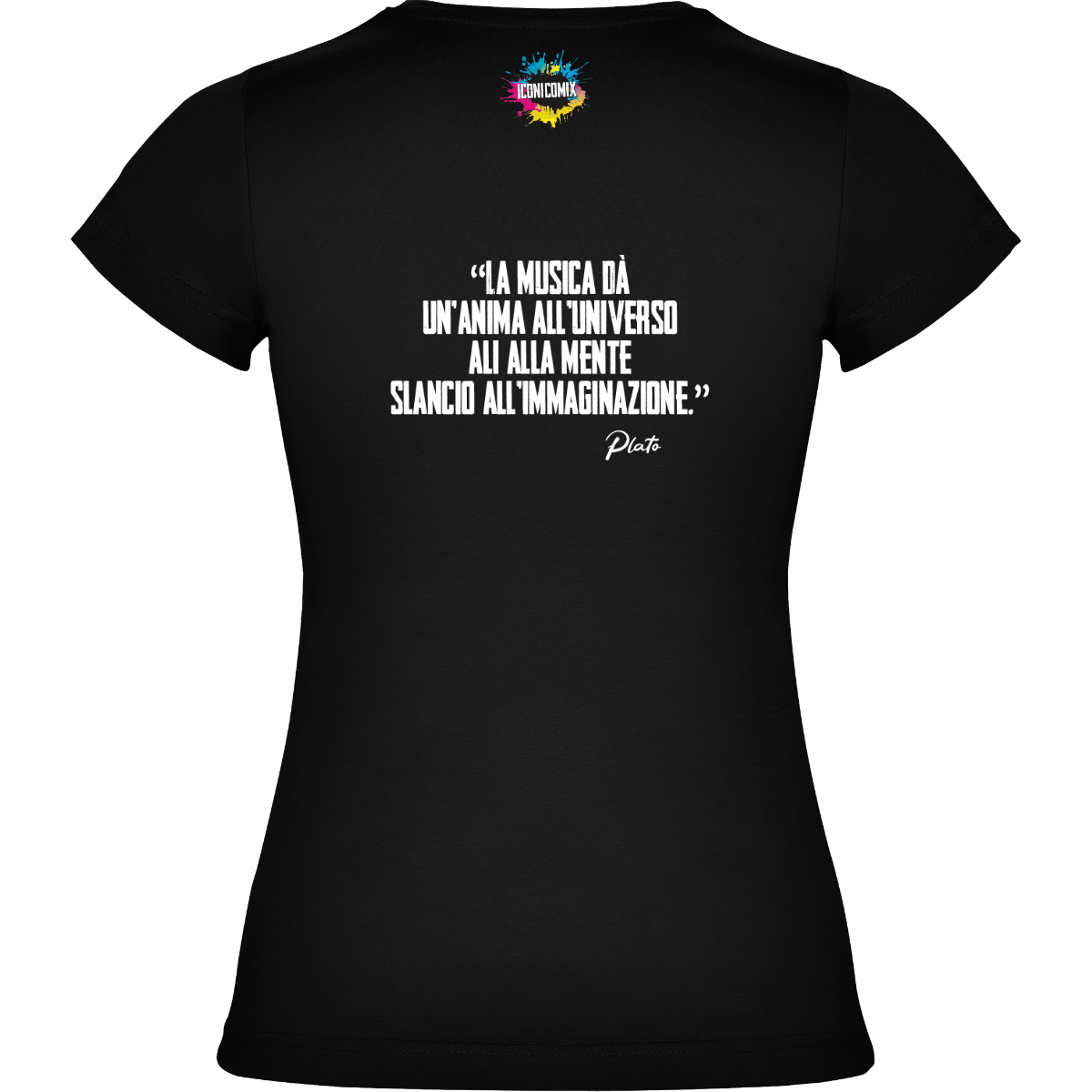 In ogni nostra grafica è presente anche un QR code che reindirizza al sito iconicomix.com, alla pagina ufficiale dell’icona che hai scelto. Una porta digitale che racconta la sua storia, le sue frasi e il suo mondo.