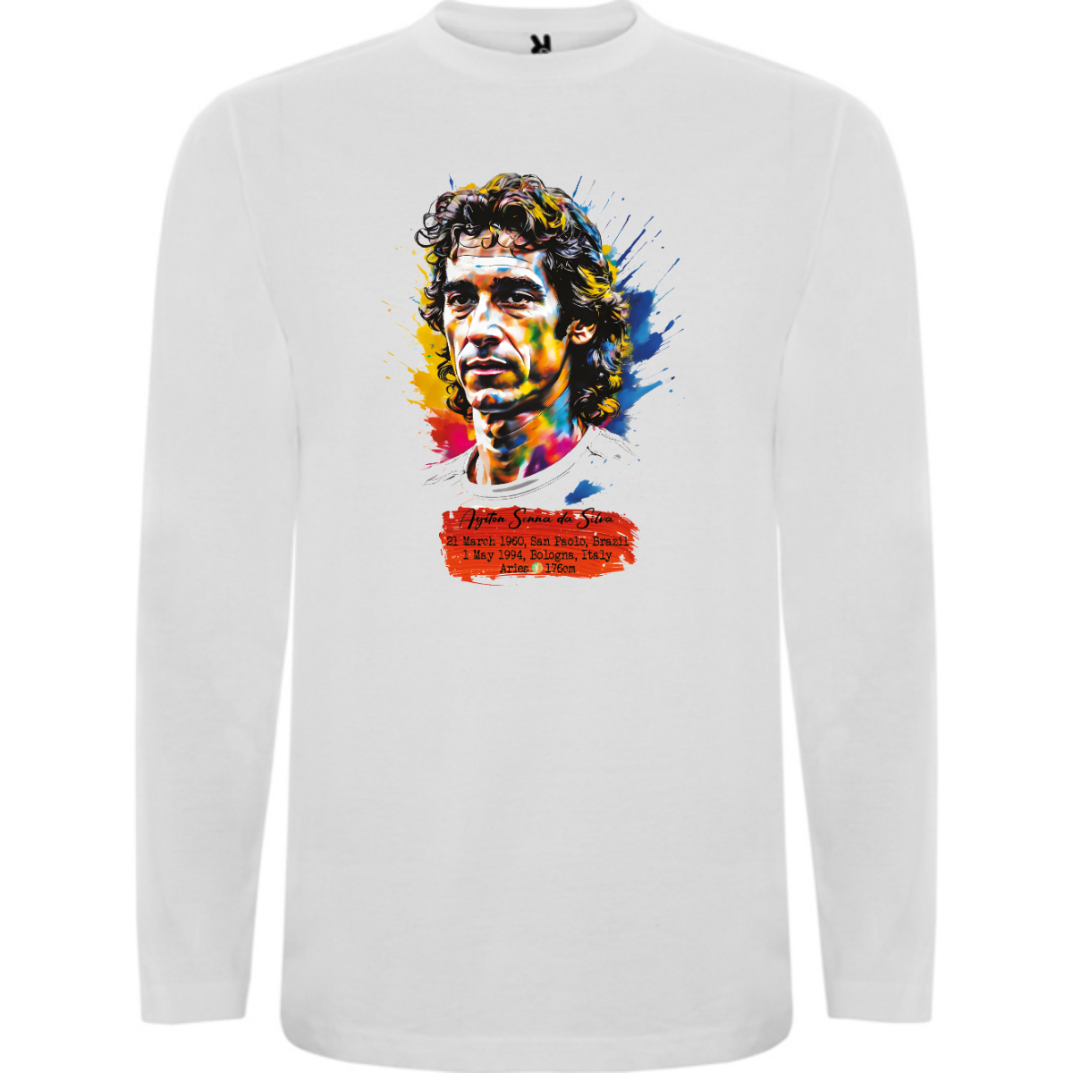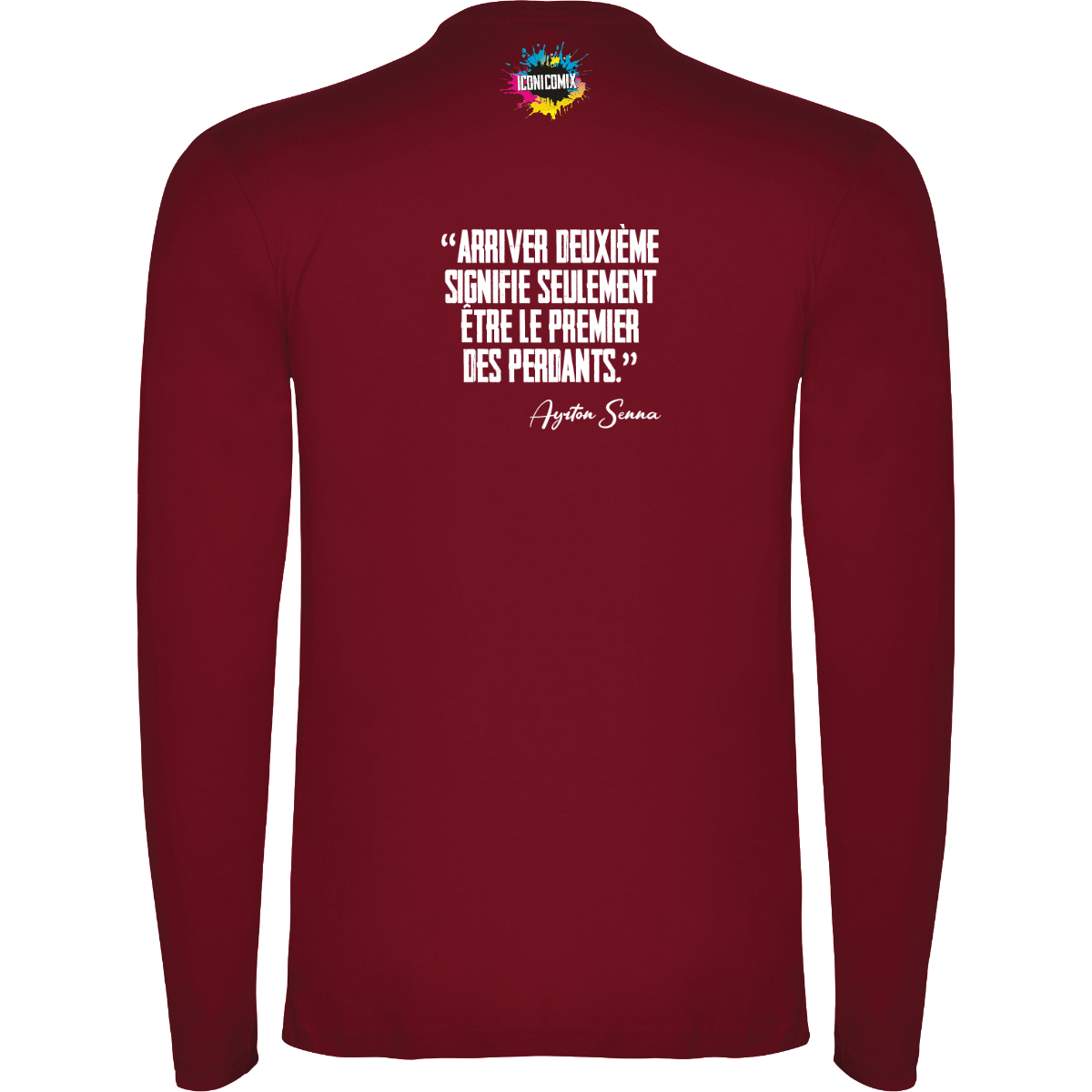 Long-sleeved T-shirt, tubular fabric, 4-layer crew neck. Reinforced seams on the neck and shoulders.