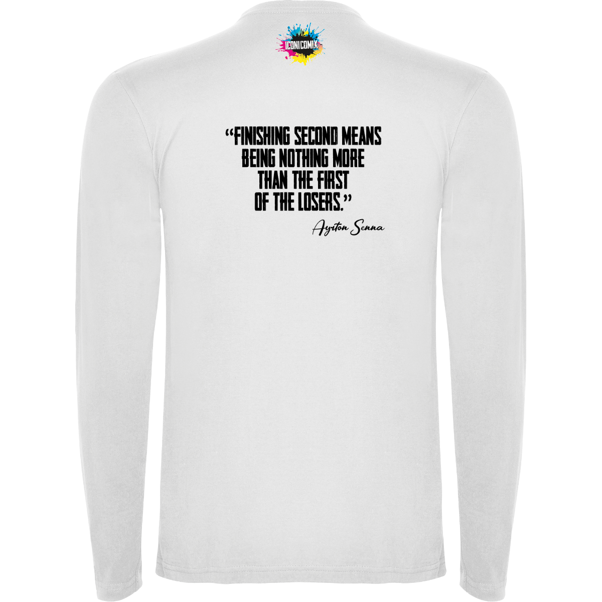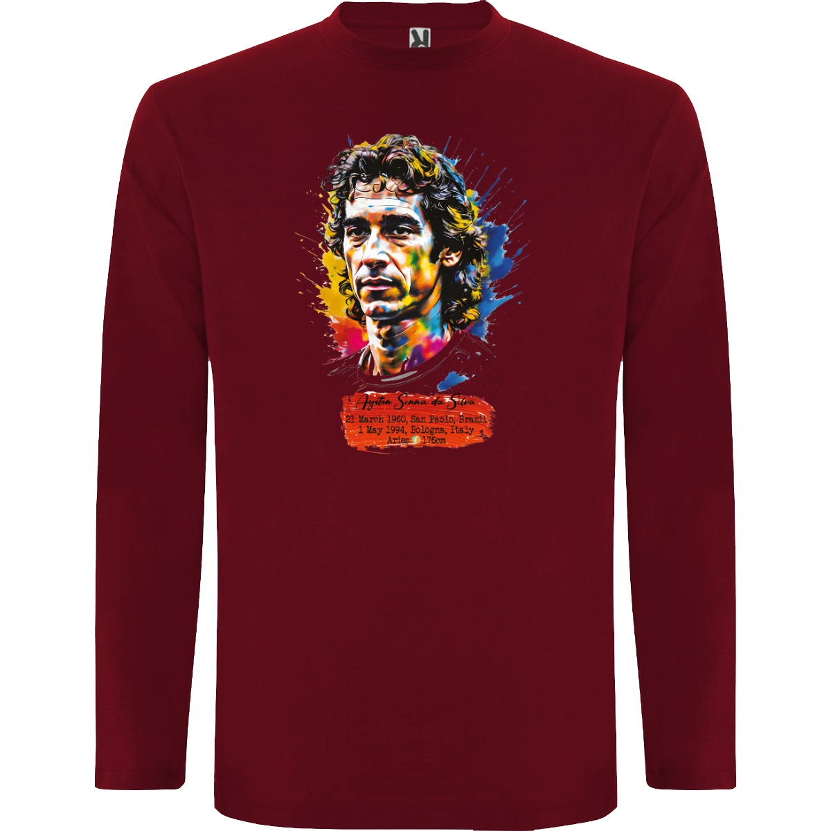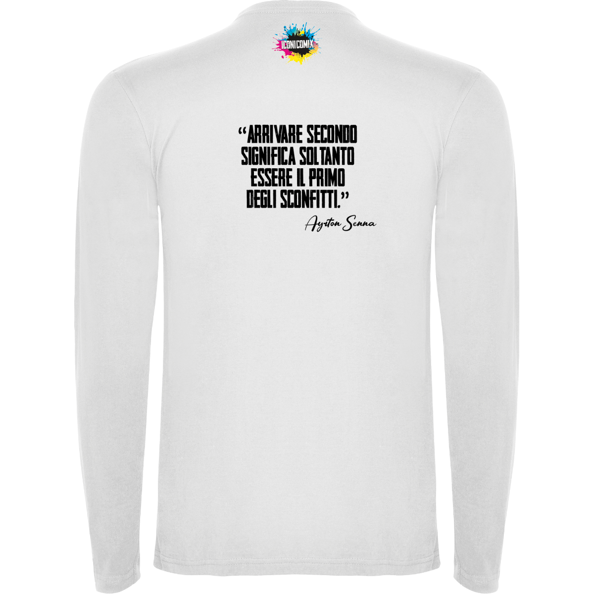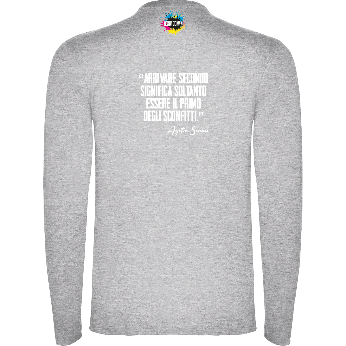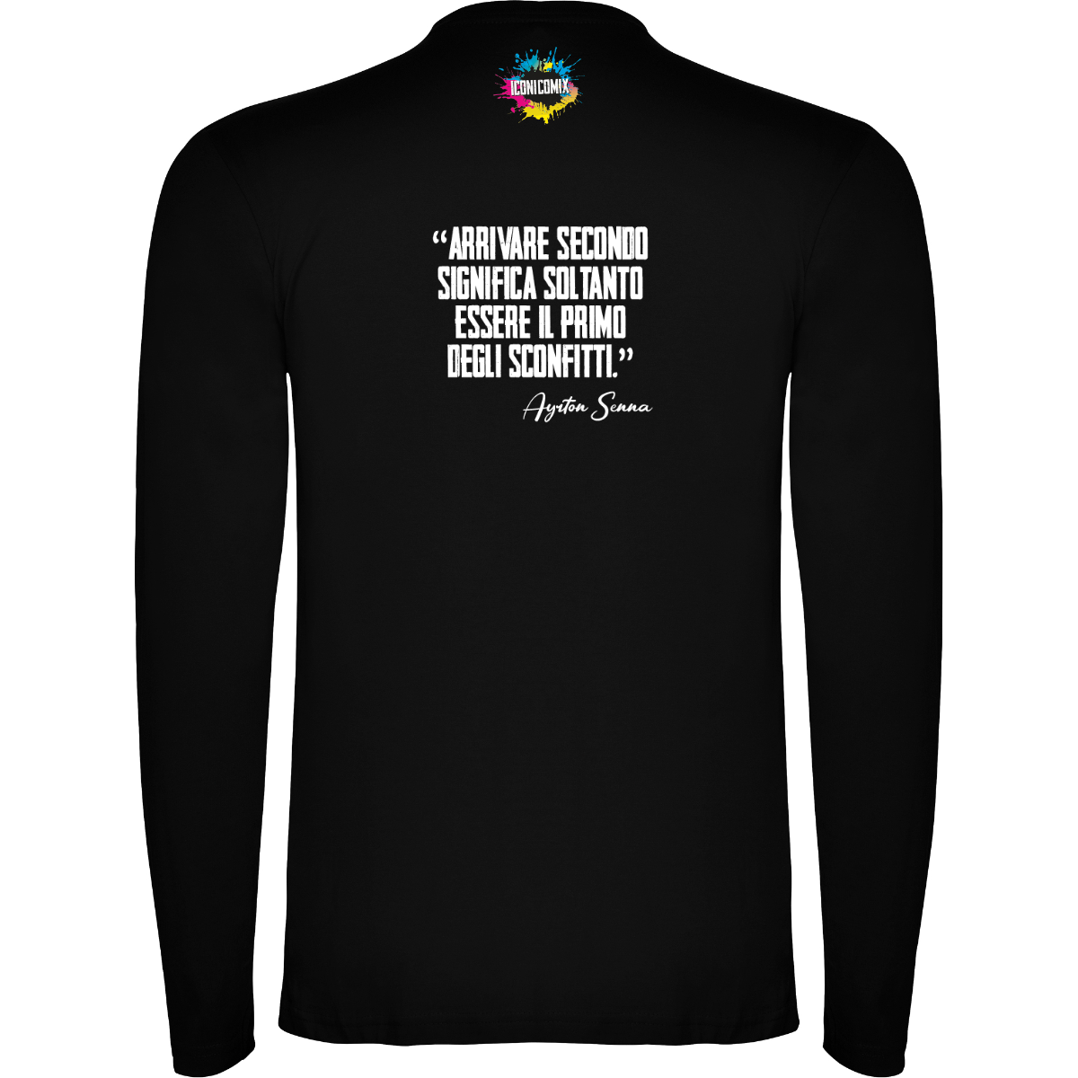 T-shirt manica lunga, tessuto tubolare, girocollo a 4 strati. Copricuciture rinforzate su collo e spalle. Senza
