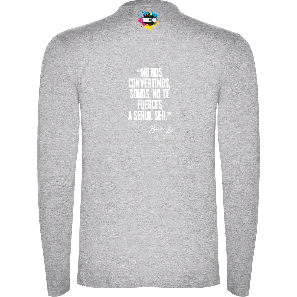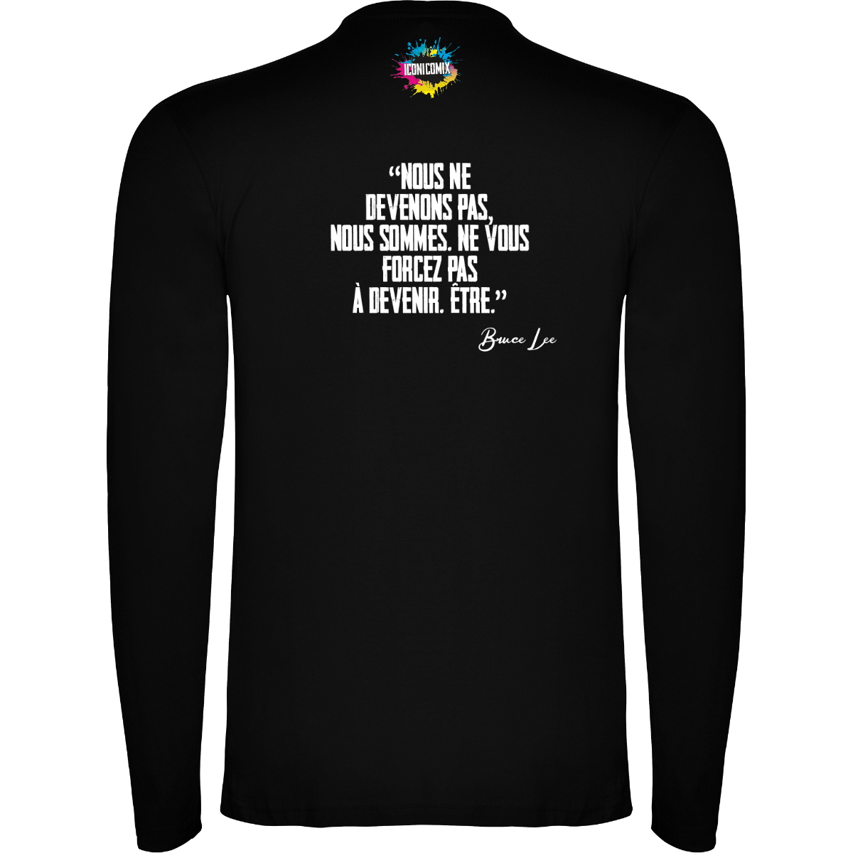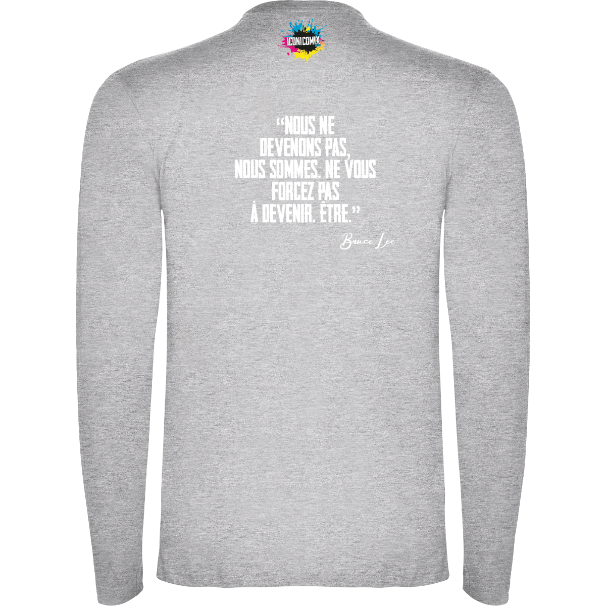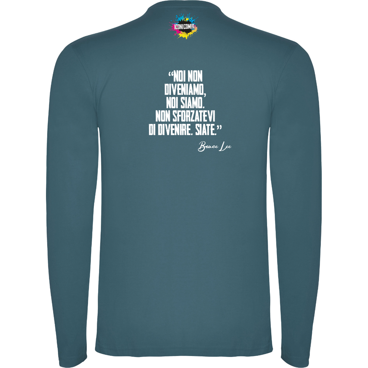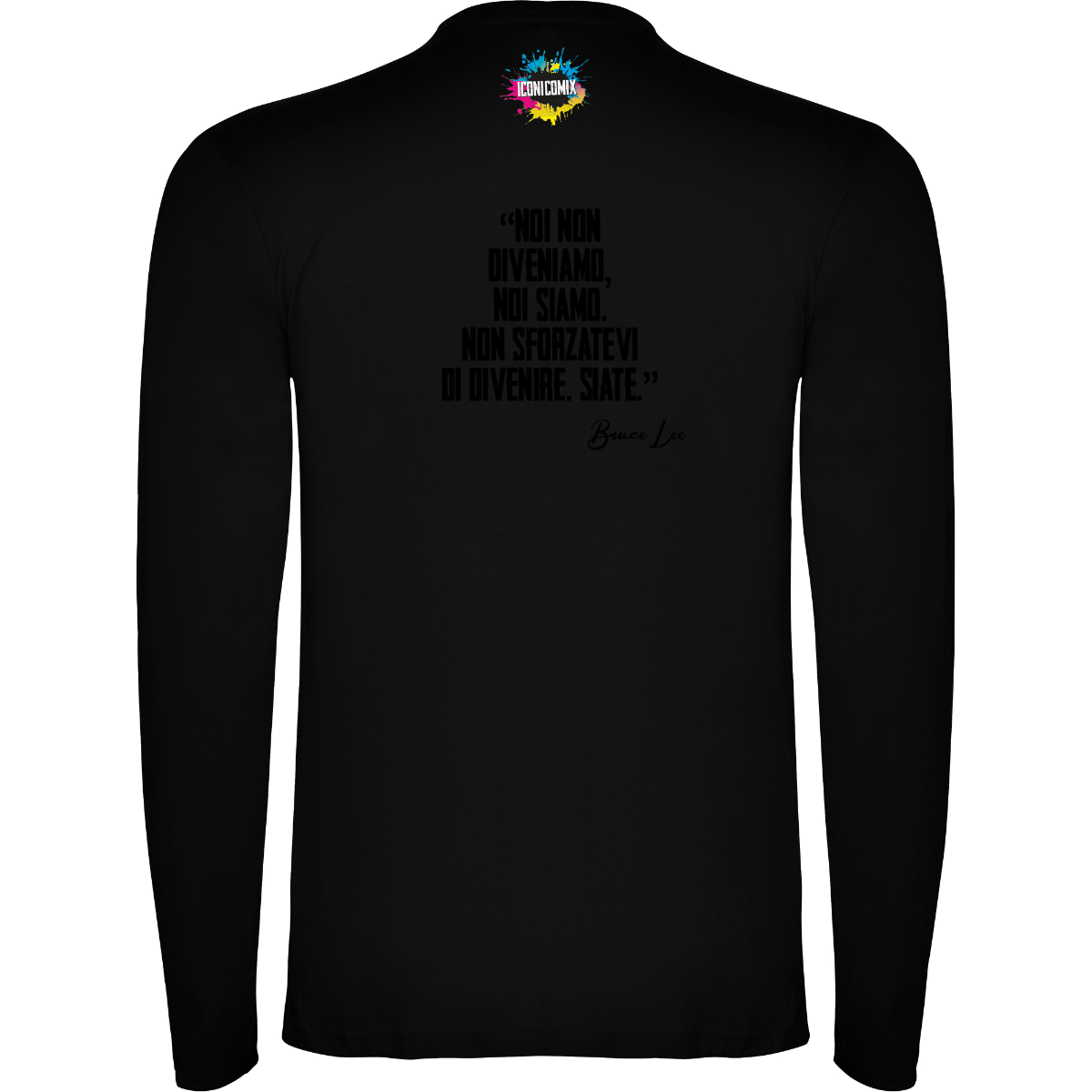 T-shirt manica lunga, tessuto tubolare, girocollo a 4 strati. Copricuciture rinforzate su collo e spalle. Senza