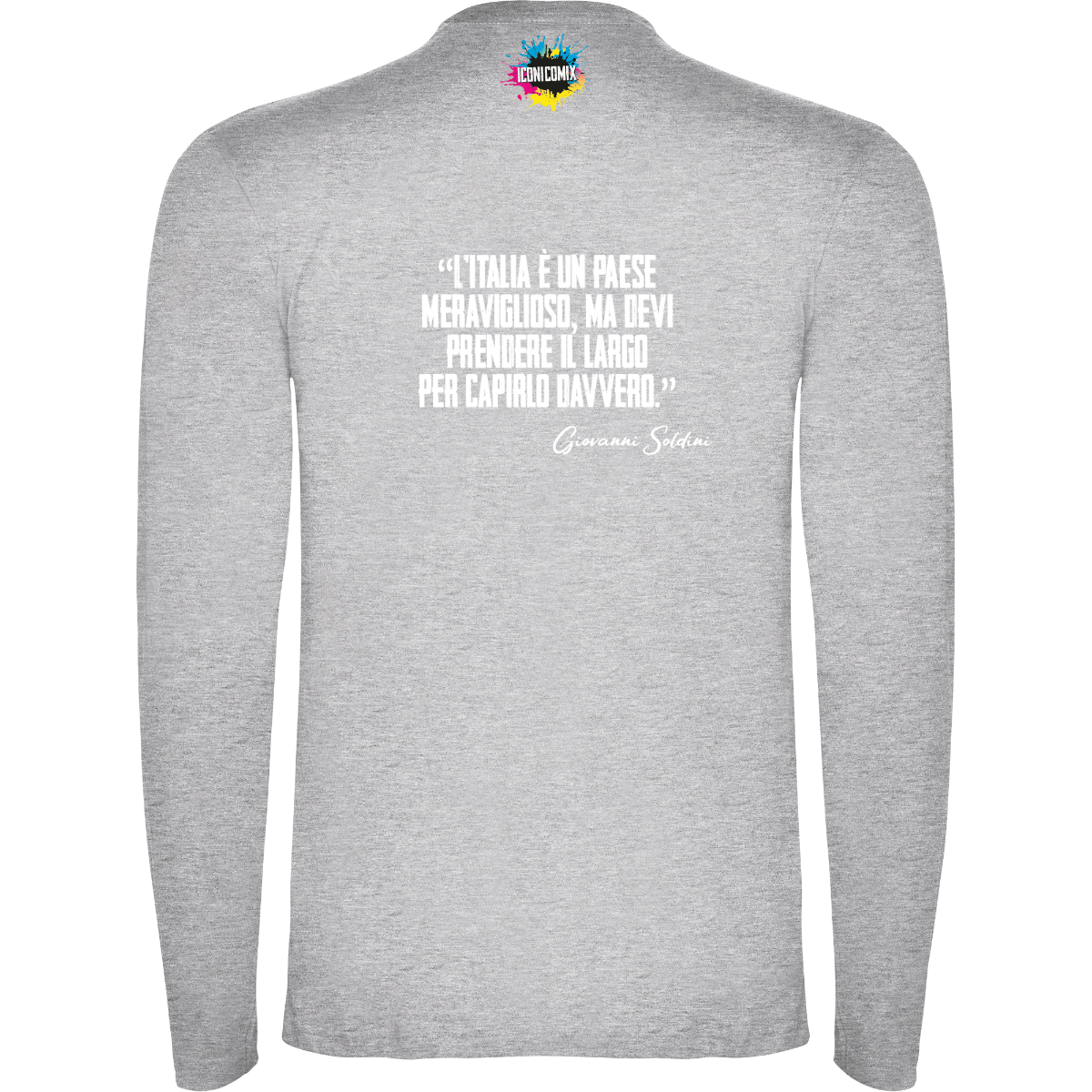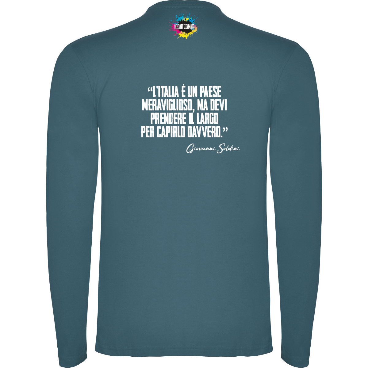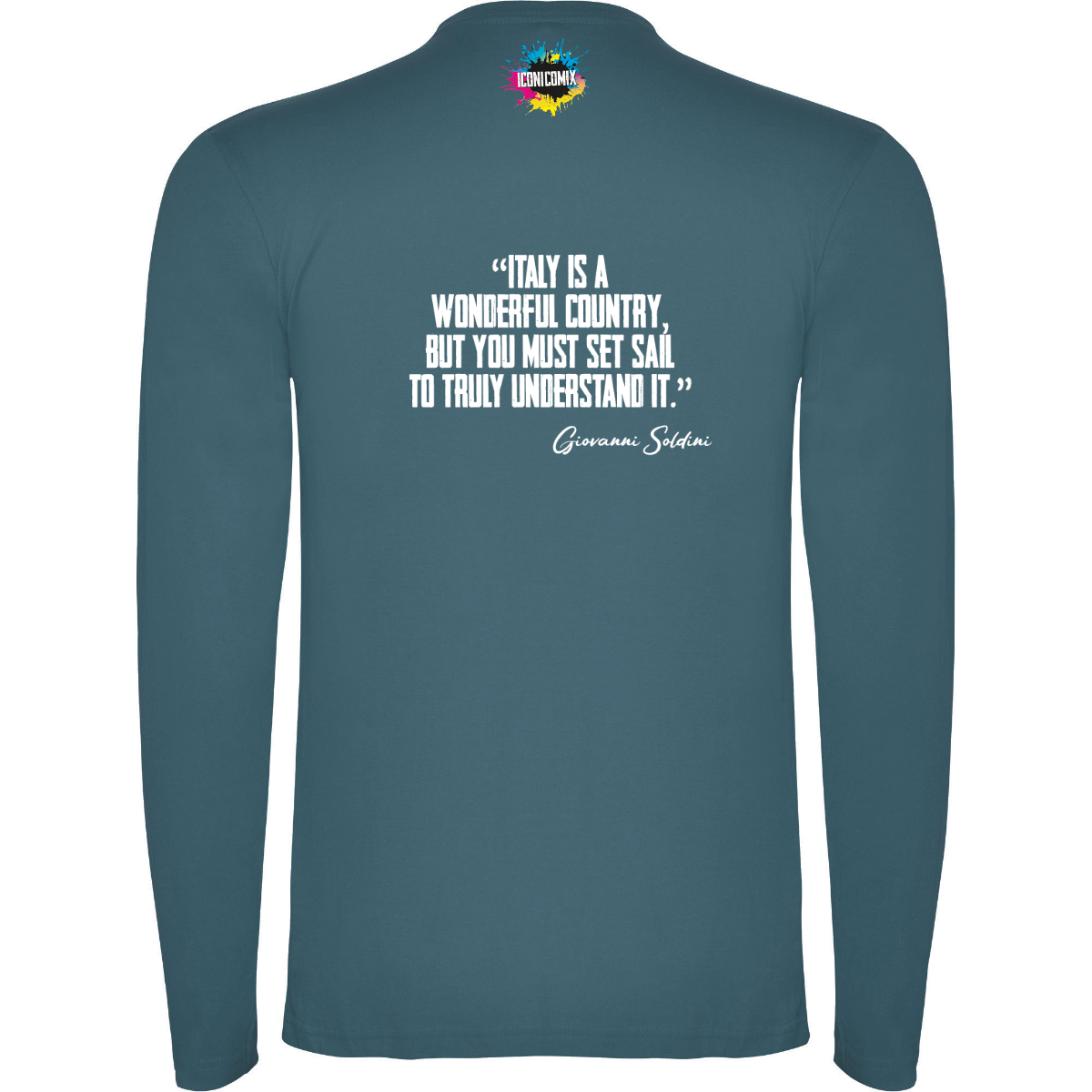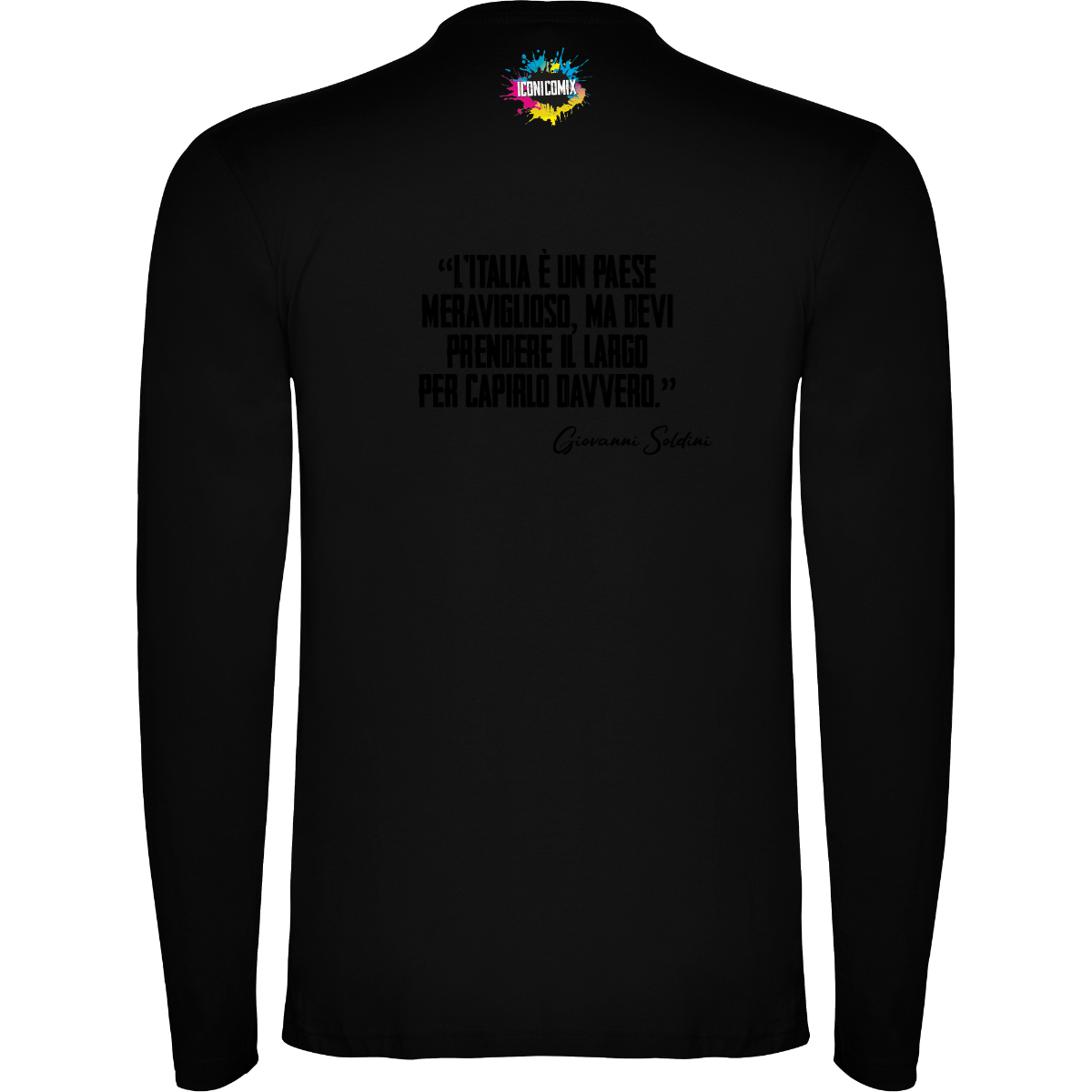 T-shirt manica lunga, tessuto tubolare, girocollo a 4 strati. Copricuciture rinforzate su collo e spalle. Senza