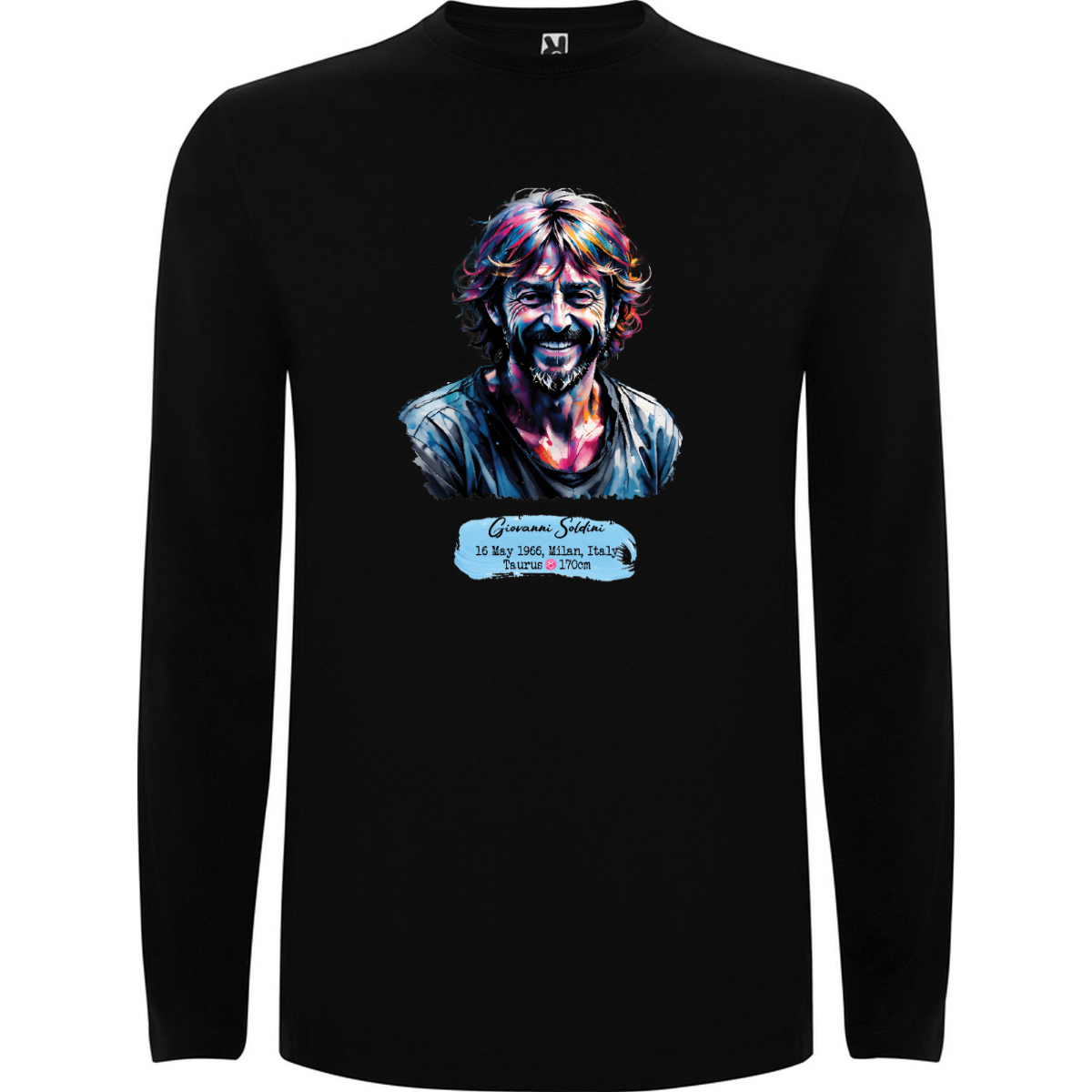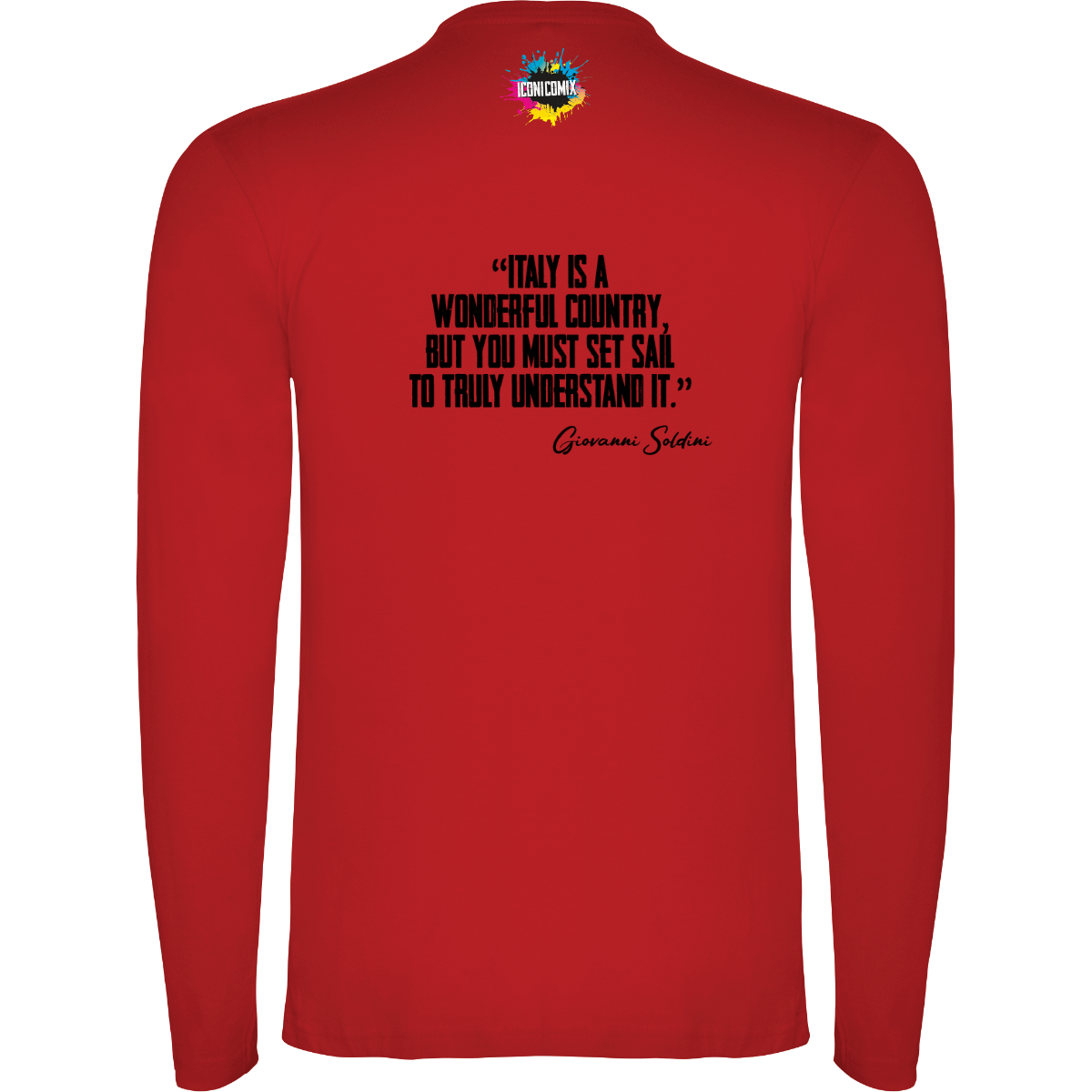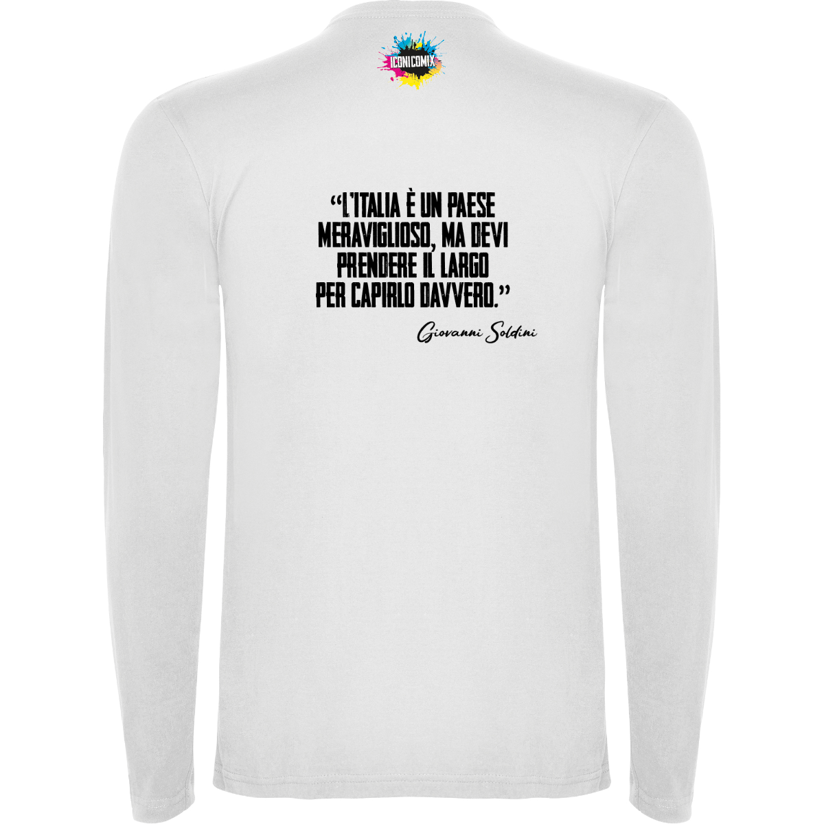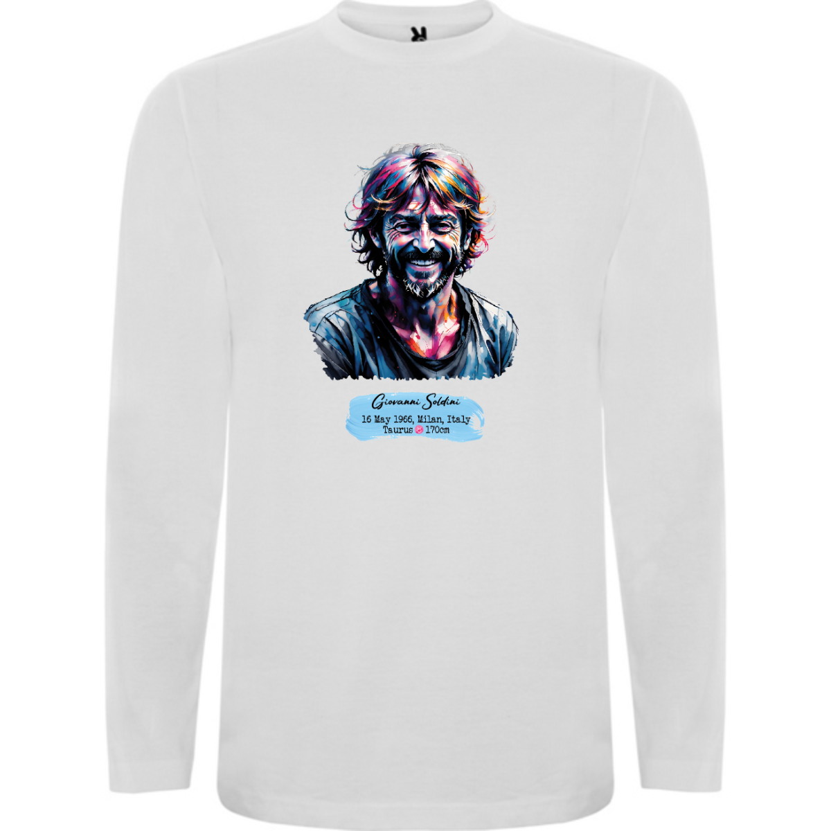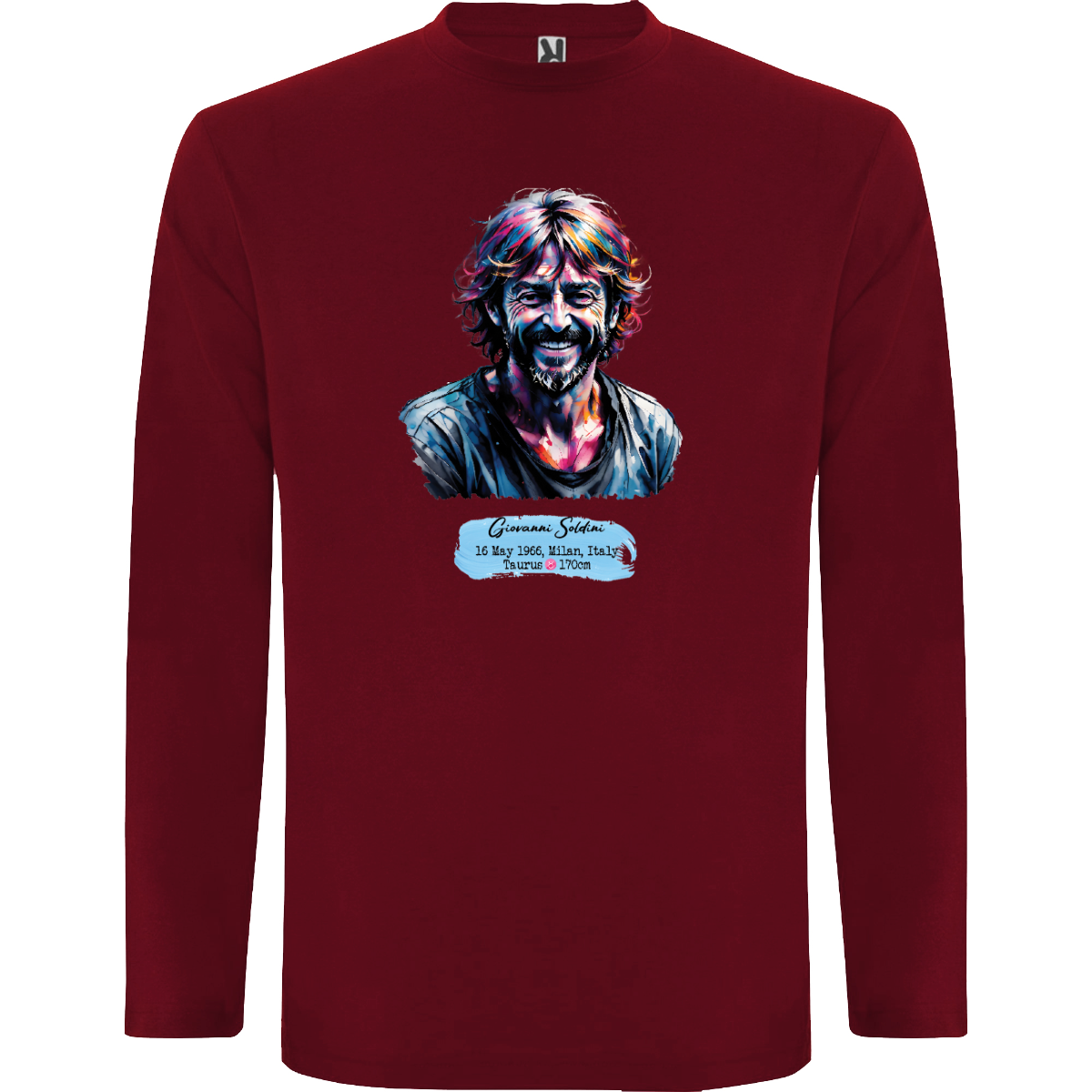T-shirt manica lunga, tessuto tubolare, girocollo a 4 strati. Copricuciture rinforzate su collo e spalle. Senza
