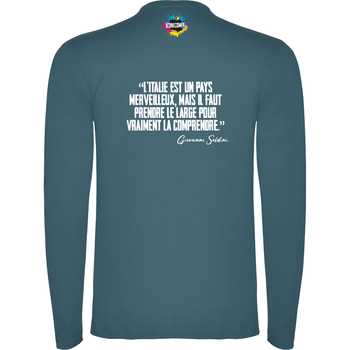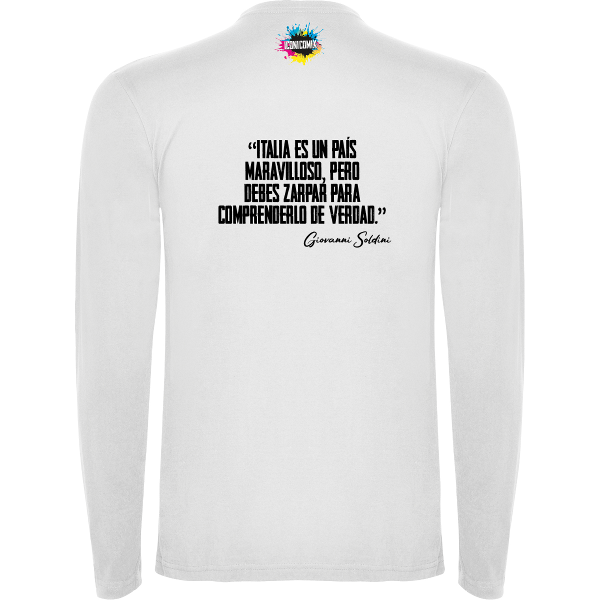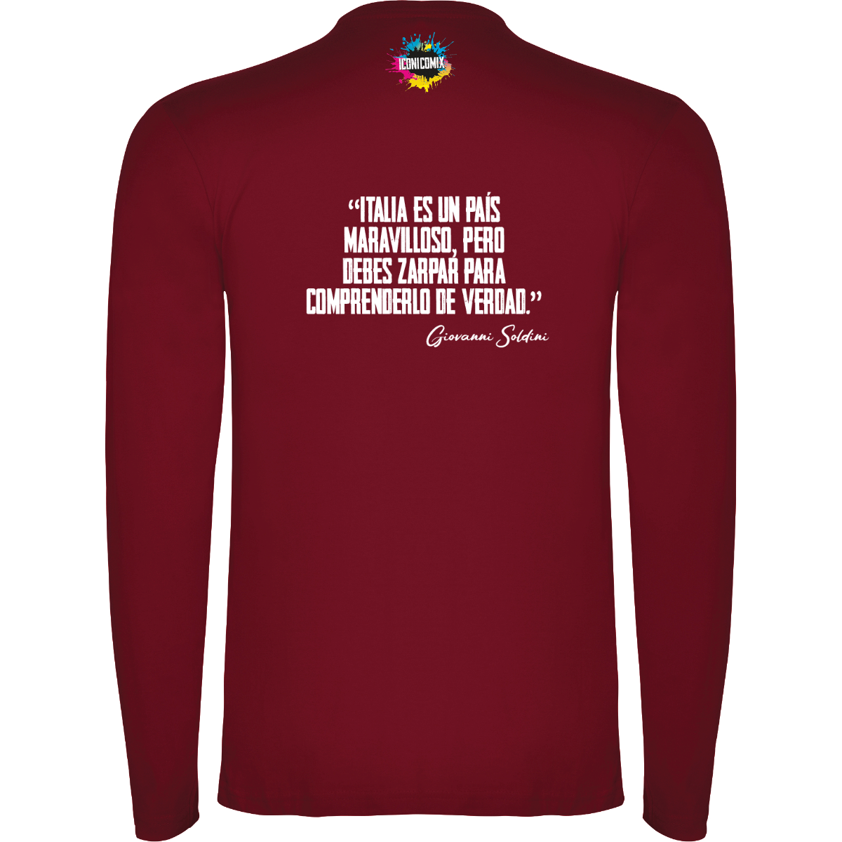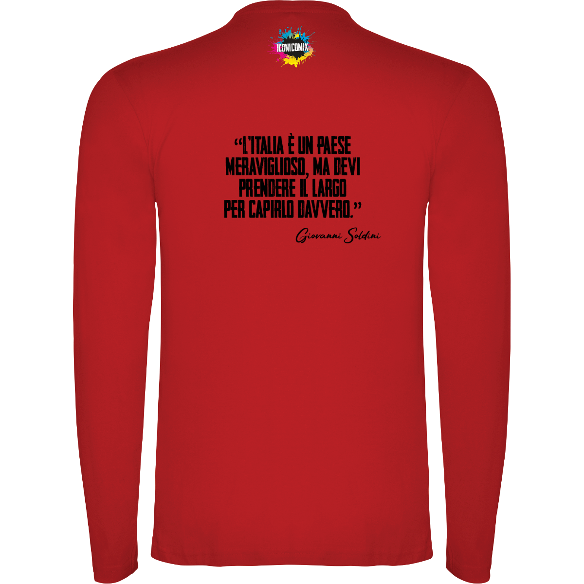T-shirt manica lunga, tessuto tubolare, girocollo a 4 strati. Copricuciture rinforzate su collo e spalle. Senza