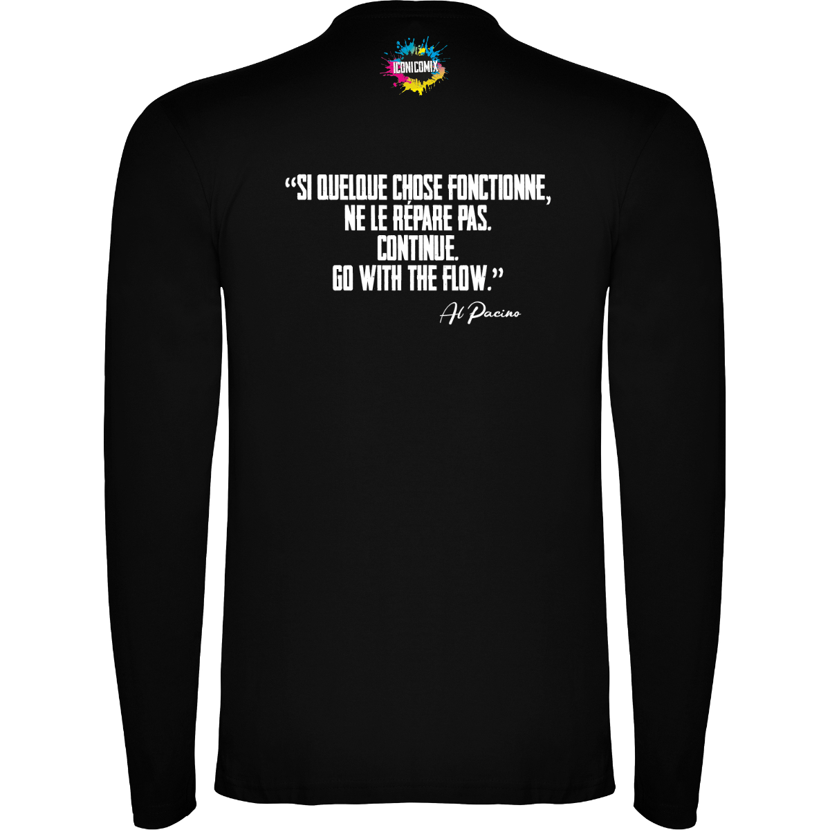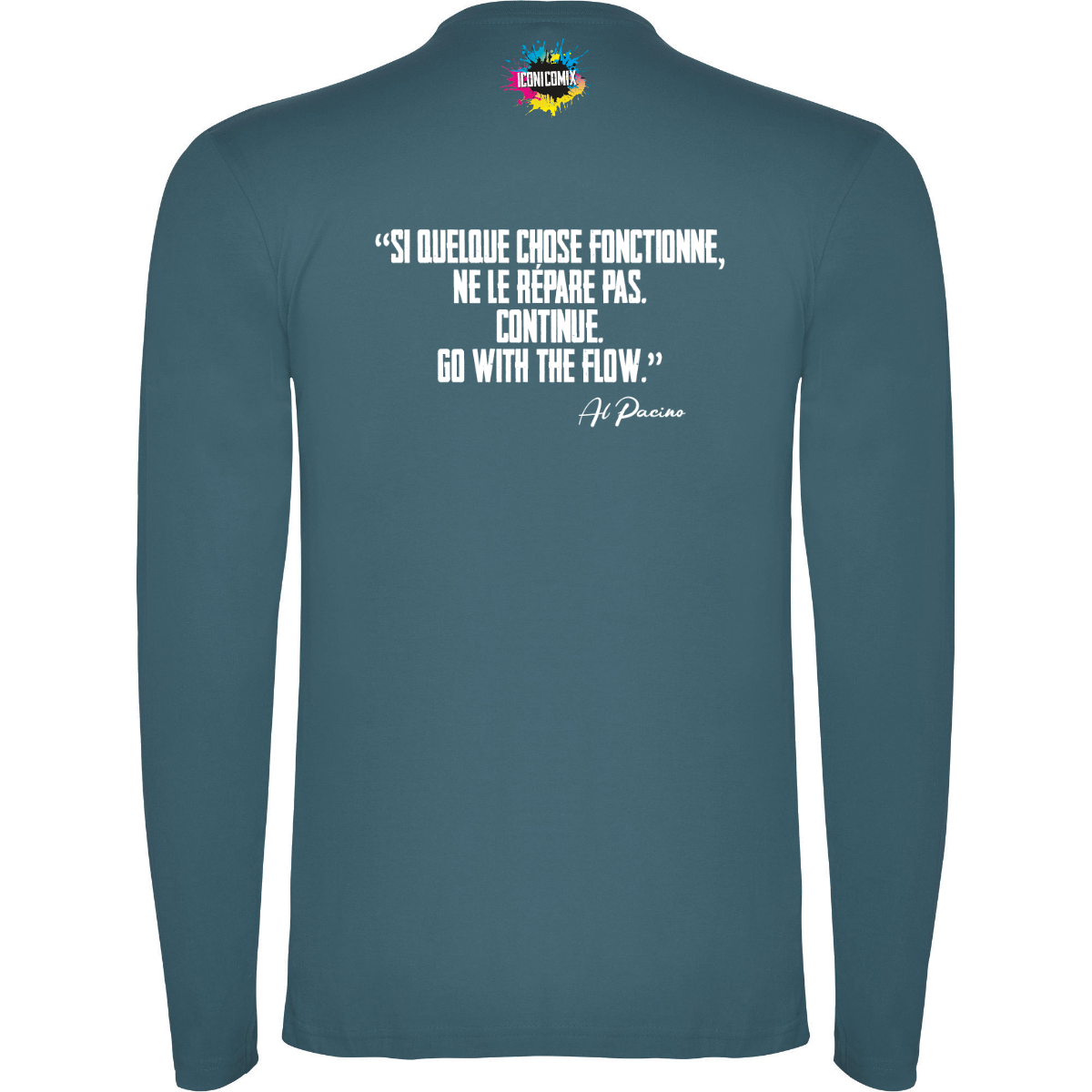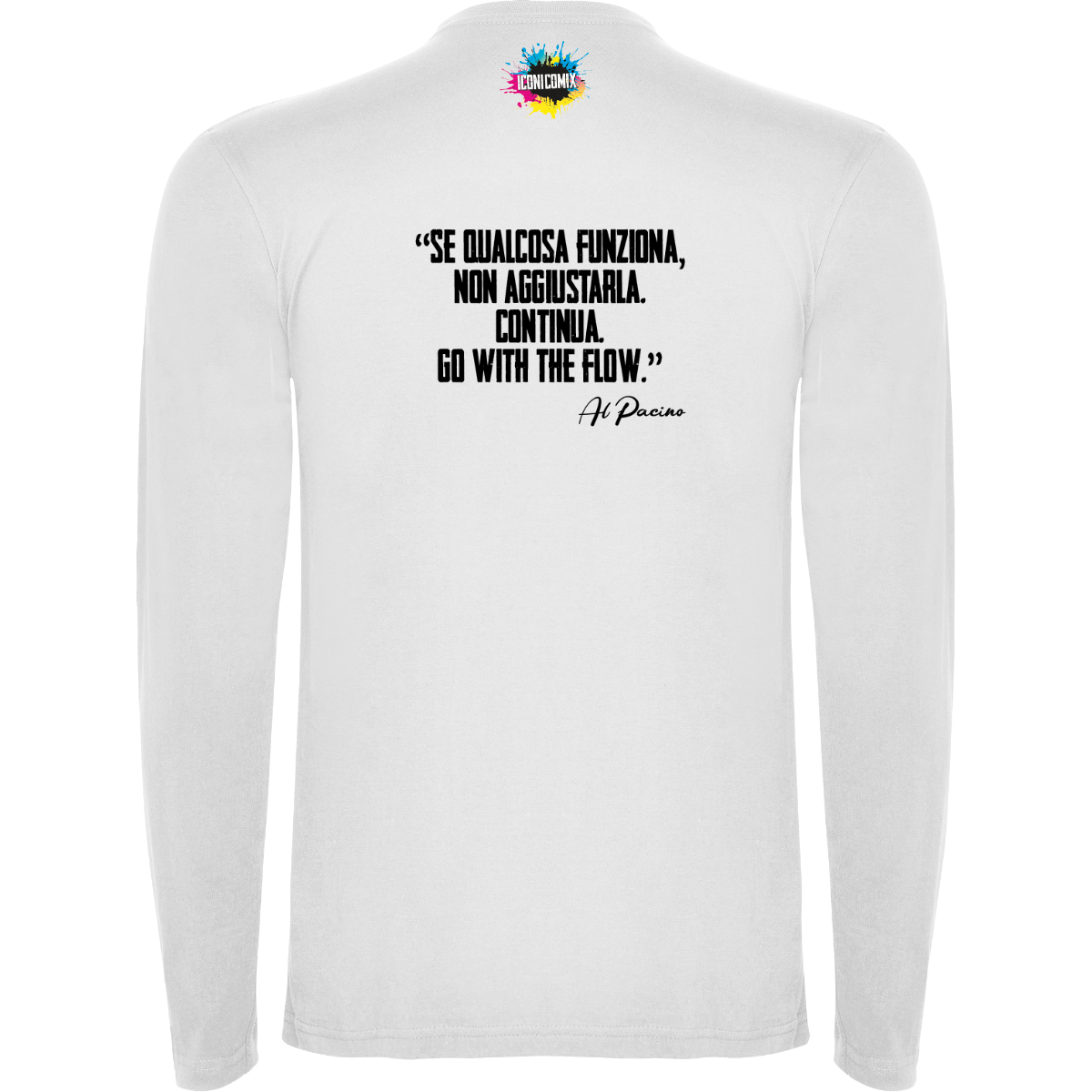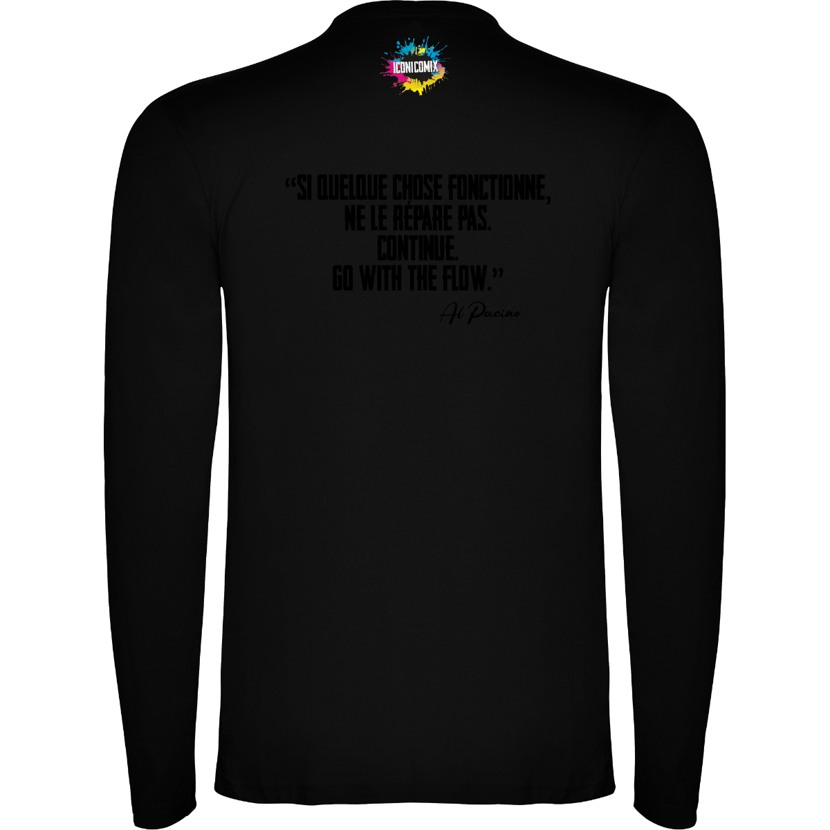 T-shirt manica lunga, tessuto tubolare, girocollo a 4 strati. Copricuciture rinforzate su collo e spalle. Senza